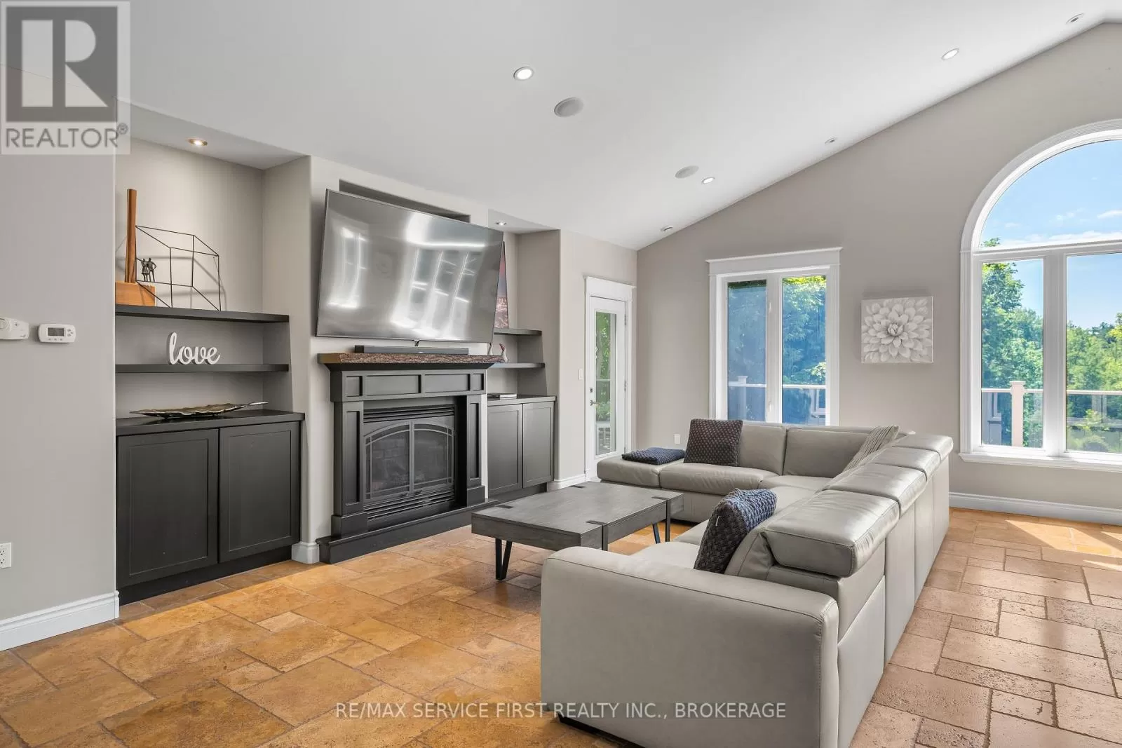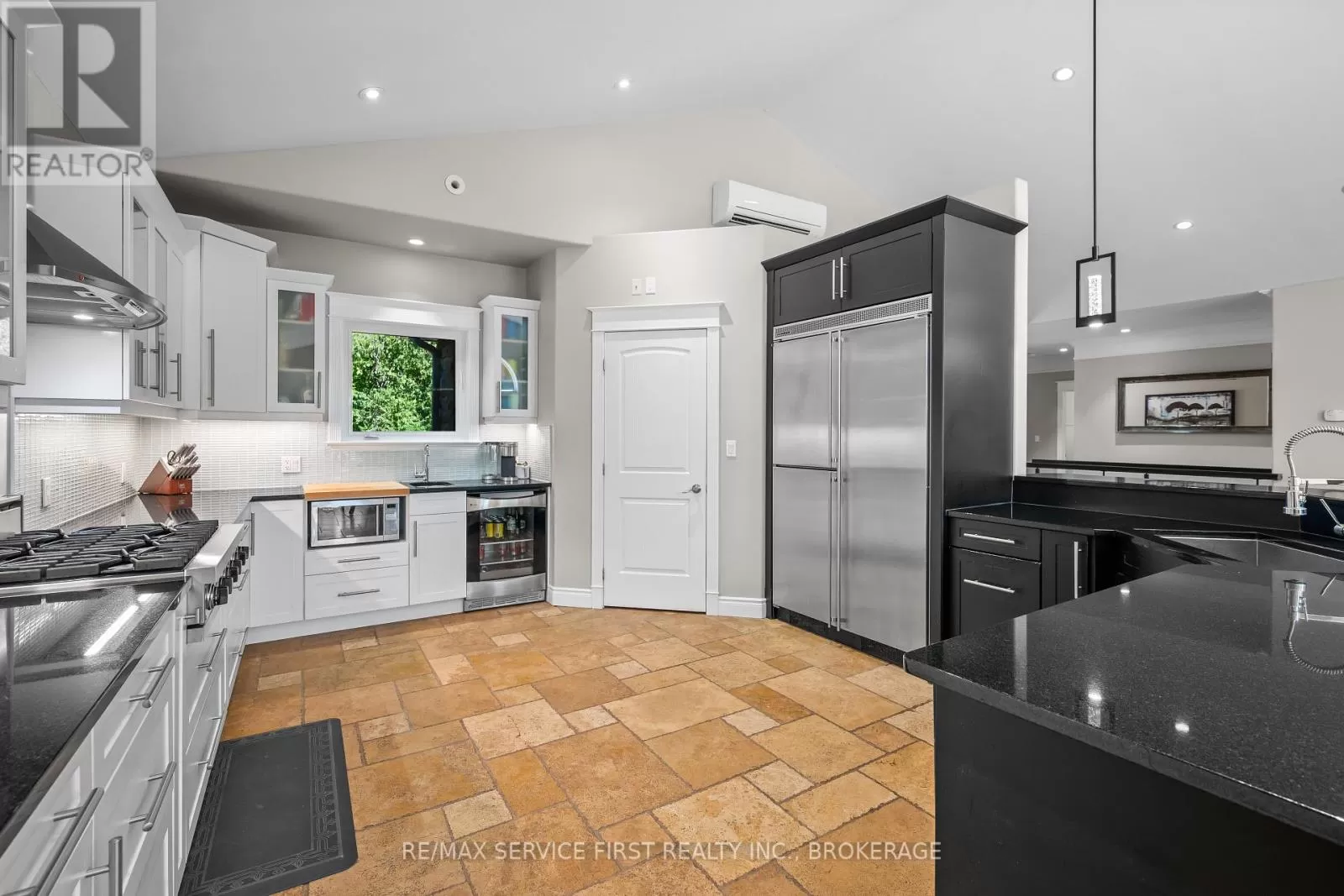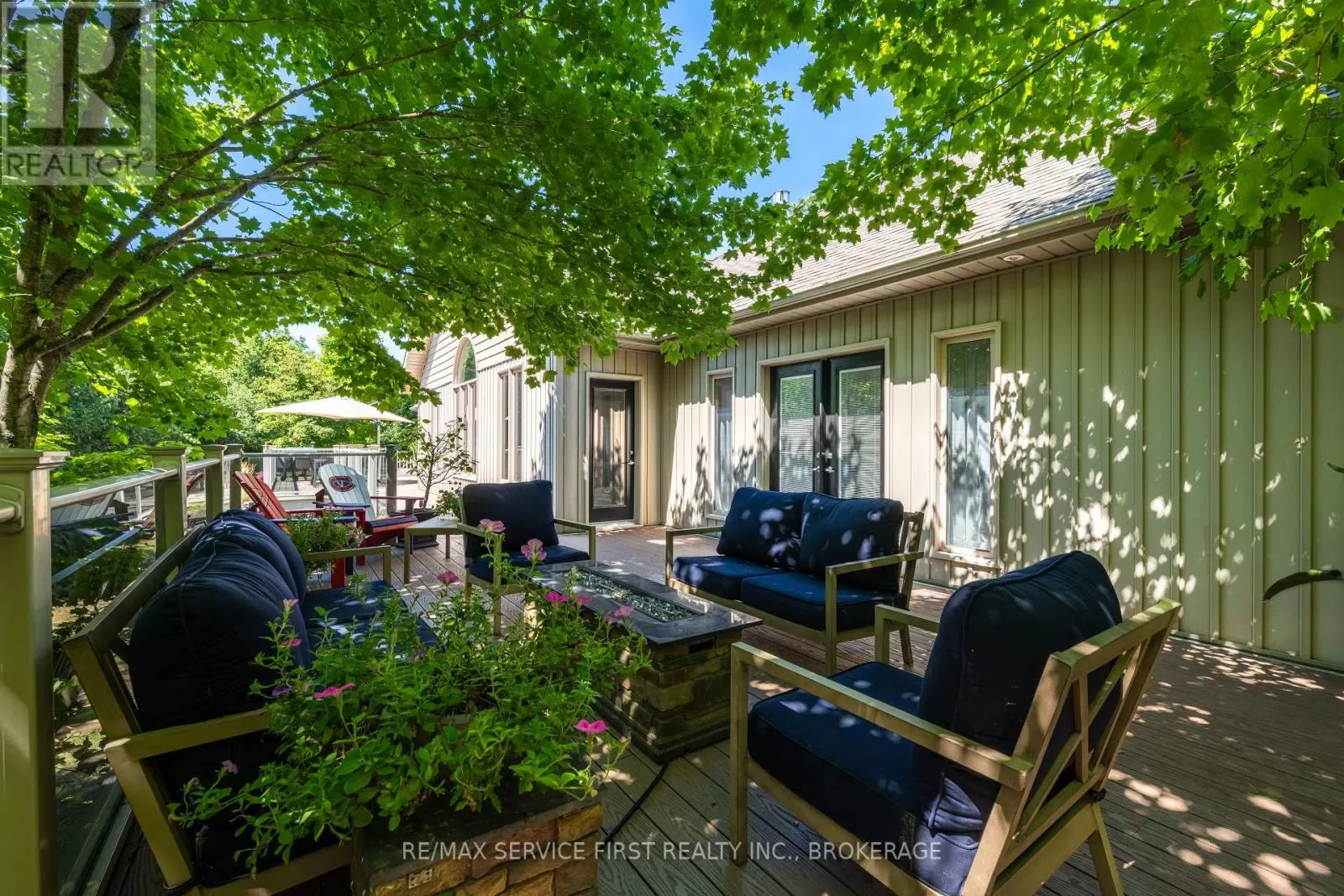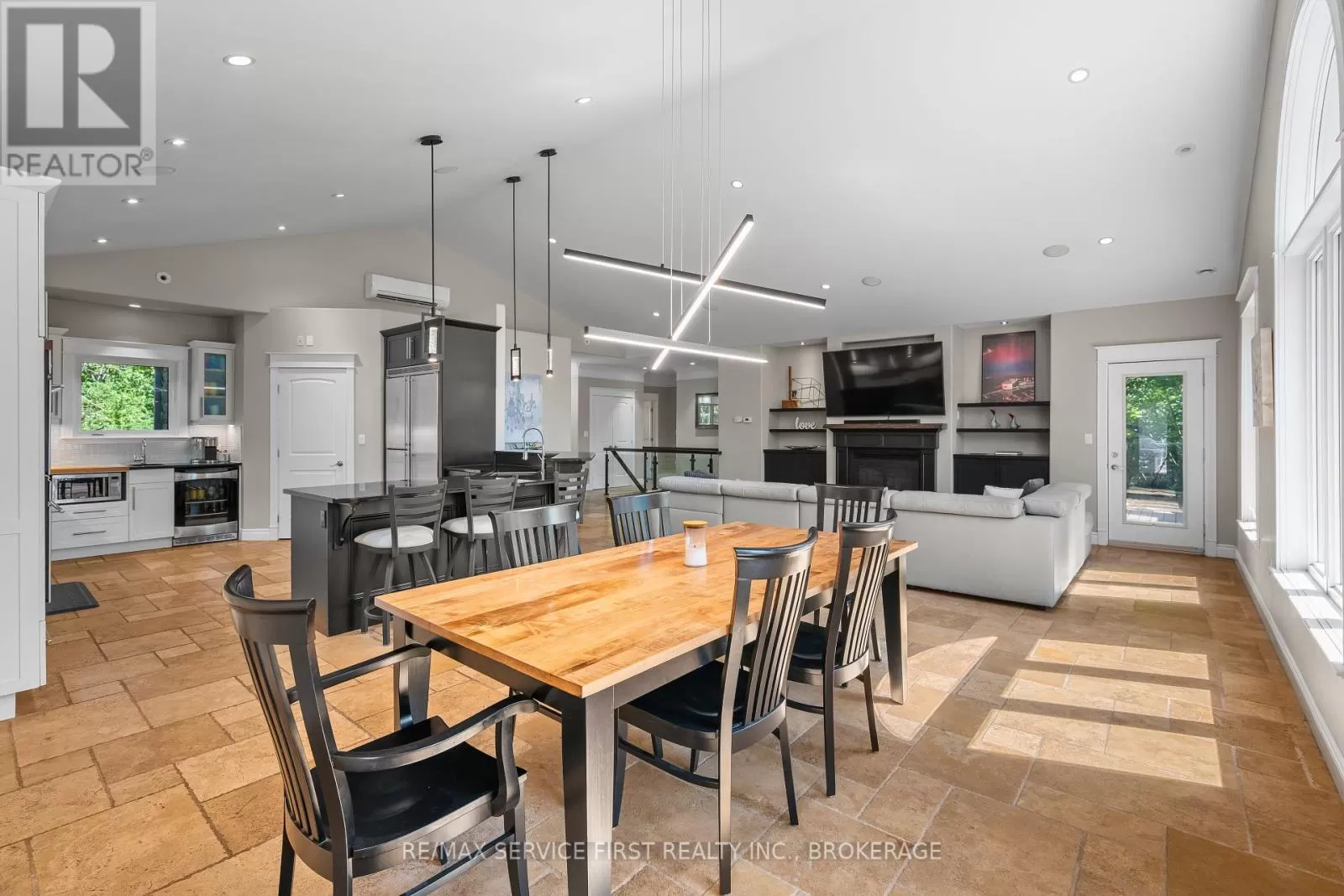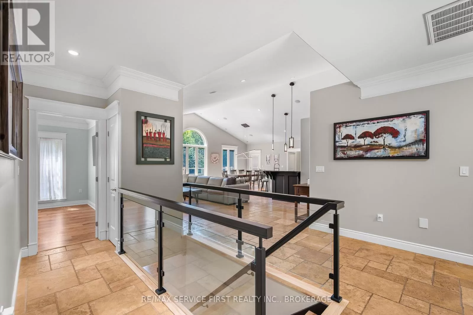 Cross Streets: Highway 38 and Unity Road. ** Directions: 38 Highway to Unity Road. This custom built 2400 sqft executive bungalow is surrounded by rural tranquility as it sits at the back of a 6.5 acre lot and only 10 minutes to the city. Boasting beautiful wooded views from the expansive composite deck with glass railings. The home features 3 plus 1 generous sized bedrooms, 3 and half baths with main floor laundry, in-floor radiant heat on both levels plus in both garages. The full two car attached garage fits 2 trucks, plus the lower-level garage/workshop is perfect for all your storage and toys. The main floor boasts a spacious great room, dining room with vaulted ceiling, glass railings, gas fireplace and travertine tile, plus an office with half bath and crown molding. The open concept kitchen is spacious with all the modern touches. Viking range, built-in double oven, prep area and pantry. The perfect space to entertain. The primary bedroom is complete with patio doors to the rear deck, full bath with glass shower, soaker tub and walk-in closet. Head down the custom hickory stairs with glass railings to the lower level that is fully finished and walk-out, offering loads of natural light in the oversized rec-room with space for the Pool table, ping pong and bar. Plus a bedroom, full bath, den and access to the storage garage/workshop. Step outside to see a private hot tub, landscape lighting, fenced area for the pets and circular drive. Additional updates and features include, Boiler 2025, wall air conditioner unit 2022, water constant pressure system 2022, Hot tub 2022, Ceiling Air conditioning system, plus full generator backup system with new motor 2025. (id:27476)