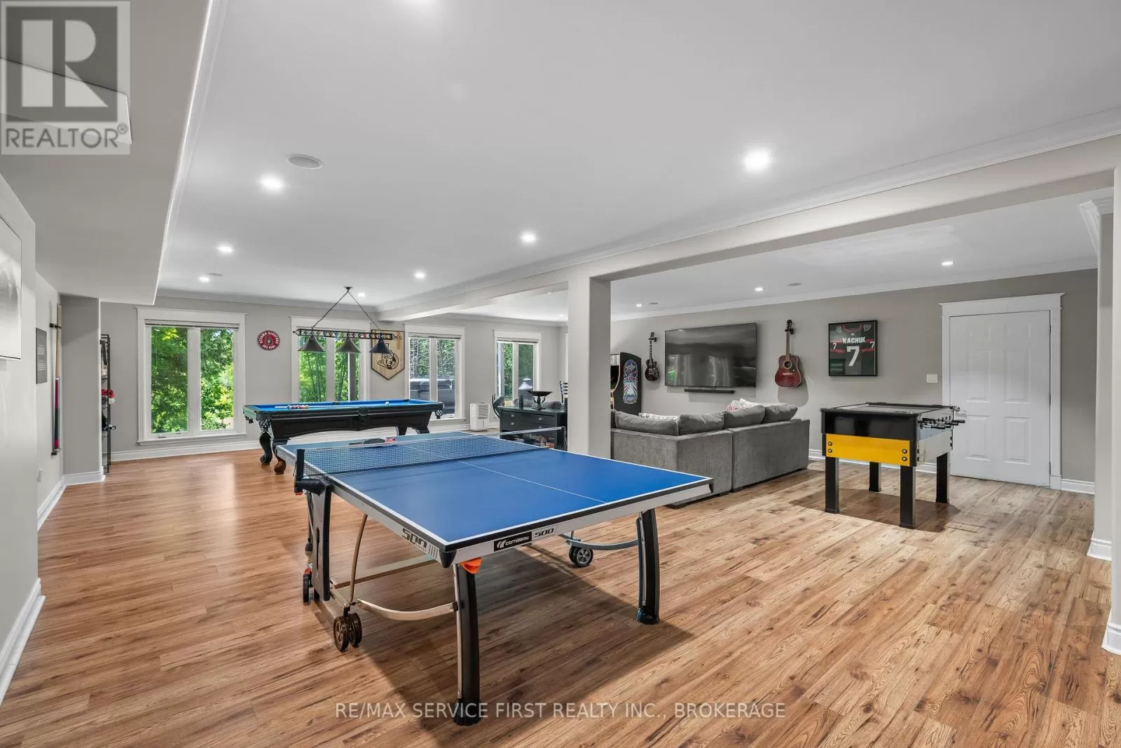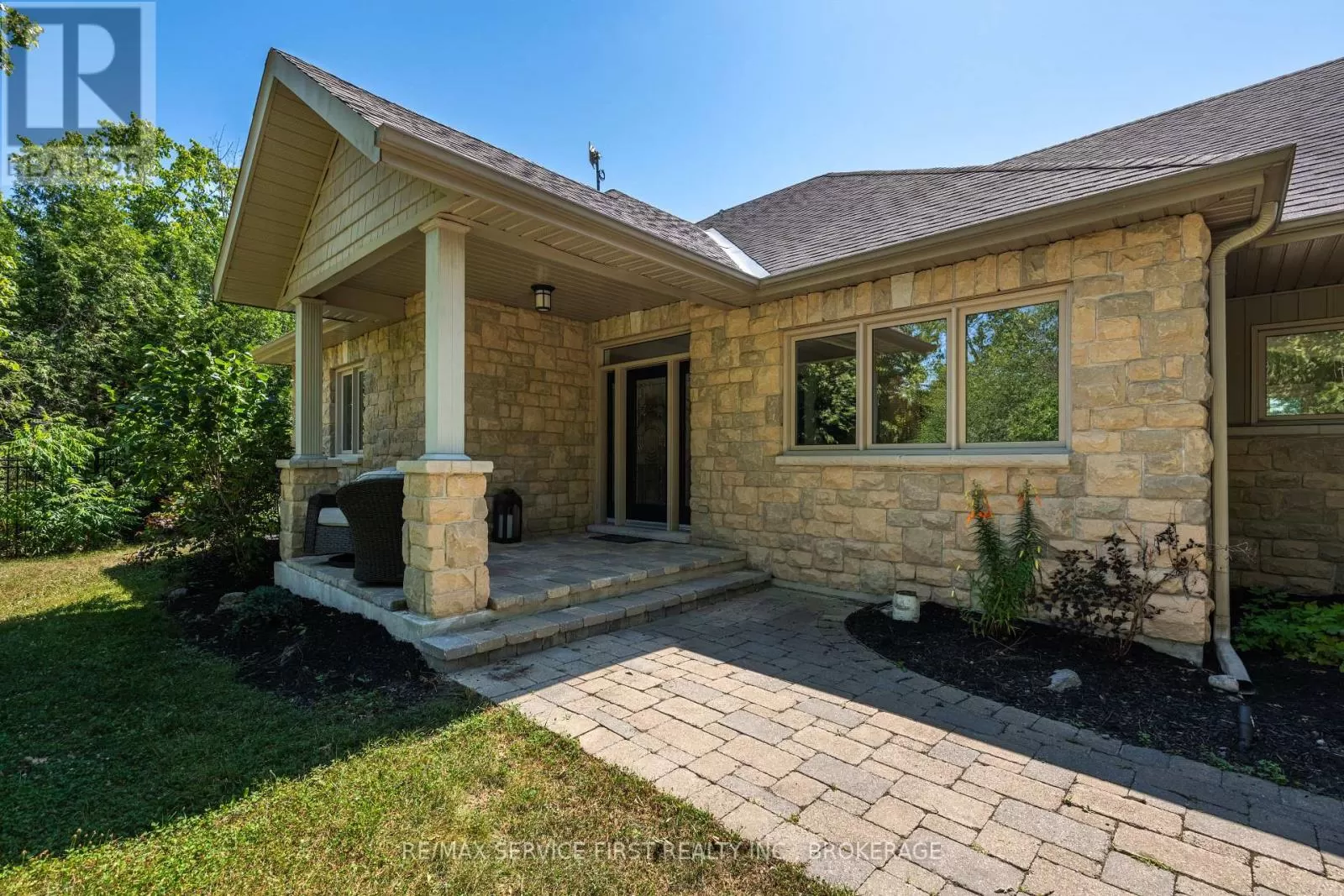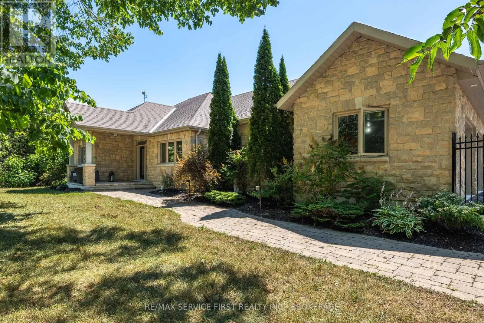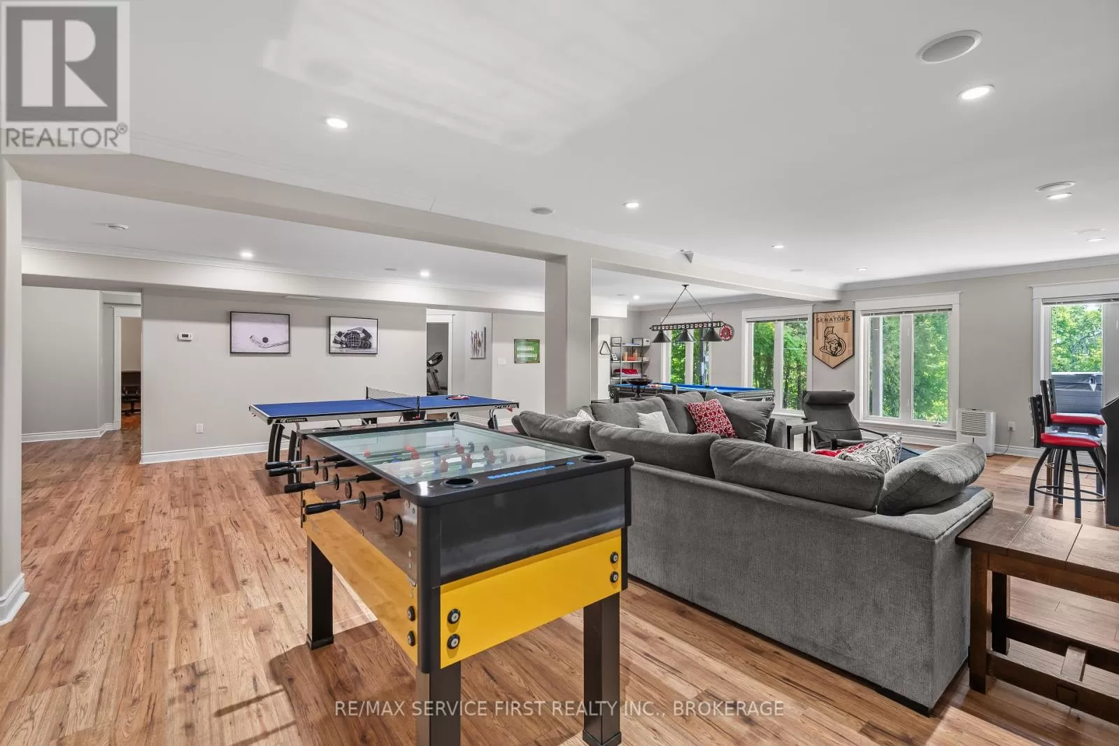 Cross Streets: Highway 38 and Unity Road. ** Directions: 38 Highway to Unity Road. This custom built 2400 sqft executive bungalow is surrounded by rural tranquility as it sits at the back of a 6.5 acre lot and only 10 minutes to the city. Boasting beautiful wooded views from the expansive composite deck with glass railings. The home features 3 plus 1 generous sized bedrooms, 3 and half baths with main floor laundry, in-floor radiant heat on both levels plus in both garages. The full two car attached garage fits 2 trucks, plus the lower-level garage/workshop is perfect for all your storage and toys. The main floor boasts a spacious great room, dining room with vaulted ceiling, glass railings, gas fireplace and travertine tile, plus an office with half bath and crown molding. The open concept kitchen is spacious with all the modern touches. Viking range, built-in double oven, prep area and pantry. The perfect space to entertain. The primary bedroom is complete with patio doors to the rear deck, full bath with glass shower, soaker tub and walk-in closet. Head down the custom hickory stairs with glass railings to the lower level that is fully finished and walk-out, offering loads of natural light in the oversized rec-room with space for the Pool table, ping pong and bar. Plus a bedroom, full bath, den and access to the storage garage/workshop. Step outside to see a private hot tub, landscape lighting, fenced area for the pets and circular drive. Additional updates and features include, Boiler 2025, wall air conditioner unit 2022, water constant pressure system 2022, Hot tub 2022, Ceiling Air conditioning system, plus full generator backup system with new motor 2025. (id:27476)