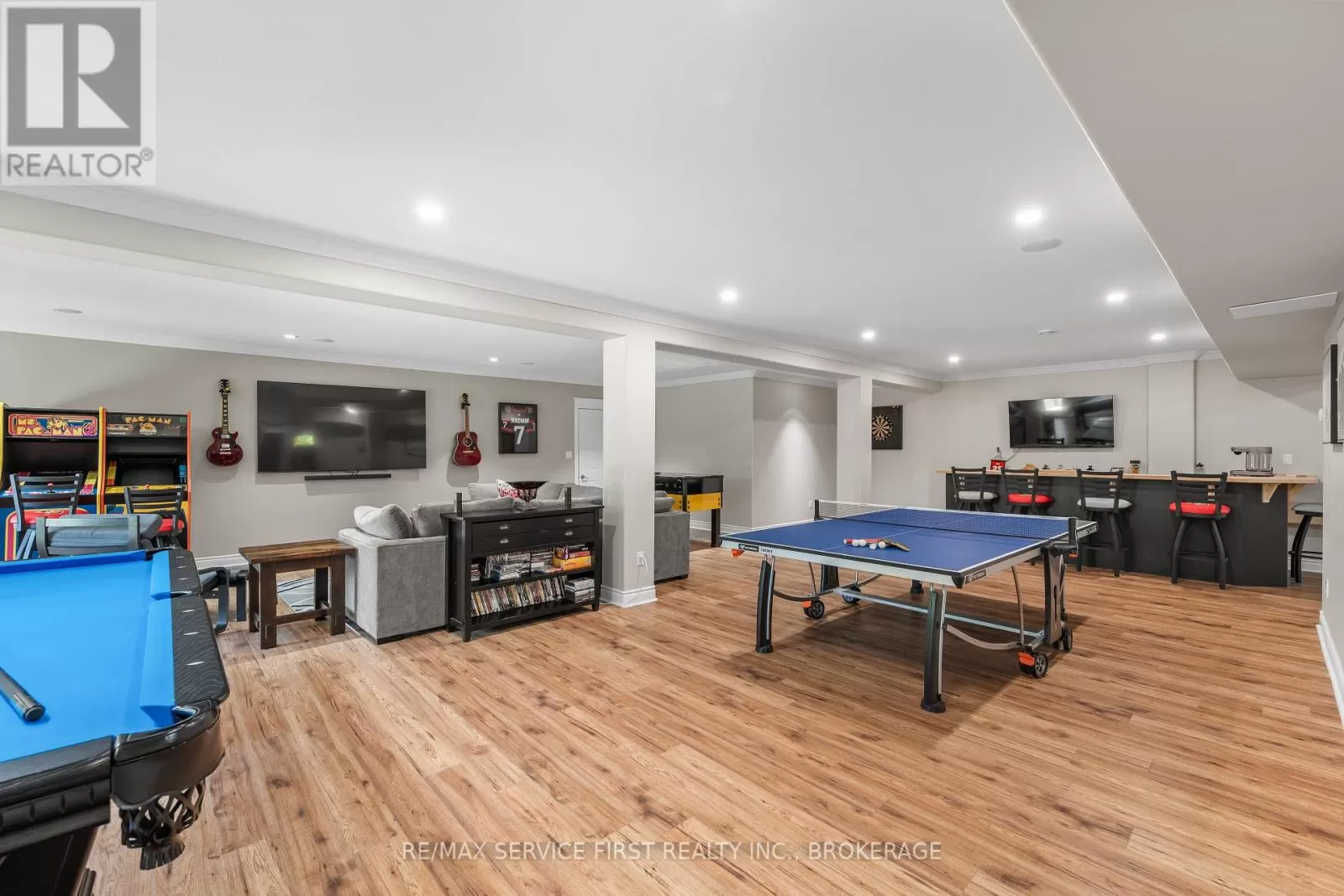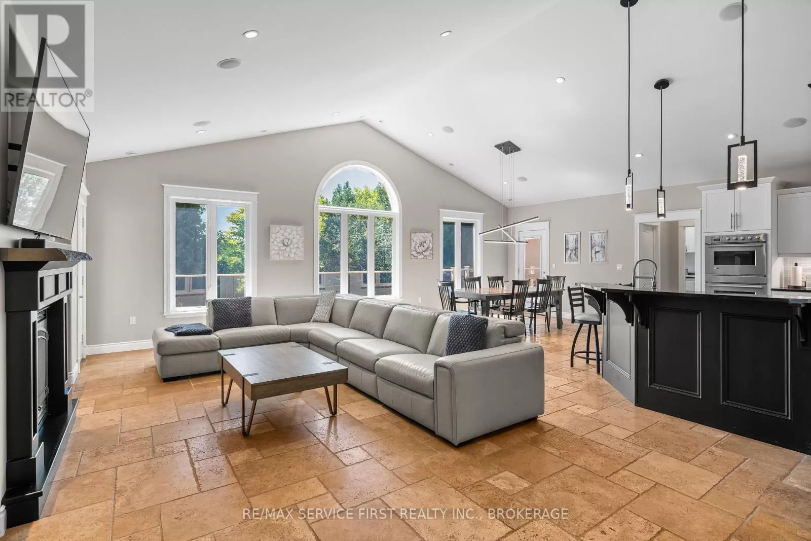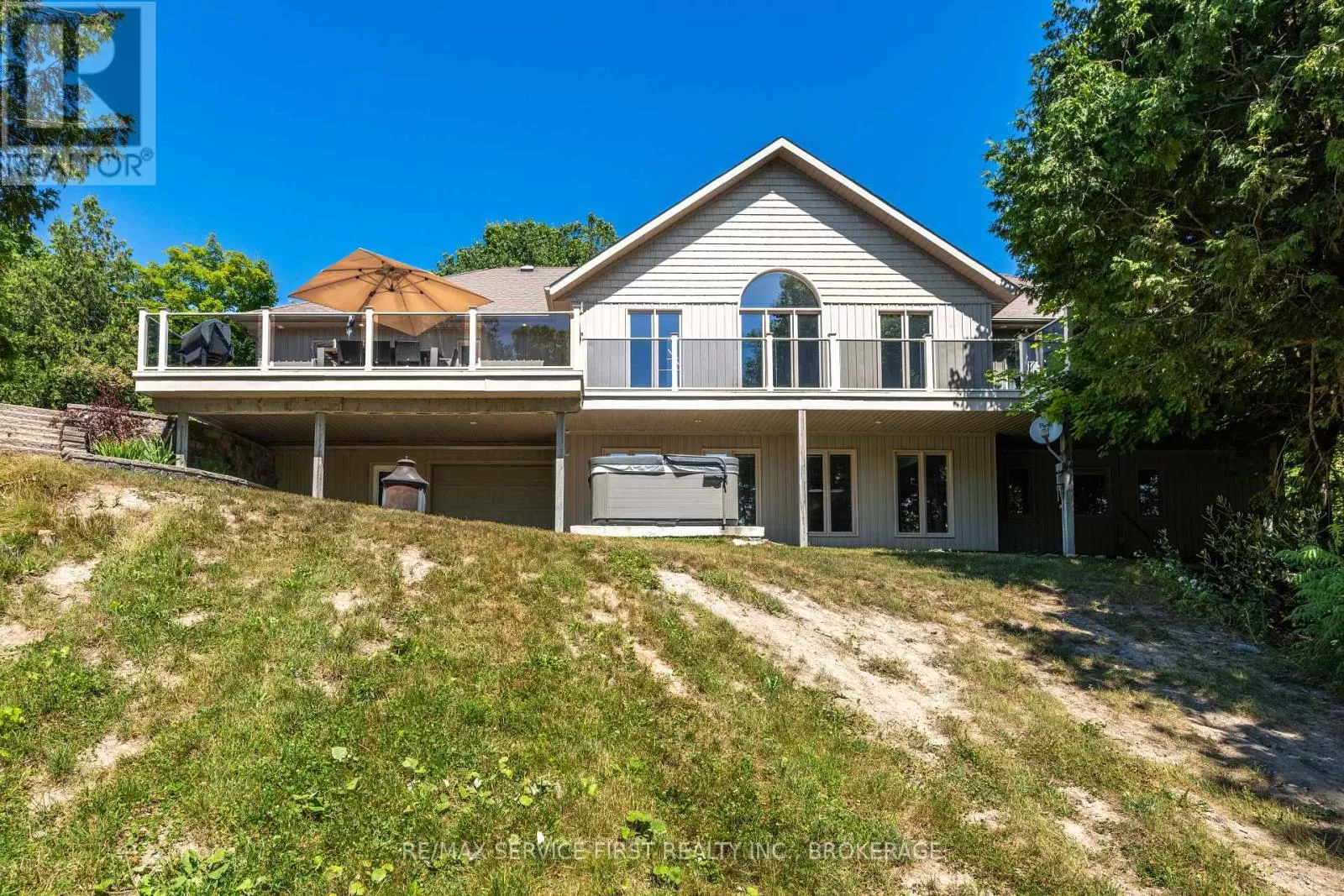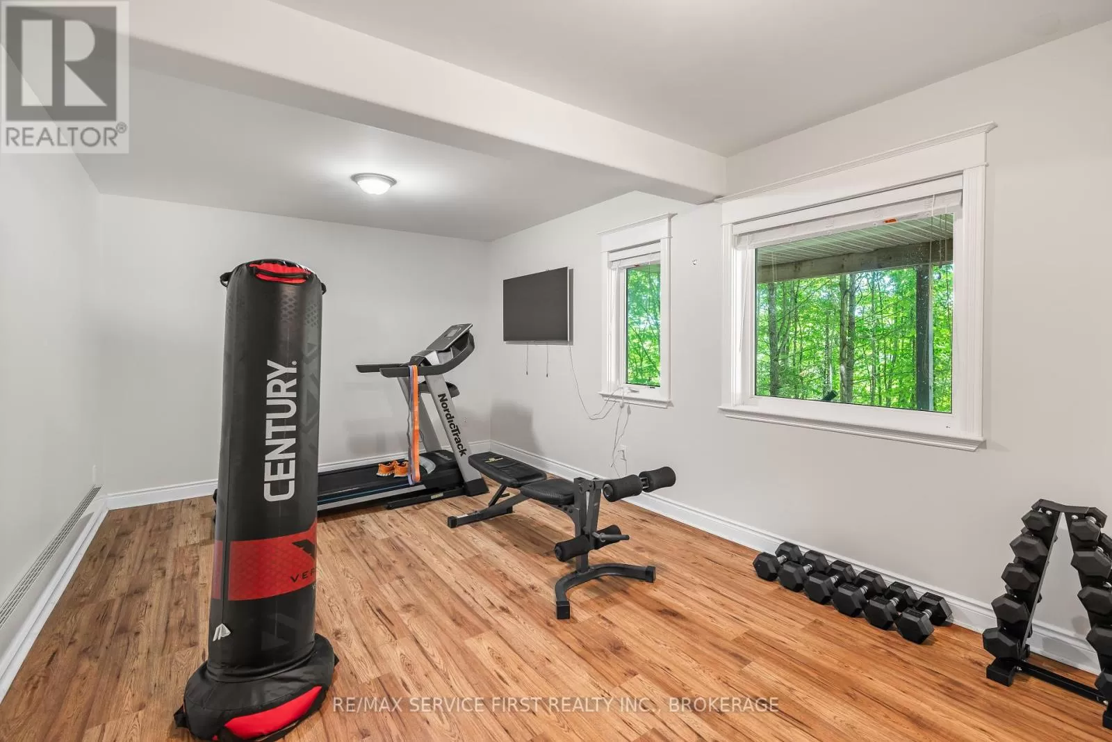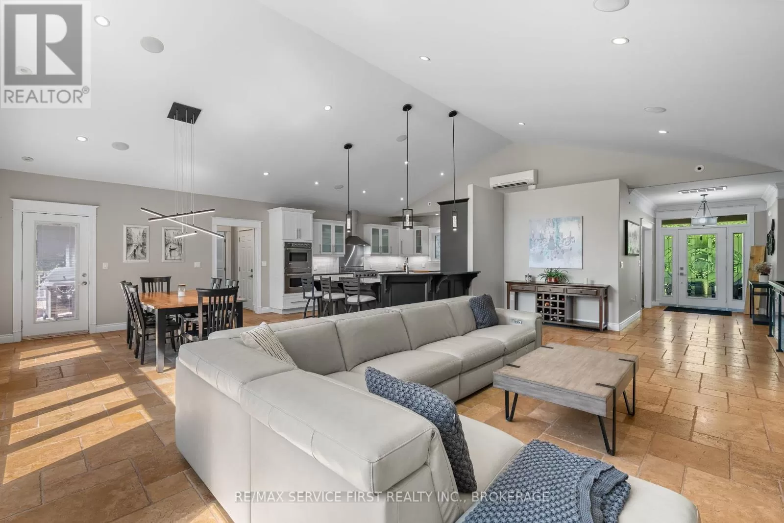 Cross Streets: Highway 38 and Unity Road. ** Directions: 38 Highway to Unity Road. This custom built 2400 sqft executive bungalow is surrounded by rural tranquility as it sits at the back of a 6.5 acre lot and only 10 minutes to the city. Boasting beautiful wooded views from the expansive composite deck with glass railings. The home features 3 plus 1 generous sized bedrooms, 3 and half baths with main floor laundry, in-floor radiant heat on both levels plus in both garages. The full two car attached garage fits 2 trucks, plus the lower-level garage/workshop is perfect for all your storage and toys. The main floor boasts a spacious great room, dining room with vaulted ceiling, glass railings, gas fireplace and travertine tile, plus an office with half bath and crown molding. The open concept kitchen is spacious with all the modern touches. Viking range, built-in double oven, prep area and pantry. The perfect space to entertain. The primary bedroom is complete with patio doors to the rear deck, full bath with glass shower, soaker tub and walk-in closet. Head down the custom hickory stairs with glass railings to the lower level that is fully finished and walk-out, offering loads of natural light in the oversized rec-room with space for the Pool table, ping pong and bar. Plus a bedroom, full bath, den and access to the storage garage/workshop. Step outside to see a private hot tub, landscape lighting, fenced area for the pets and circular drive. Additional updates and features include, Boiler 2025, wall air conditioner unit 2022, water constant pressure system 2022, Hot tub 2022, Ceiling Air conditioning system, plus full generator backup system with new motor 2025. (id:27476)