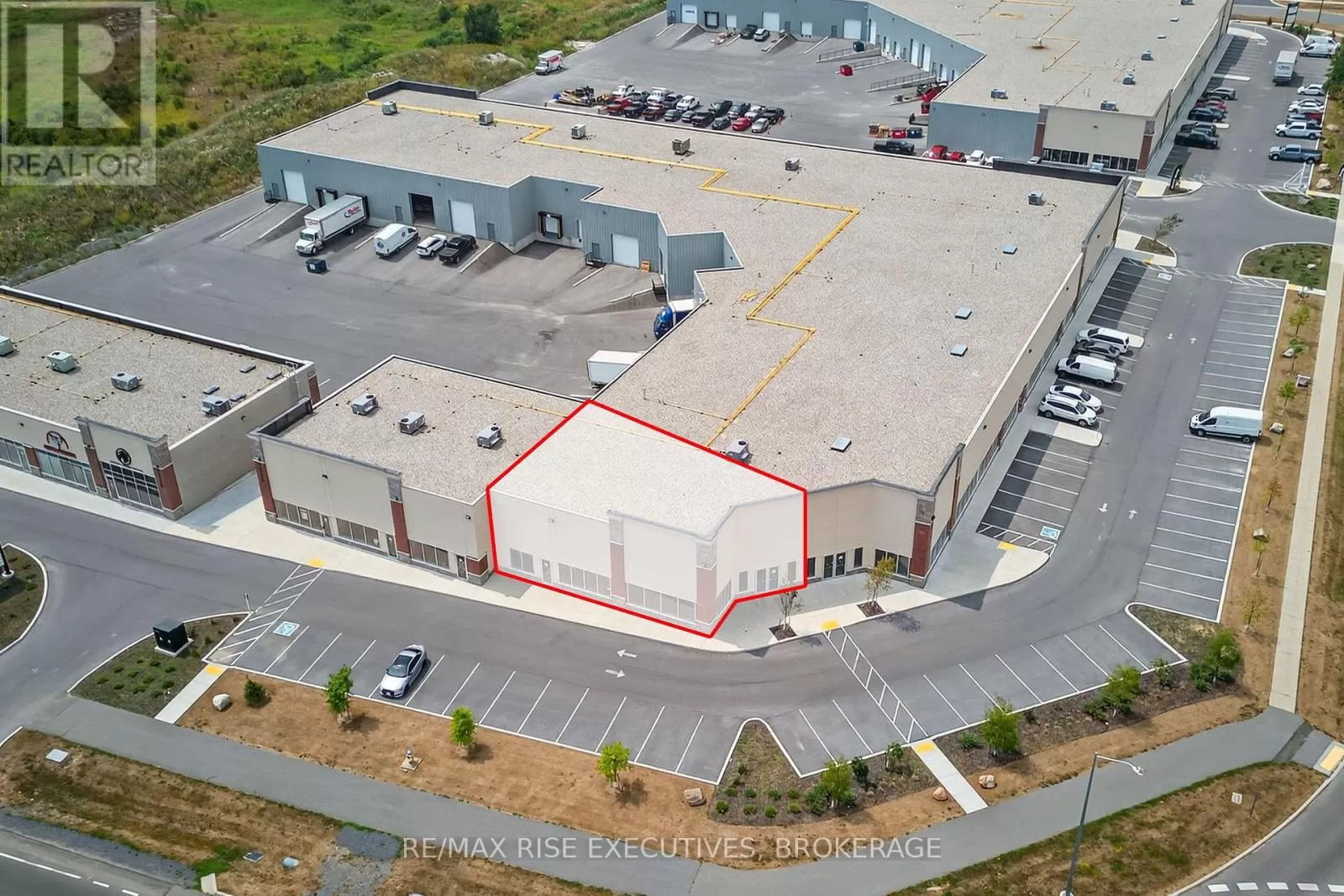Cross Streets: Centennial Dr and Cataraqui Woods Dr. ** Directions: Centennial Dr before Resource Rd. Prime Industrial Condo for Lease 1325 Centennial Drive, Unit 11, Kingston, ON. Offering 4177 sq. ft. of warehouse/office space with 20 ft clear ceiling height, rear entry door, and ample common parking. Located in the Cataraqui Estates Business Park, the property is zoned M3-L91, allowing for a wide range of uses including: Manufacturing, assembly, and processing operations- Construction, transportation, storage, warehousing, and wholesale trade- Communications, utilities, and institutional uses with industrial characteristics. Complementary uses such as restaurant, financial institution, personal services, automotive/truck repair, research and development facilities, and clinics. Business or professional offices must be within 90 metres of a street line and limited to 50%of total gross floor area. Rental Rate:$10/sq.ft if the intended use is exempt from development charges or the owner pays them directly. $15/sq.ft if development charges apply and are included in the lease to be paid by the landlord. (id:27476)