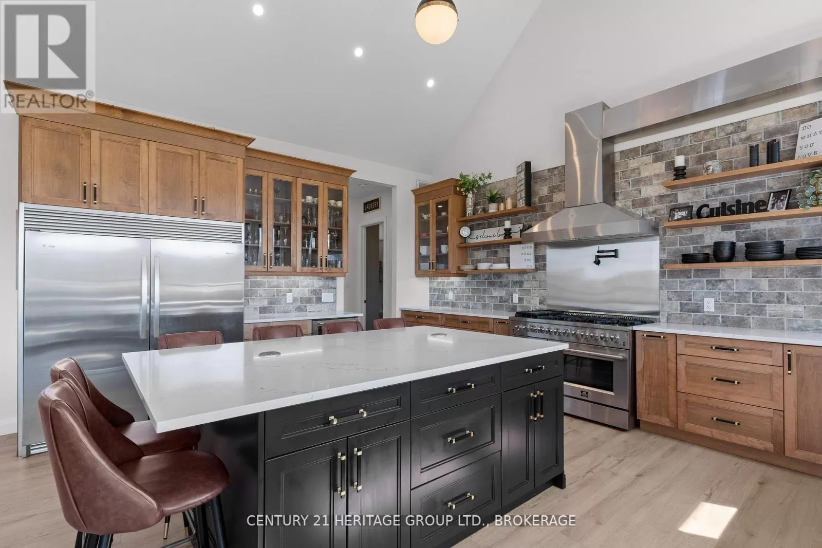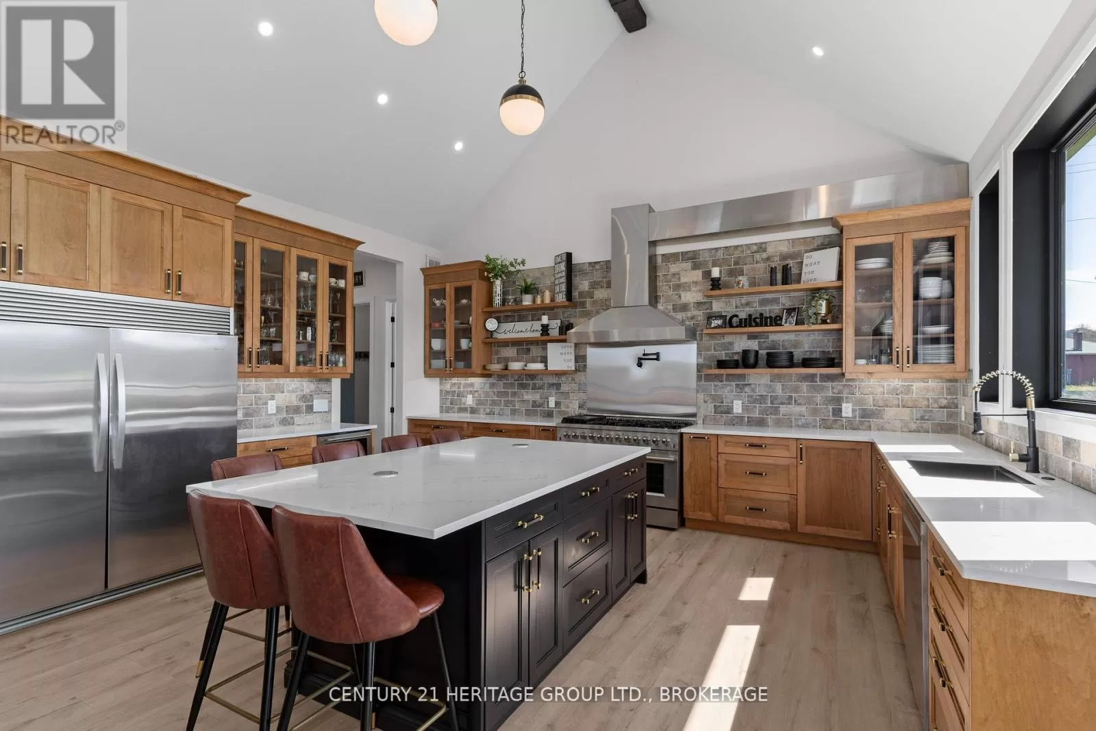 Hwy 15 and Isle of Man Welcome to 245 Mann Drive, an extraordinary 5-bedroom, 3.5-bathroom custom homeset on an estate-sized lot in the sought-after community of Gibraltar Estates. With over4,600 square feet of thoughtfully designed living space, this home blends elegant form with everyday function, making it perfect for families, entertainers, and multi-generational living. The exterior showcases striking stone and Hardie board finishes, setting the tone for the quality and craftsmanship found throughout. Step inside to a dramatic 20-foot vaulted ceiling, floor-to-ceiling windows, and a spacious open-concept layout that offers light, warmth, and a feeling of home. At the heart of the home is a chef-inspired kitchen featuring an oversized quartz island, open shelving, brick backsplash, high-end appliances Including a propane stove with double ovens, and a large walk-in pantry. The adjacent dining area easily accommodates extended family and friends ideal for hosting holiday dinners or lively get-togethers. The main-floor primary suite is a true sanctuary with his-and-her walk-in closets, a private walkout to the upper deck, and a spa-like ensuite featuring dual vanities, a luxurious soaker tub, and an impressive 10-foot walk-in shower. A private office, 2 large bedrooms and main-floor laundry add both convenience and flexibility to your day-to-day life. The fully finished walkout lower level offers two more generous bedrooms, a full bath, a home gym, games room, and a cozy den with a fireplace ideal for teens, guests, or in-laws needing their own space. Outside, enjoy a covered upper deck, a swim spa, and stunning sunset views. This home was built to impress and designed to live in, offering the perfect blend of luxury, comfort, and functionality. If you've been waiting for something truly special, this is the home that checks every box. (id:27476)