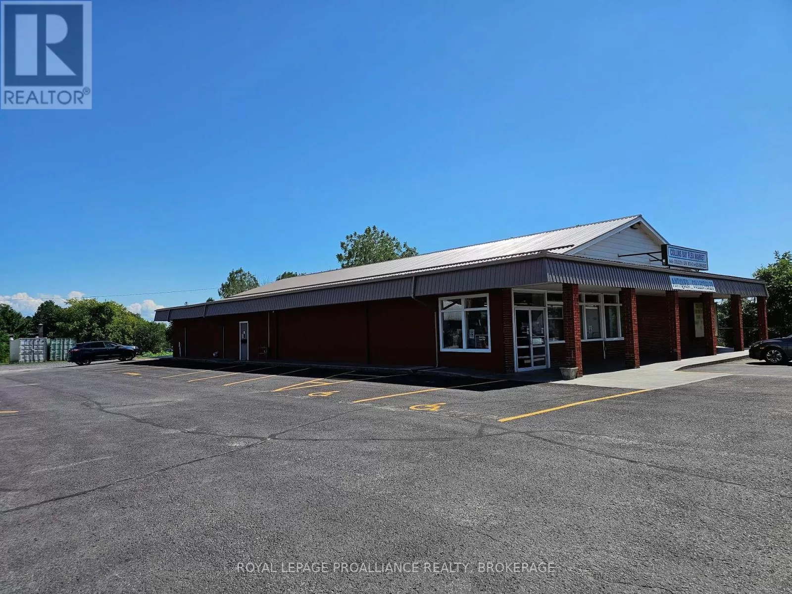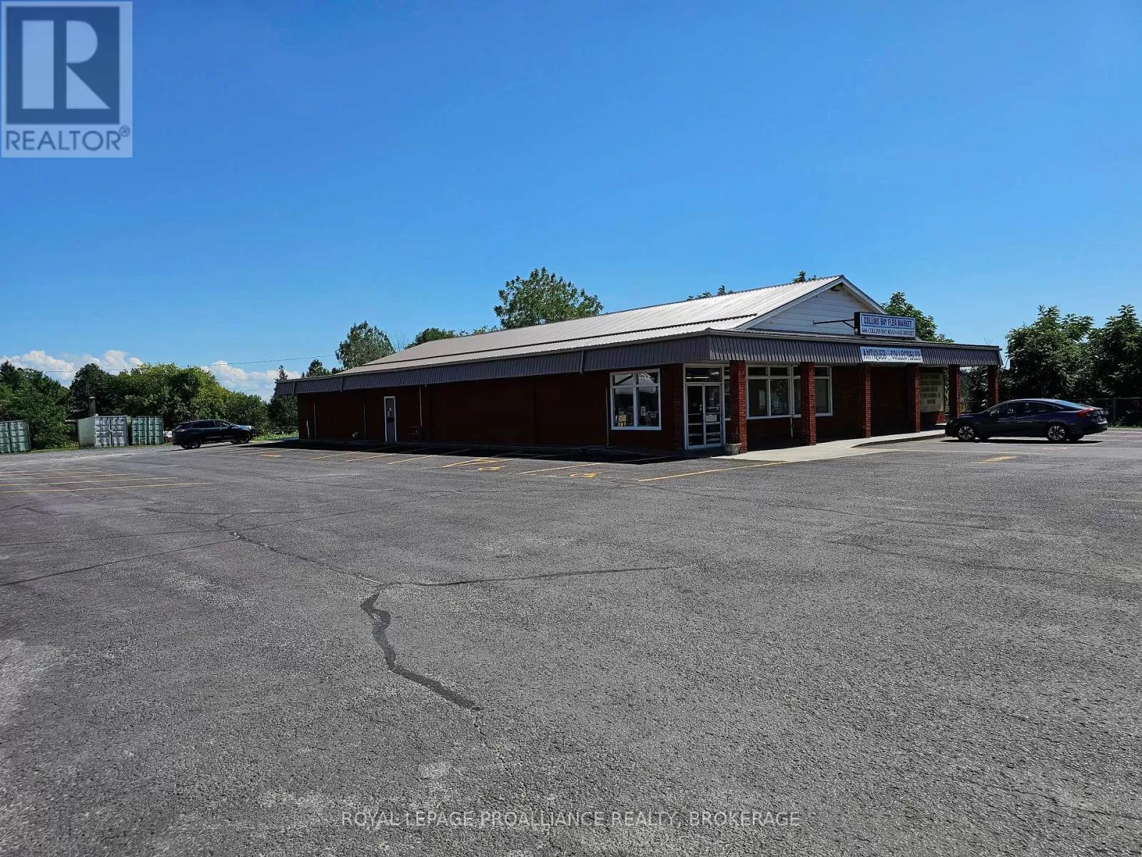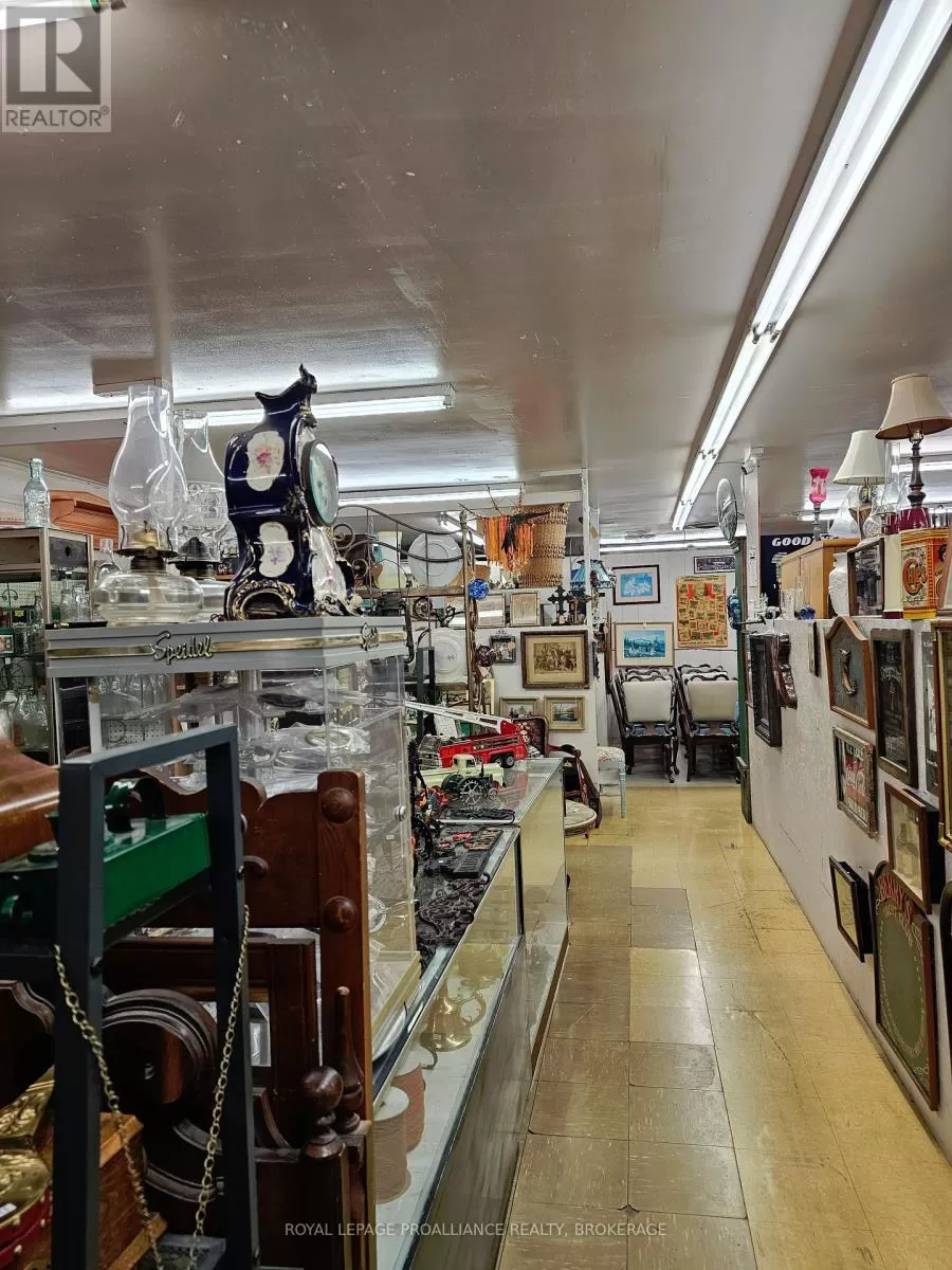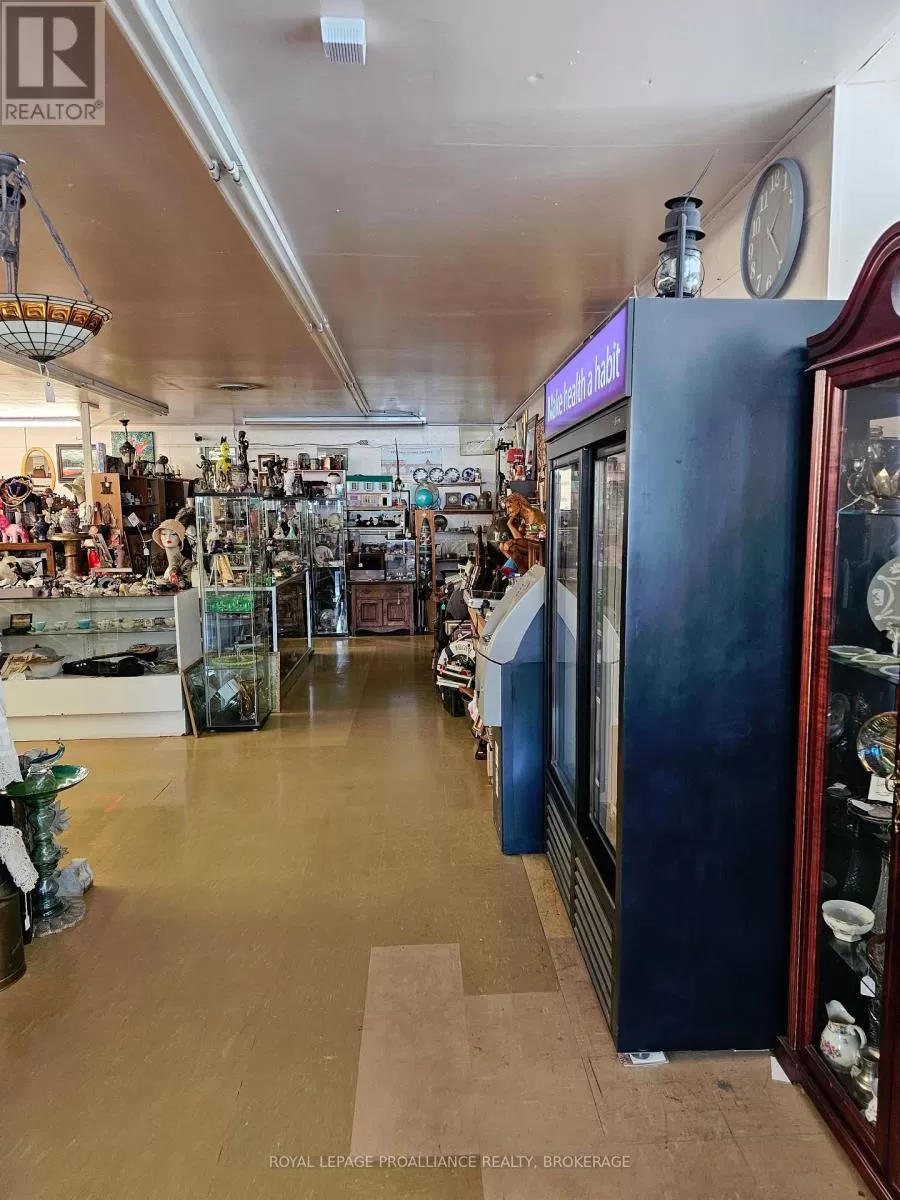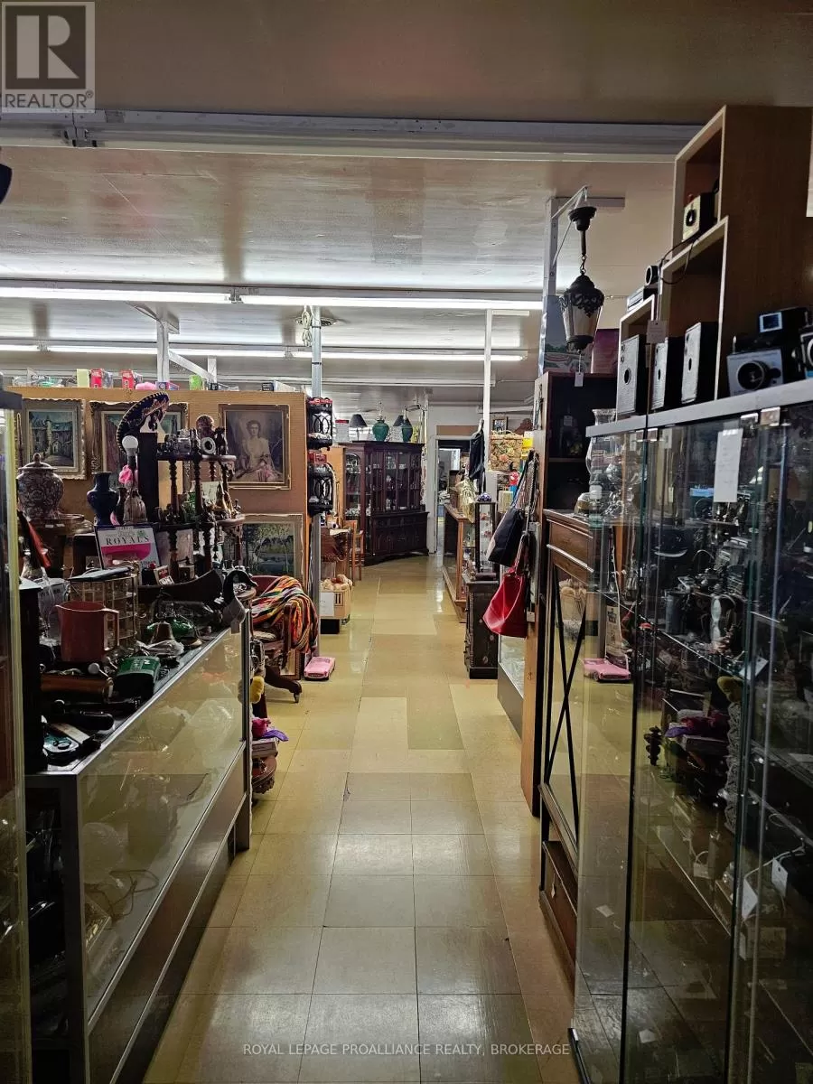 Cross Streets: Bath Road. ** Directions: Bath Road to Collins Bay Road, north to 666, or Princess St, or Taylor Kidd to Collins Bay Road. Commercial property in desirable west end Kingston location with entrances from Collins Bay Road and from Glenmore Avenue. Expansive 1.67 acre lot with 37 marked parking spots, including handicap parking. Currently 6652 Sq. Ft. retail on one level with additional 561 sq ft storage. Solid block building has been improved with metal roof, double glazed windows, roof mounted HVAC system (Gas). Information regarding financials and leases is available upon request. General commercial zoning (CG) allows for multitude of uses - see documents. Presently operating as a thriving antique and collectible business, with additional income. (id:27476)