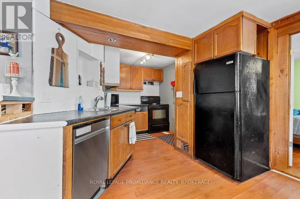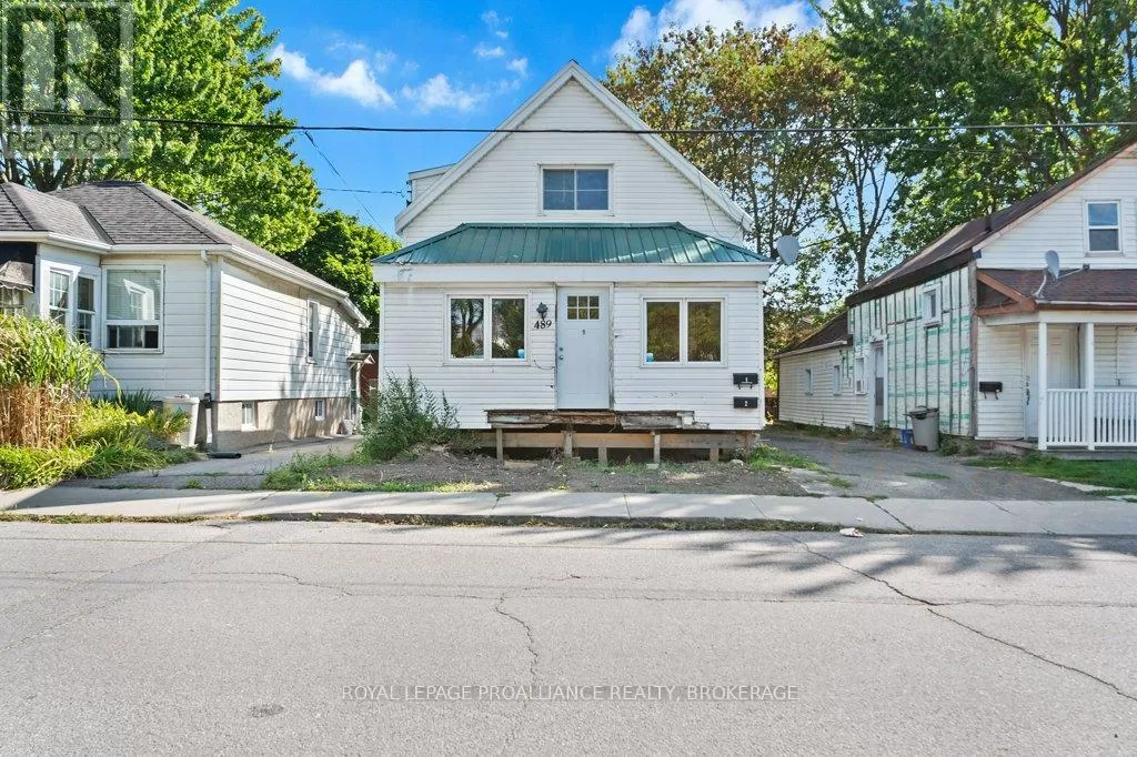 BETWEEN ADELAIDE AND STANLEY Welcome to 489 Alfred Street. This centrally located home would make a great investment property or 1st time buyer home. Situated only a few blocks from Queens Campus and across from the Memorial Centre with its weekend farmers market, playground and open space. The property is currently divided into 2 separate 2 BR units, with the upper unit also having an additional office. The main floor is spacious with 2 well sized BRs, a large open LR/DR combo and country style kitchen. Upstairs is a bright space and has its own separate entrance, also with 2 BRs and a large LR off the kitchen. Both units each have a 4 pc bath. The basement serves as a utility and storage area and is unfinished. The property is being sold As is and needs some renovation but has fantastic potential. The property has a metal roof, gas heating, back patio, includes 7 appliances, has separate hydro meters, 2 HWTs and offers vacant possession on closing. (id:27476)