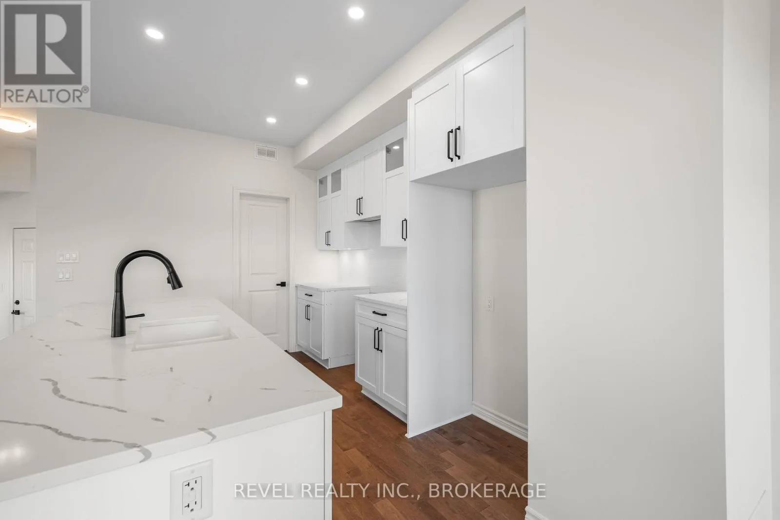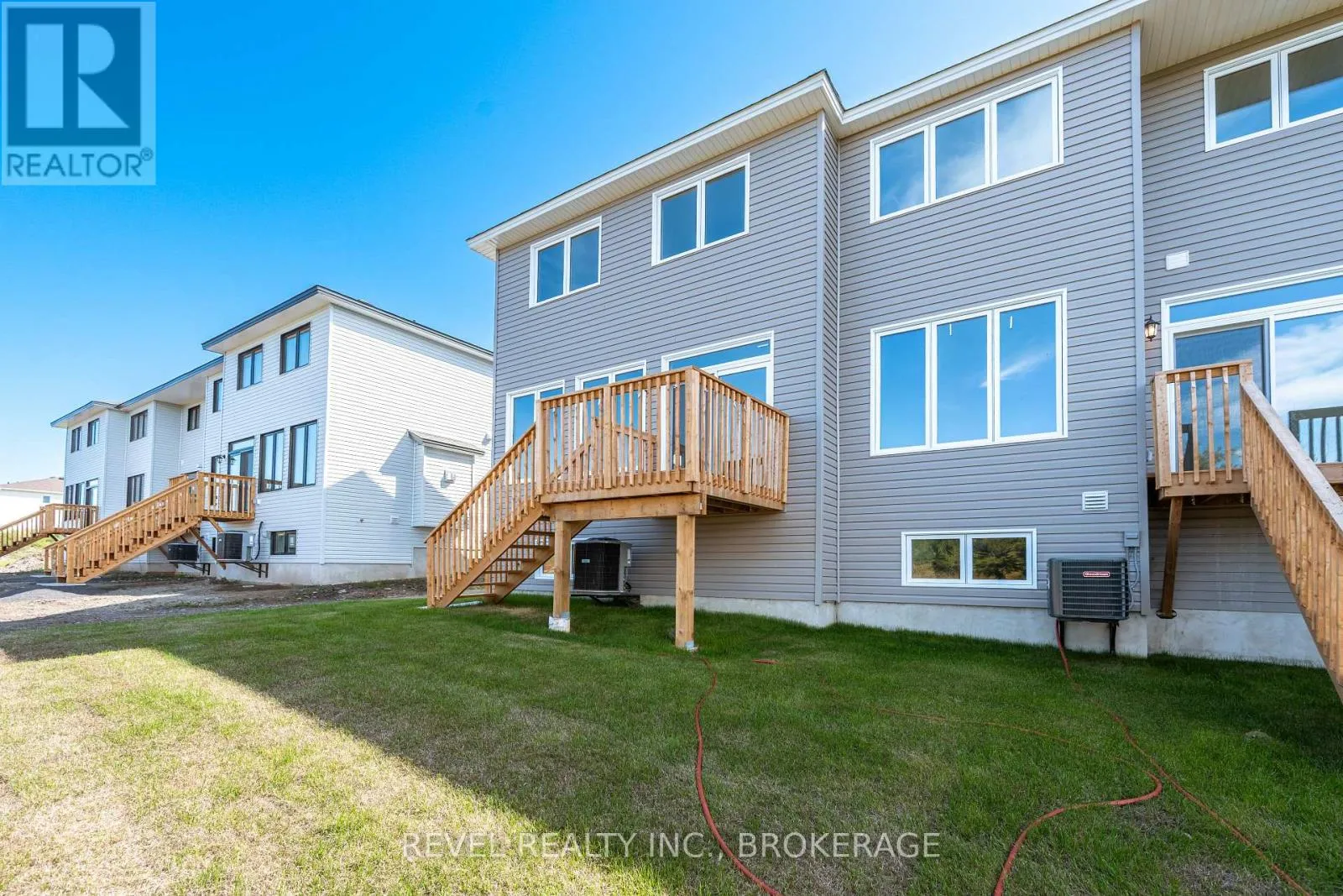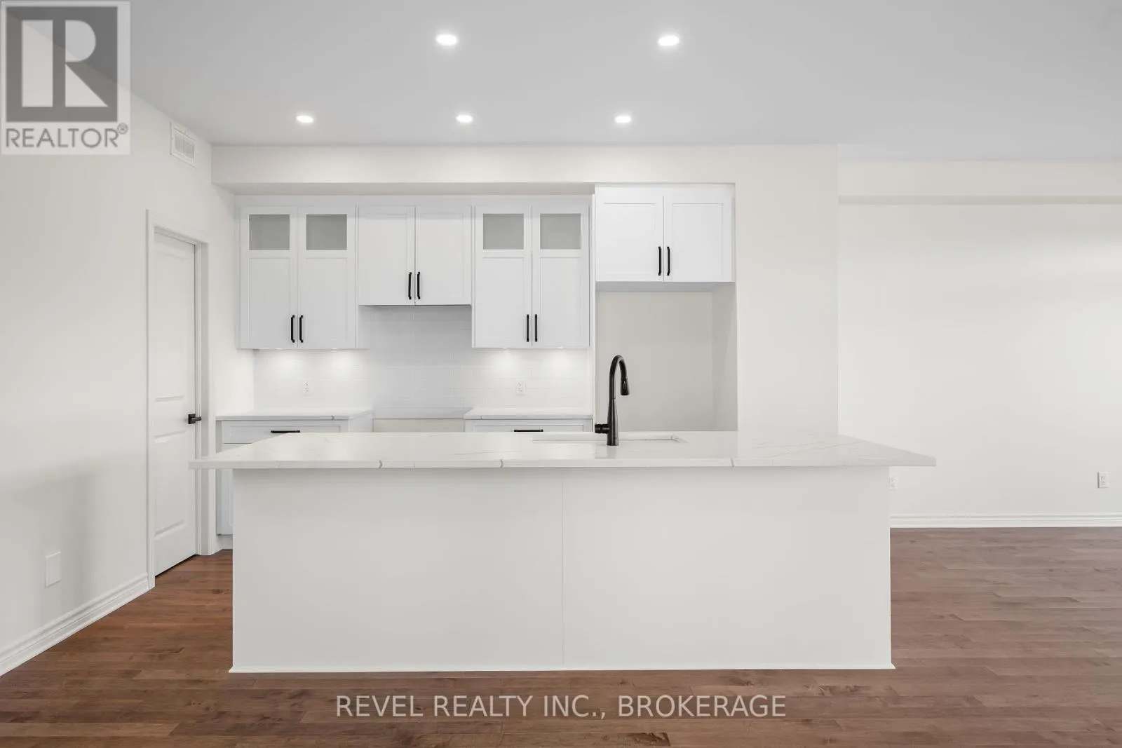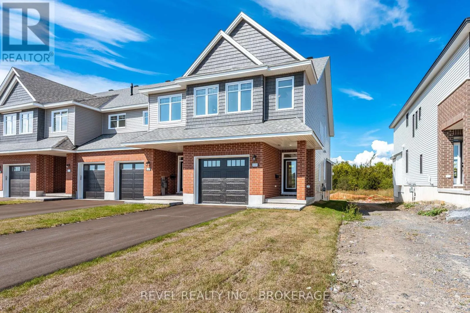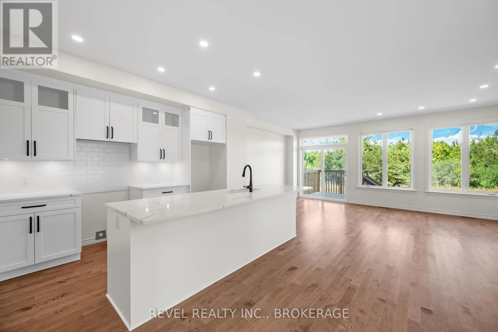 Cross Streets: Cataraqui Woods Drive and Woodhaven Drive. ** Directions: Cataraqui Woods Drive to Woodhaven drive to Buckthorn Drive. Here is "The Camden", a move-in ready end-unit lookout townhome offering 2,160 sq ft of finished living space in Kingstons northwest Woodhaven community. The main floor features maple hardwood, quartz countertops throughout, a bright kitchen with white shaker cabinetry, upgraded sink, and walk-in pantry, plus a cozy gas fireplace. The primary suite showcases a spa-like 4-piece ensuite with a freestanding tub and walk-in tile/glass shower. The finished lookout basement, complete with a bathroom rough-in, provides versatile additional living space. This ENERGY STAR certified home is designed for comfort, style, and efficiency. (id:27476)