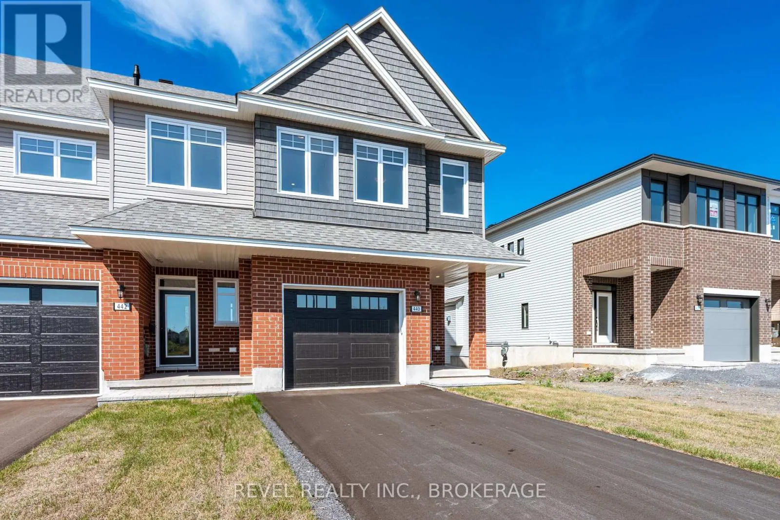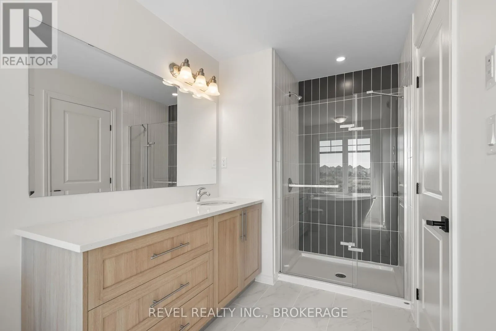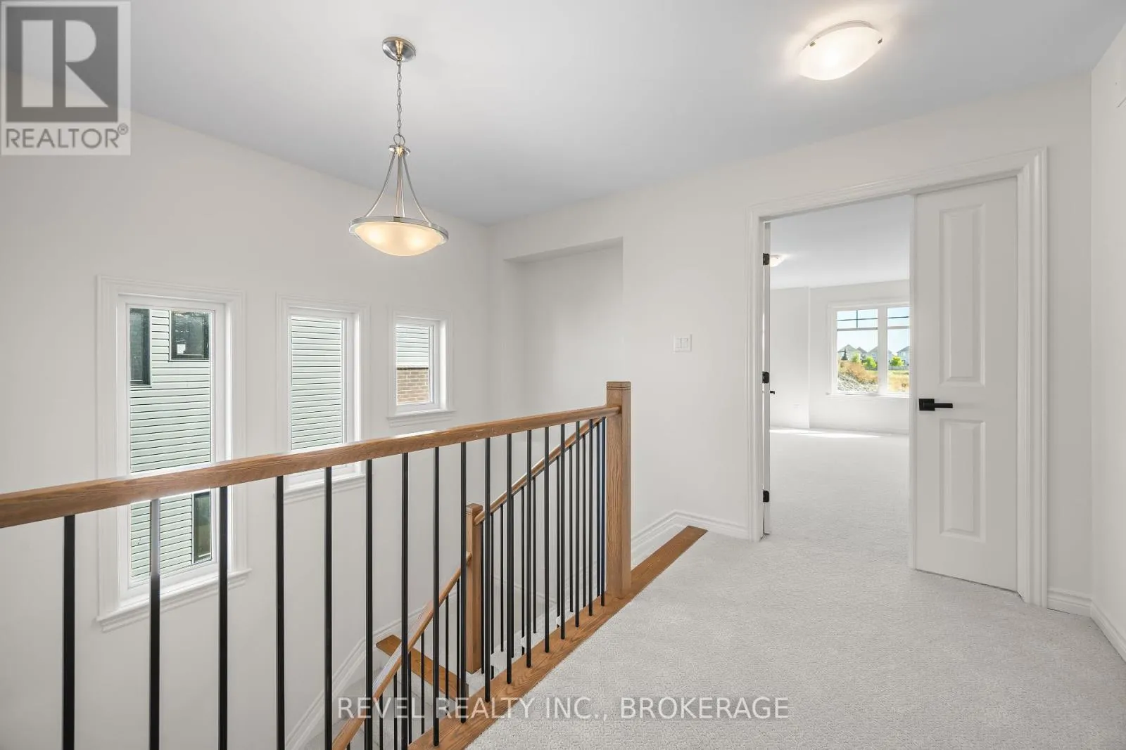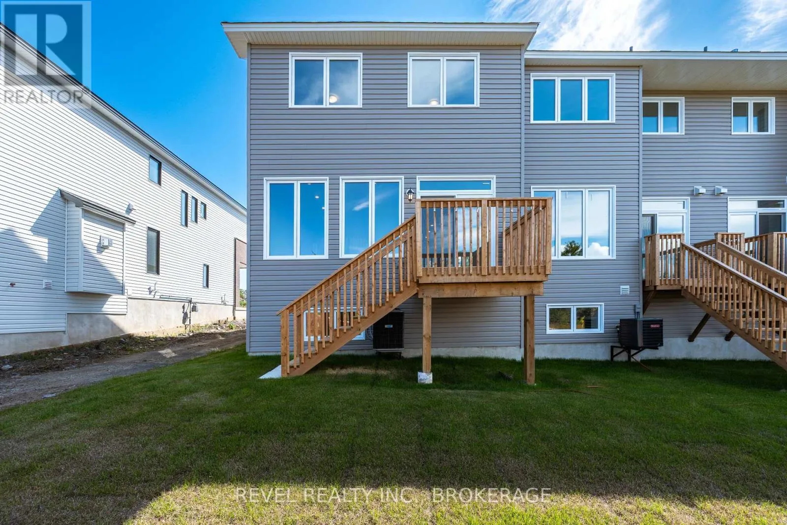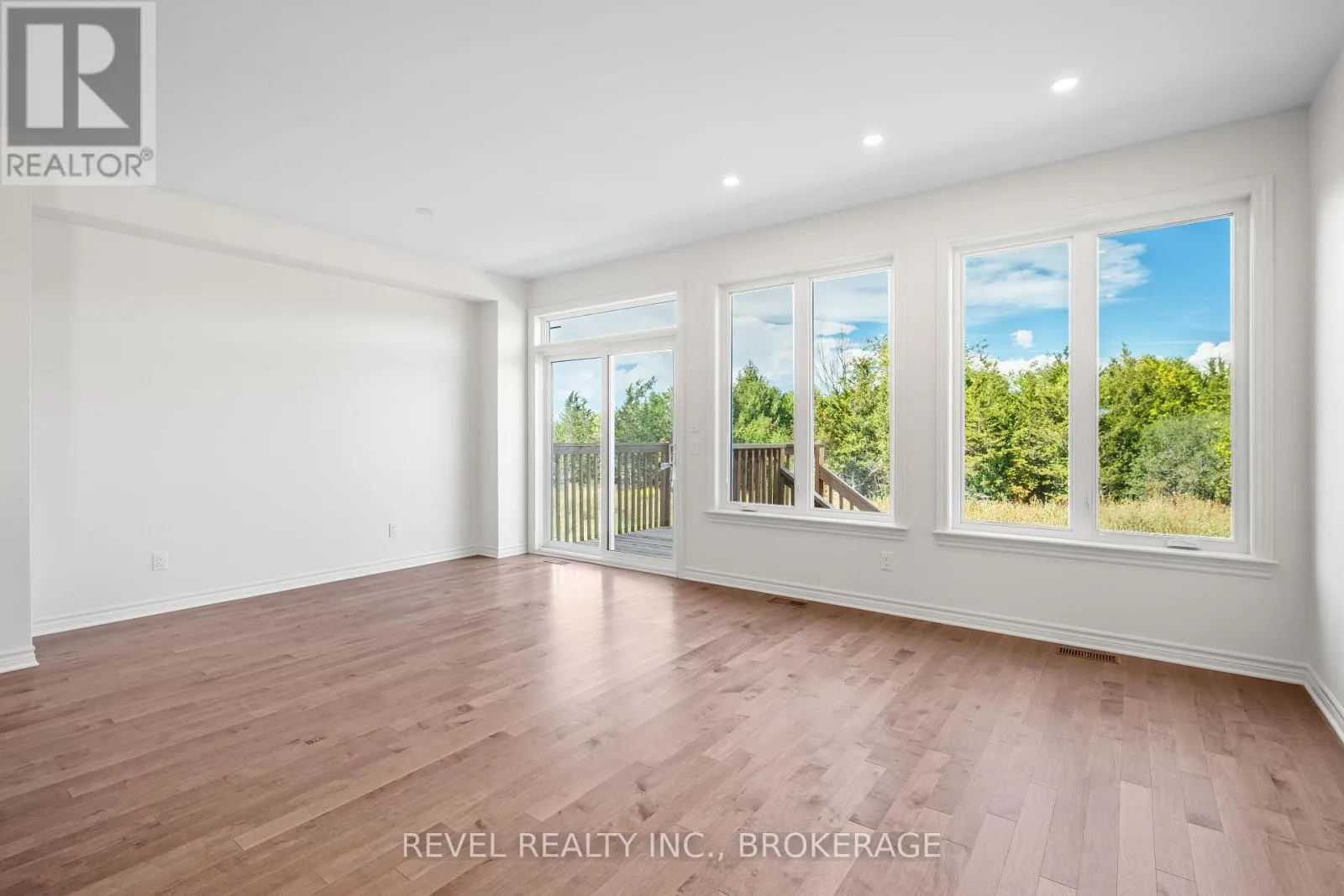 Cross Streets: Cataraqui Woods Drive and Woodhaven Drive. ** Directions: Cataraqui Woods Drive to Woodhaven drive to Buckthorn Drive. Here is "The Camden", a move-in ready end-unit lookout townhome offering 2,160 sq ft of finished living space in Kingstons northwest Woodhaven community. The main floor features maple hardwood, quartz countertops throughout, a bright kitchen with white shaker cabinetry, upgraded sink, and walk-in pantry, plus a cozy gas fireplace. The primary suite showcases a spa-like 4-piece ensuite with a freestanding tub and walk-in tile/glass shower. The finished lookout basement, complete with a bathroom rough-in, provides versatile additional living space. This ENERGY STAR certified home is designed for comfort, style, and efficiency. (id:27476)