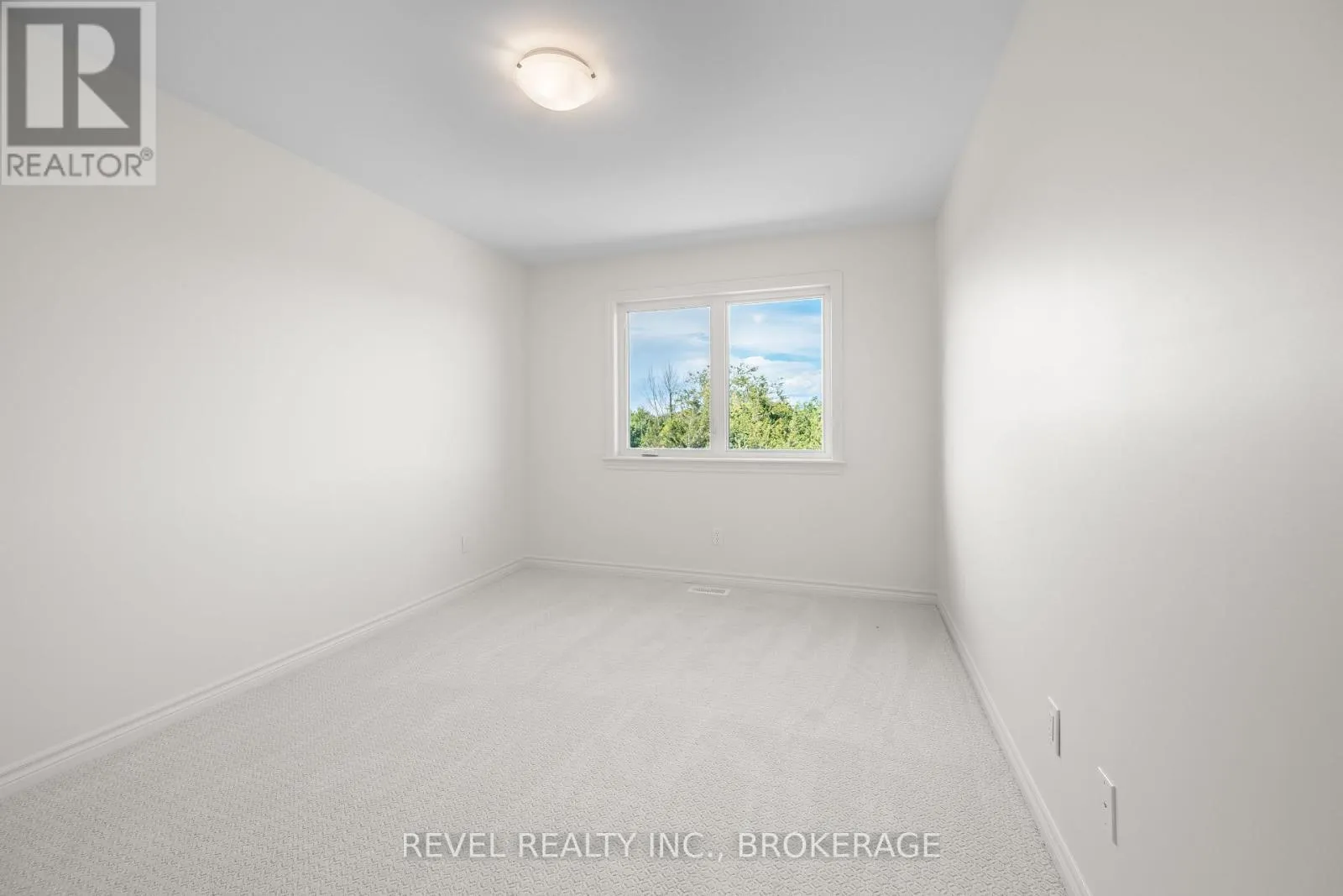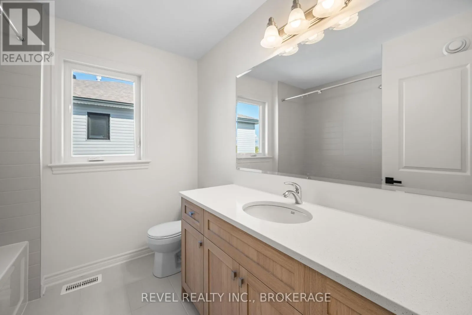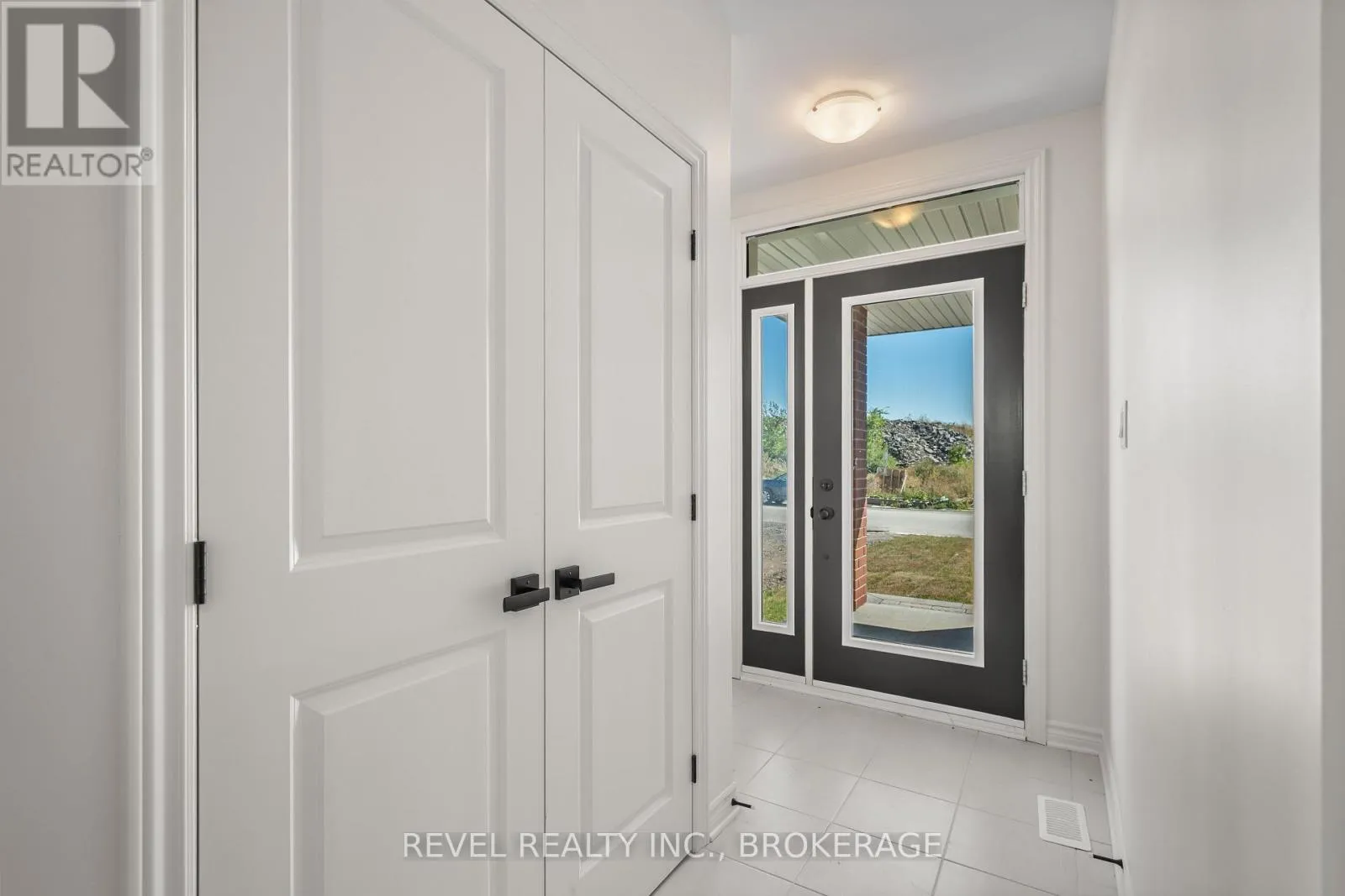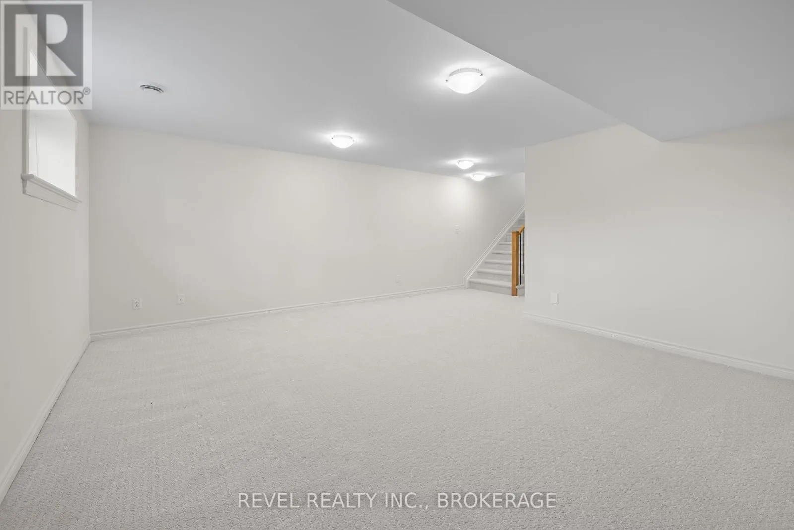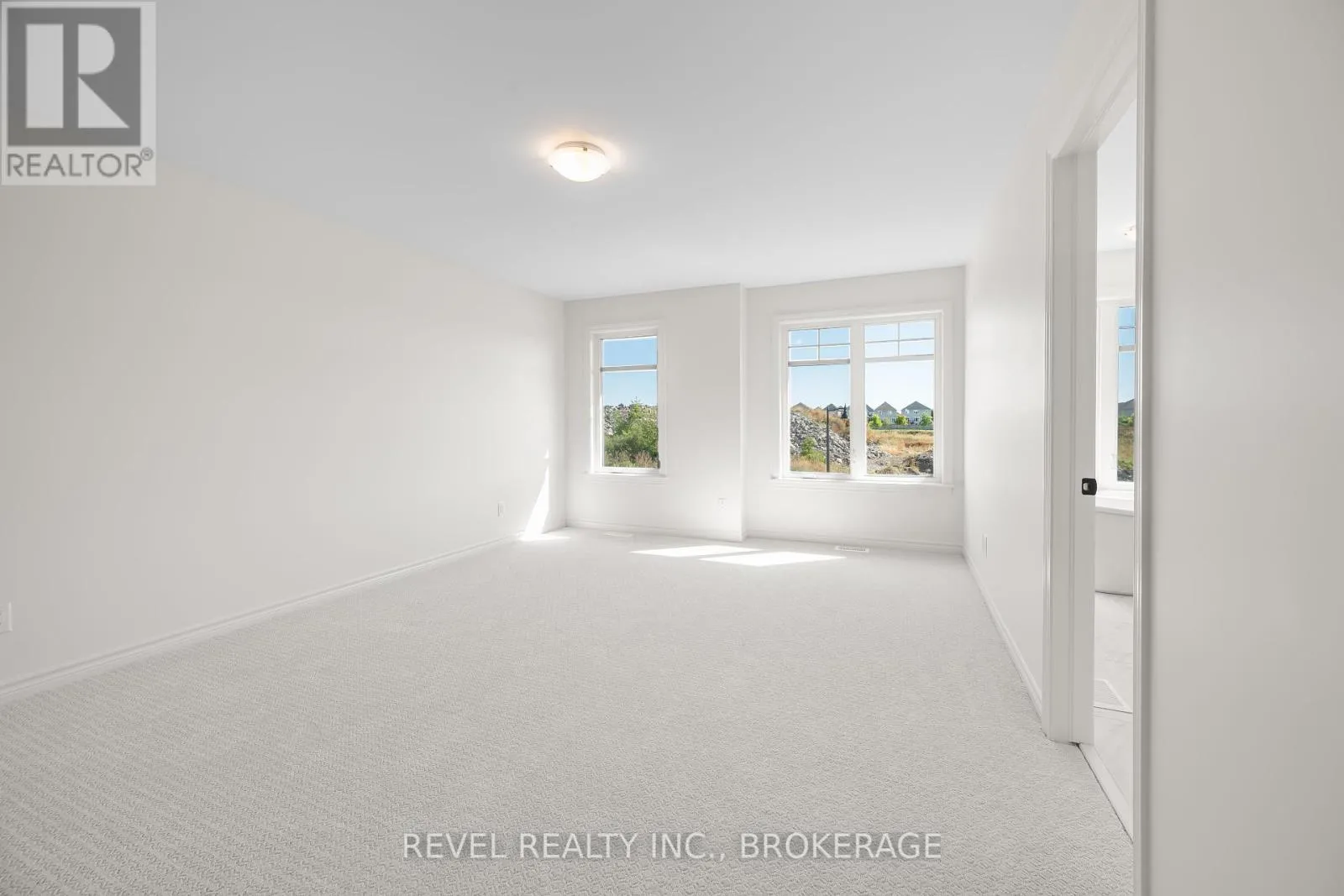 Cross Streets: Cataraqui Woods Drive and Woodhaven Drive. ** Directions: Cataraqui Woods Drive to Woodhaven drive to Buckthorn Drive. Here is "The Camden", a move-in ready end-unit lookout townhome offering 2,160 sq ft of finished living space in Kingstons northwest Woodhaven community. The main floor features maple hardwood, quartz countertops throughout, a bright kitchen with white shaker cabinetry, upgraded sink, and walk-in pantry, plus a cozy gas fireplace. The primary suite showcases a spa-like 4-piece ensuite with a freestanding tub and walk-in tile/glass shower. The finished lookout basement, complete with a bathroom rough-in, provides versatile additional living space. This ENERGY STAR certified home is designed for comfort, style, and efficiency. (id:27476)