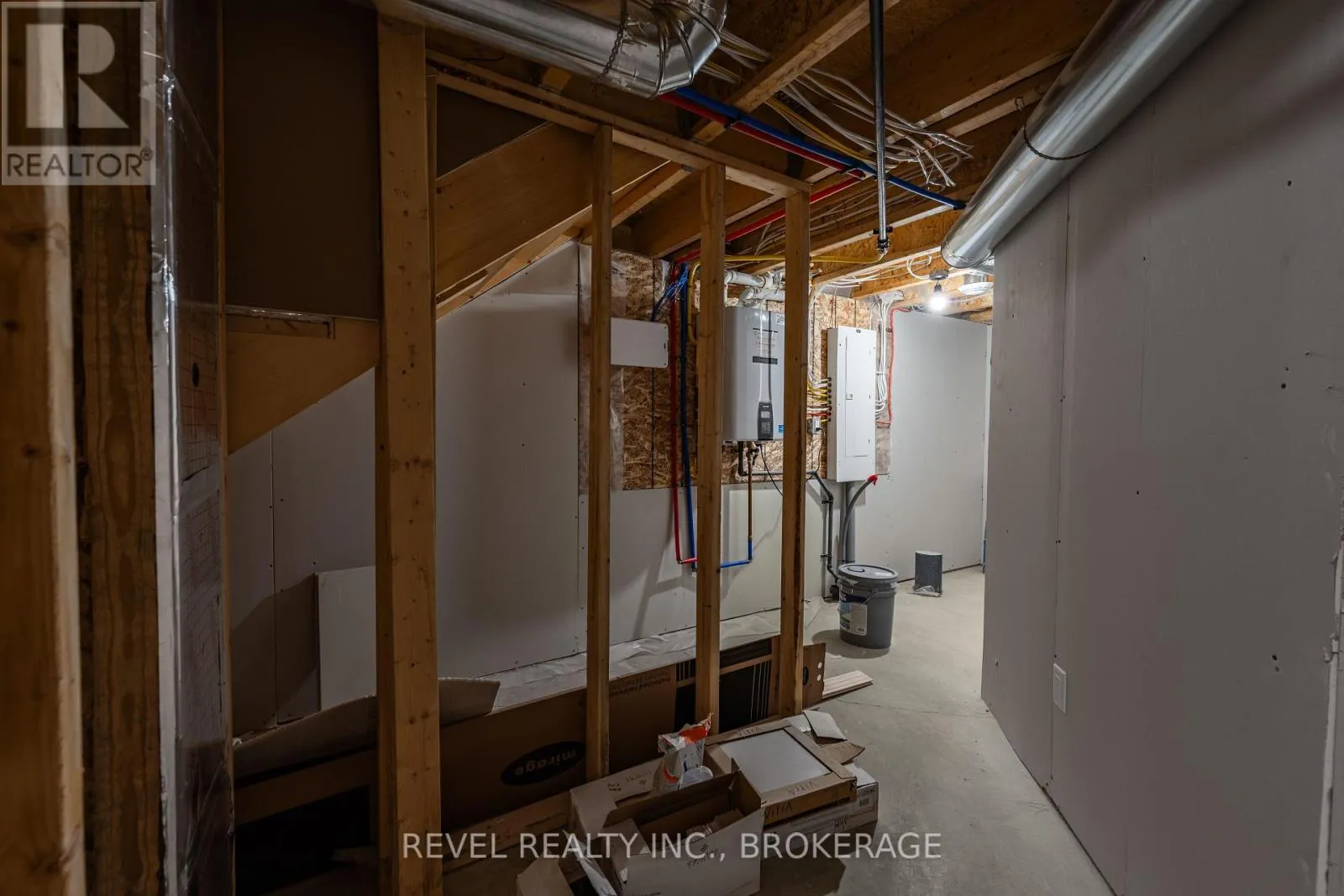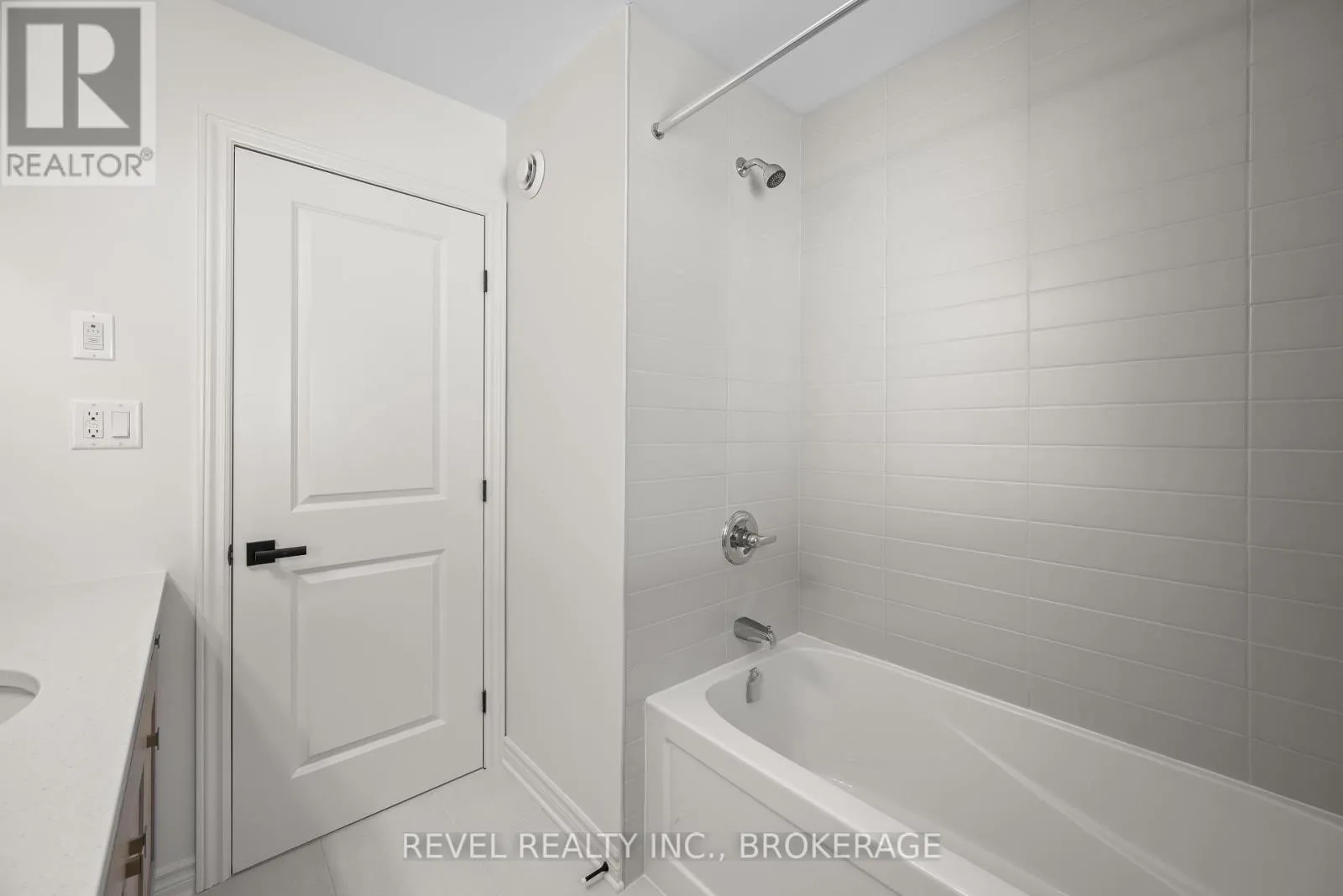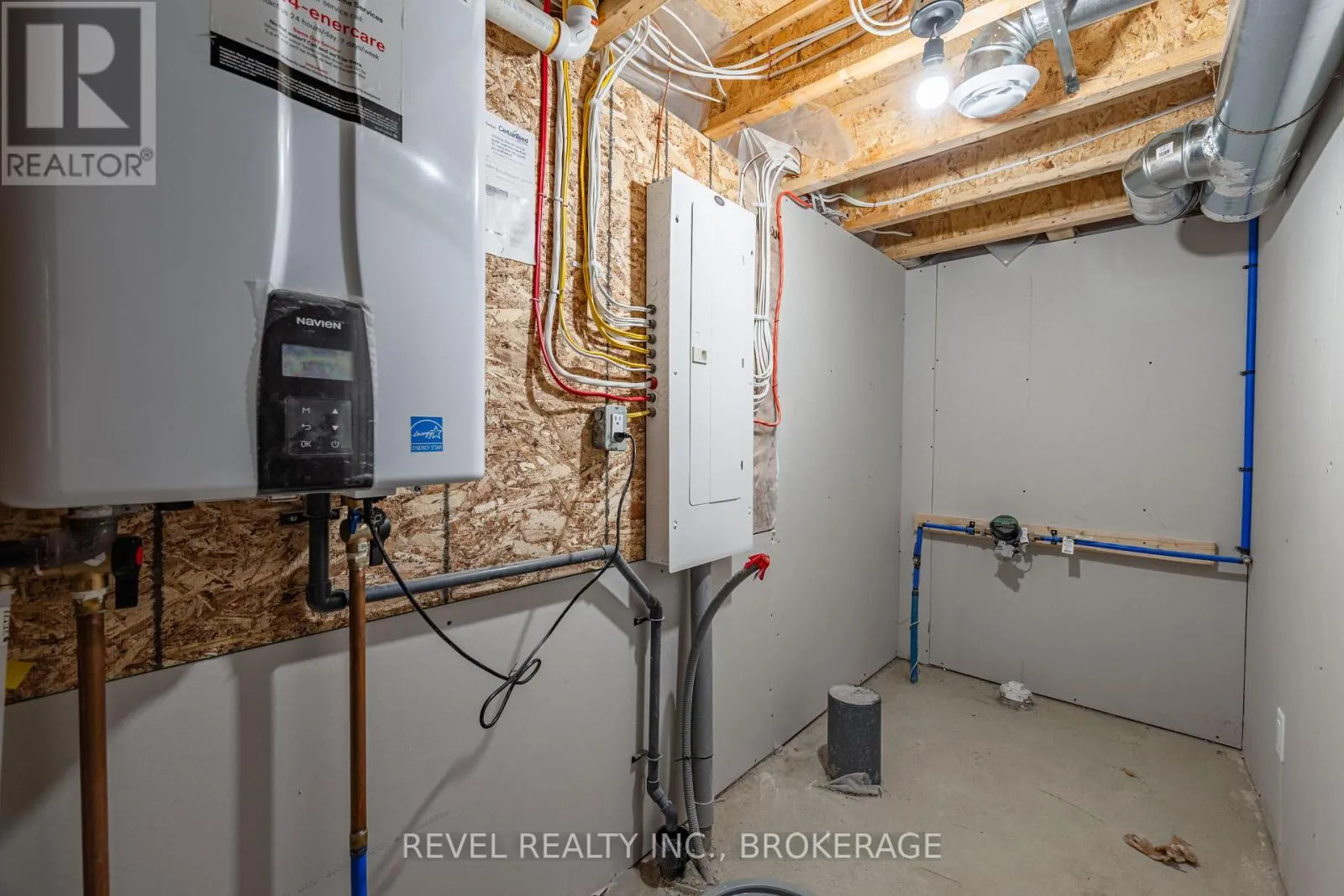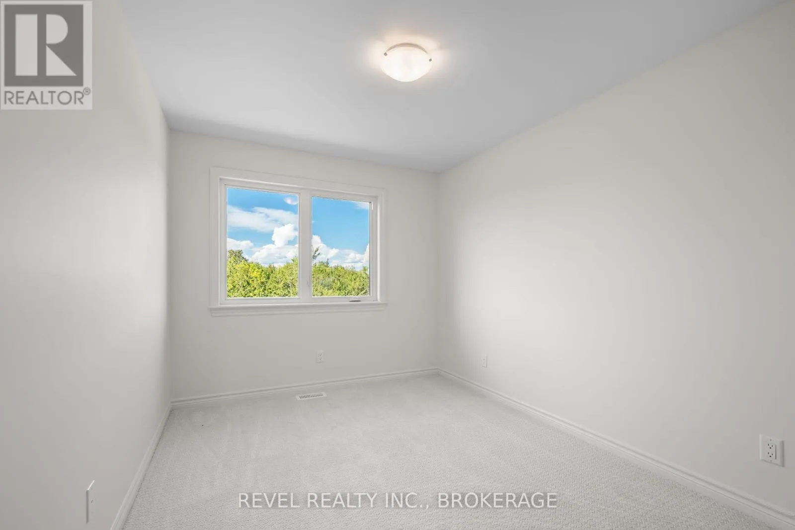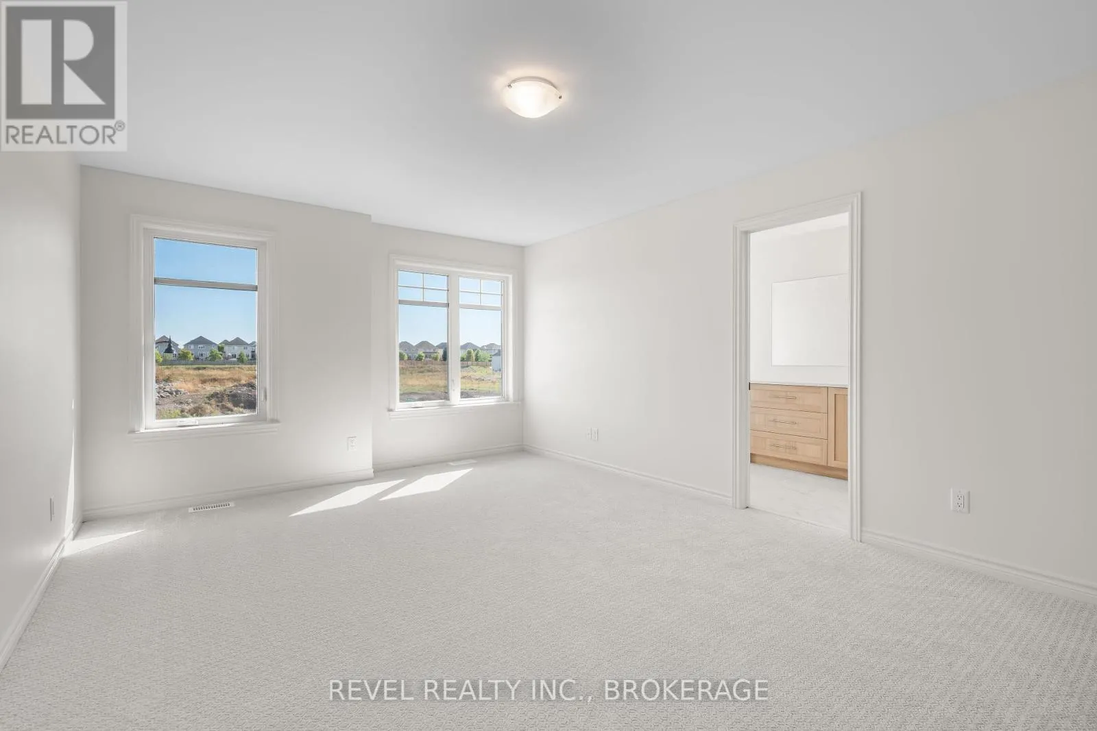 Cross Streets: Cataraqui Woods Drive and Woodhaven Drive. ** Directions: Cataraqui Woods Drive to Woodhaven drive to Buckthorn Drive. Here is "The Camden", a move-in ready end-unit lookout townhome offering 2,160 sq ft of finished living space in Kingstons northwest Woodhaven community. The main floor features maple hardwood, quartz countertops throughout, a bright kitchen with white shaker cabinetry, upgraded sink, and walk-in pantry, plus a cozy gas fireplace. The primary suite showcases a spa-like 4-piece ensuite with a freestanding tub and walk-in tile/glass shower. The finished lookout basement, complete with a bathroom rough-in, provides versatile additional living space. This ENERGY STAR certified home is designed for comfort, style, and efficiency. (id:27476)