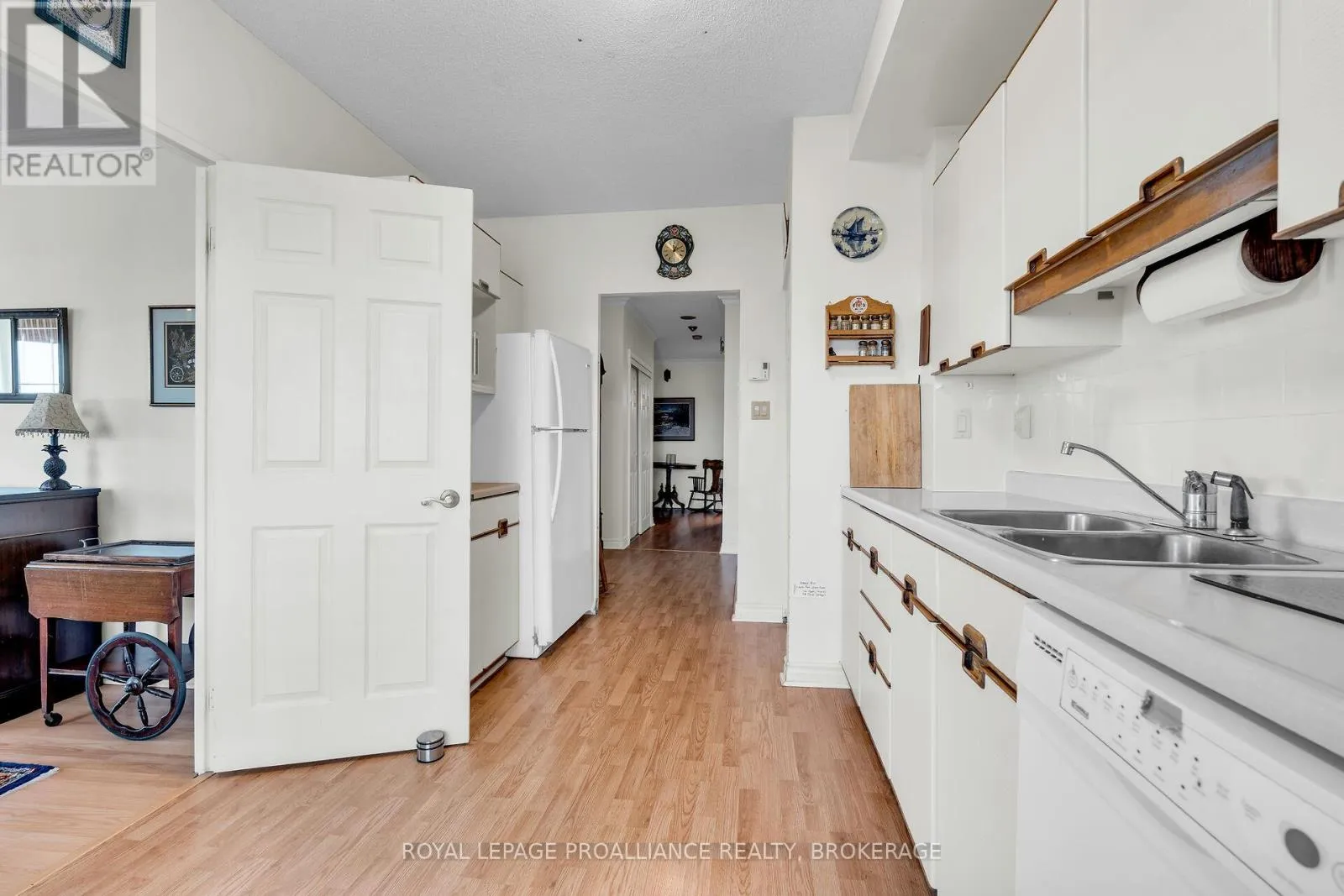 Cross Streets: Portsmouth Ave. & King St. ** Directions: Portsmouth Avenue or Days Road to King Street. Welcome to #1201-1000 King Street West, a fabulous 12th - floor corner unit offering expansive, unobstructed views of the Cataraqui Golf Course, Lake Ontario, and beyond. Situated on the sought-after Northwest side of this prestigious high - rise, this bright and spacious two-bedroom, two-bathroom condo is full of potential and ready for your personal touches. The thoughtfully designed layout features a generous kitchen that opens onto the main living space, where you will find dual balconies - facing both west and north - perfect for enjoying sunsets and the serene landscape. Featuring in suite laundry and separate dining room - this unit provides a welcoming sense of space, natural light, and privacy. Located in the desirable Fairway Hills neighbourhood, just steps from historic Portsmouth Village, this well-maintained 94-unit building combines executive and luxury features with the charm of Kingston's scenic surroundings. Youll enjoy easy access to downtown Kingston, local shops, parks, hospitals, and waterfront trails - all while being connected via public transit right outside your door. Building amenities include Secure underground parking with a car wash bay, Ample visitor parking, Indoor pool, Jacuzzi, Sauna, fully equipped Fitness Centre, tennis/pickle ball court, Games room, Library, and Garden Centre, beautifully landscaped outdoor gardens with streams and sitting areas, Guest suite, common room with kitchen, and lovely patios for social gatherings. With a welcoming community atmosphere and a wide variety of resident activities and gatherings, this property offers the perfect blend of urban convenience and natural beauty. Don't miss the opportunity to make this exceptional condo your own. (id:27476)