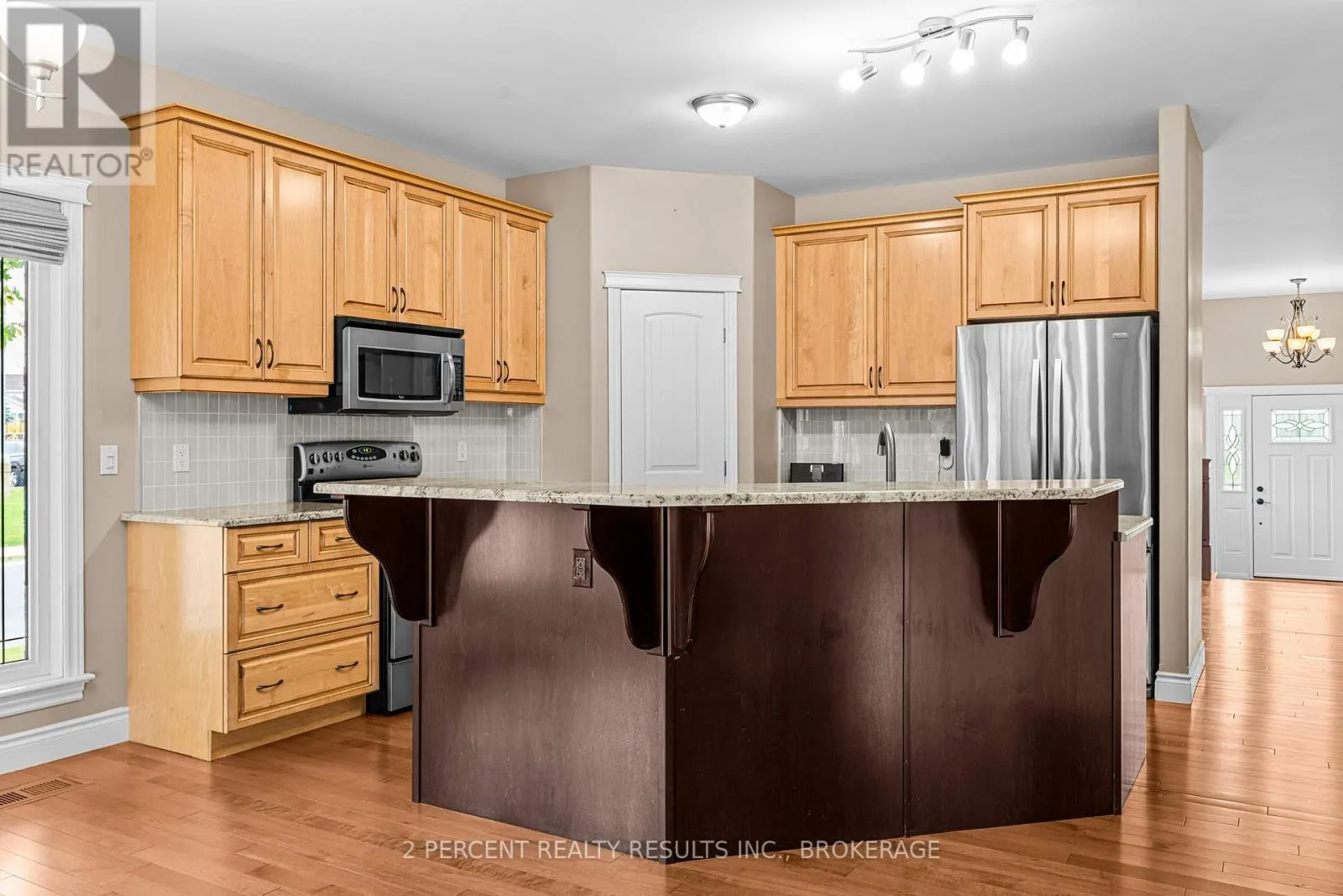 Hwy 15/Rose Abbey Dr Move in ready, this brick and stone exterior, corner lot home is ready for new owners! This 2010 custom-built east end home offers over 2,700 sq. ft. of beautifully finished, carpet-free living space and leaves nothing to be desired. Double garage, hardwood floors, ample storage throughout, and four spacious bedrooms - everything you could want! On the main floor you'll find the master bedroom and another well-sized room. Don't miss the master ensuite bathroom with a separate shower and bathtub. The heart of the home is the open-concept kitchen, dining, and family room featuring sleek granite countertops, a fireplace, and a built-in TV nook - perfect for entertaining or relaxing after a long day. At the front of the home, a sunlit living room offers the perfect spot to relax, read, or entertain. The fully finished basement features large windows and houses an enormous recreation room and 2 more spacious bedrooms, one with a cheater ensuite bathroom and large walk-in closet. Step outside to your beautifully landscaped property, with an interlocking brick pathway to the fully fenced backyard. The 3 season sunroom is the perfect place to enjoy your morning coffee! Other highlights include tankless hot water, central vacuum, main floor laundry, and much more! Just steps from Ãcole Maple Elementary School (French & English), St. Martha Catholic School, and Molly McGlynn Park! This home is situated in a prime location close to other east end amenities such as the Riverview Shopping Centre, CFB Kingston, the 3rd Crossing, and Highway 401. Welcome home! Book your private showing today! (id:27476)