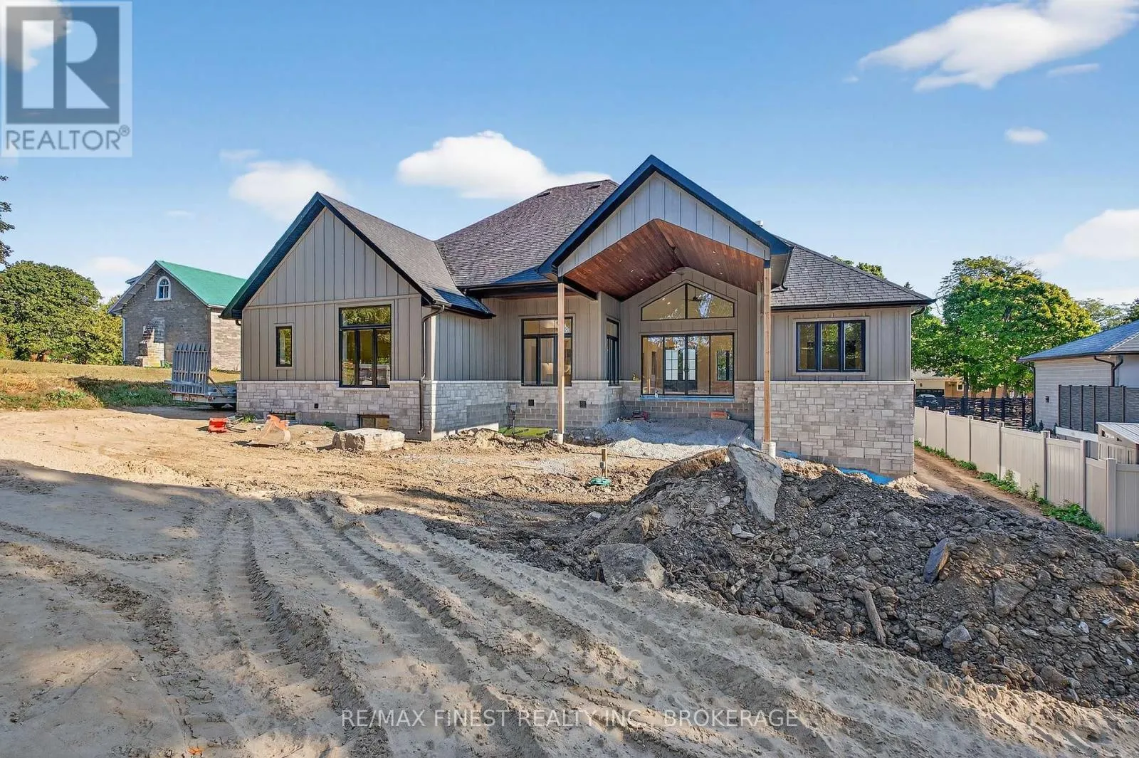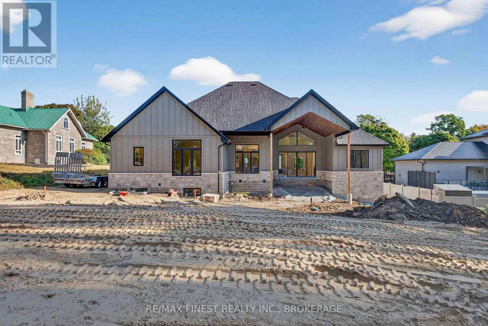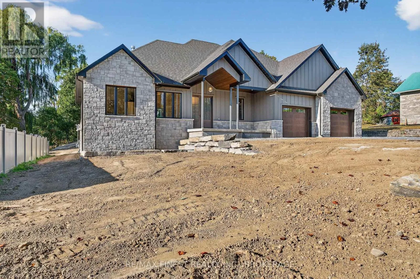 Cross Streets: Bath Rd. ** Directions: Bath Rd to Maple Ridge Dr. Quality built - Brand new custom bungalow infill project between Collins Bay and Amherstview, municipally in the City of Kingston with a country feel just minutes from town. Finishing touches being completed -Oct/Nov 2025 Occupancy. Just in from the entrance to the mature and sought-after Elmwood subdivision, this 100'x 254' well-treed lot boasts 2352 square feet main floor above grade finished space plus 1800 square feet finished basement for a total of 4000+ square feet on two levels. With modern high-end finishes throughout and a well designed 3+2 bedrooms, main floor office, and 3+1 bathrooms. Main floor laundry including cheater door to primary walk-in closet. The home is set back and staggered off the neighbour's recent new build for privacy and to provide a water view of Lake Ontario. Just a few key features: open concept floor plan with in floor radiant zoned heating on all floors both levels - engineered hardwood throughout main areas, tile in wet areas. Mennonite kitchen cabinets and quartz countertops. Upgraded all wood trim pack. Wood frame R37 wall system, 9ft ICF basement, R60 ceiling insulation, 12ft ceiling on main floor living, dining, and kitchen. Forced air furnace, AC, and HRV. Stone, brick, and hardie board exterior with a covered deck at the rear. Sod front yard with landscaped retaining wall and gardens. The home is serviced by a 200amp electrical, natural gas, municipal water, and eco-flow septic system. We look forward to welcoming you to your new home! (id:27476)