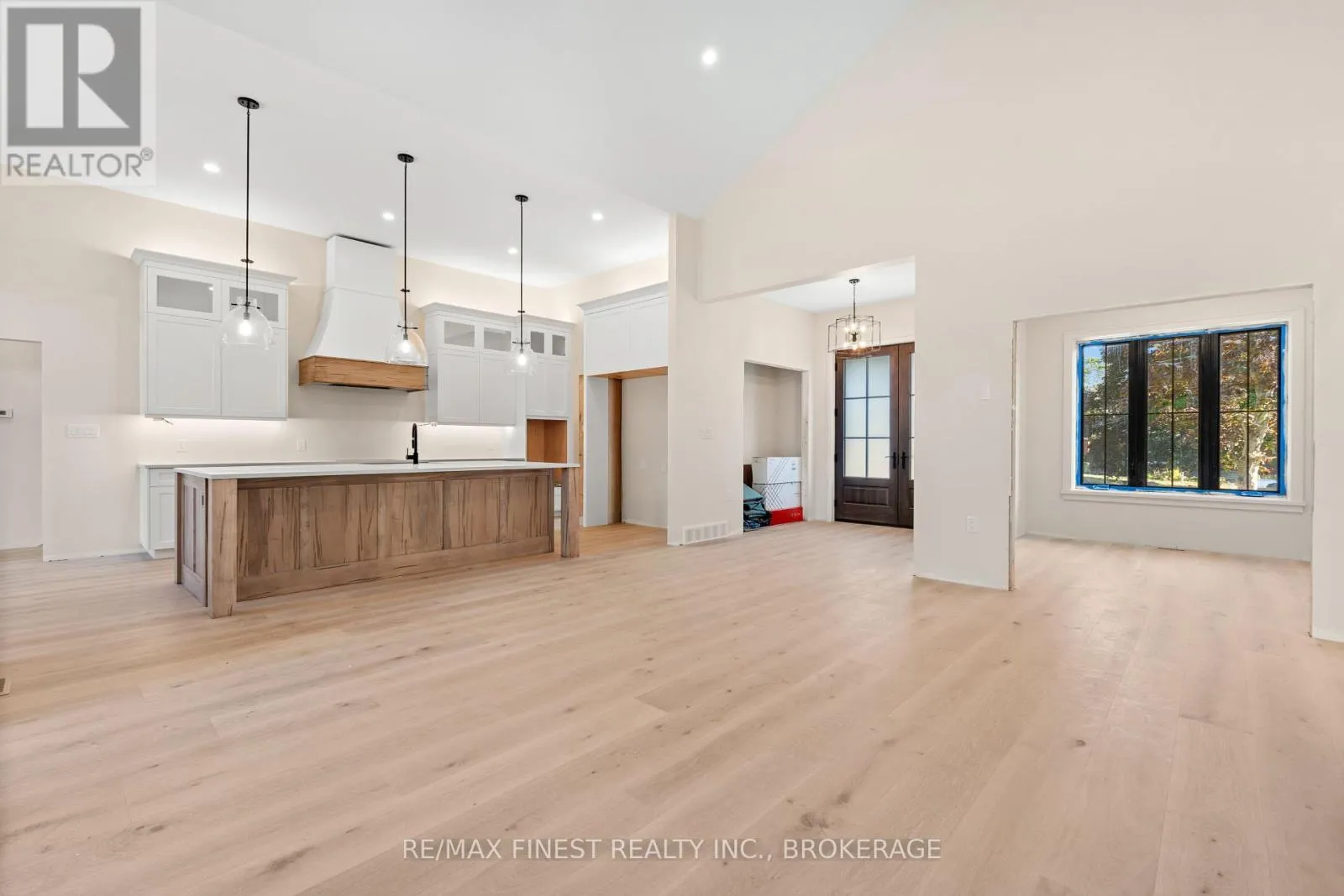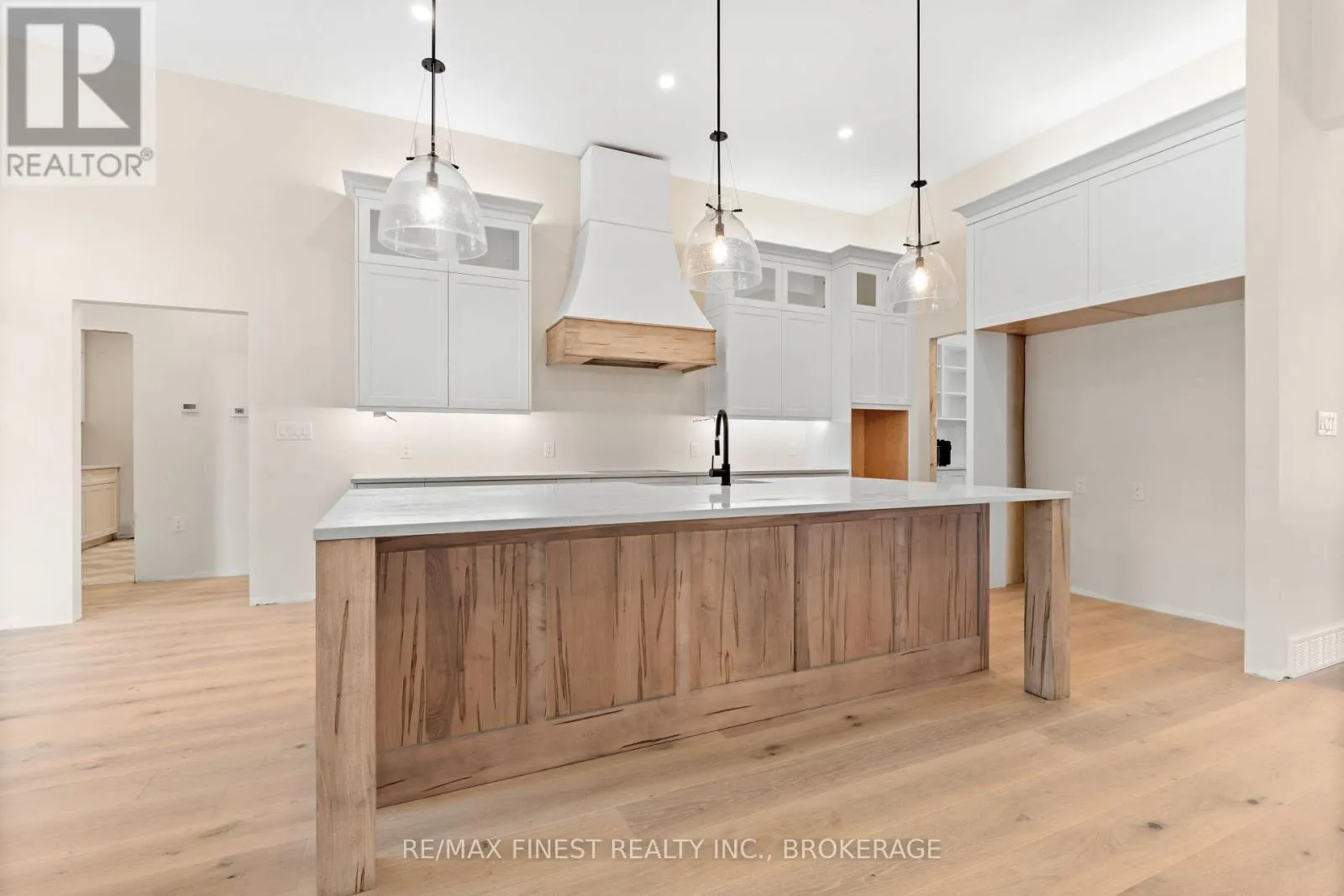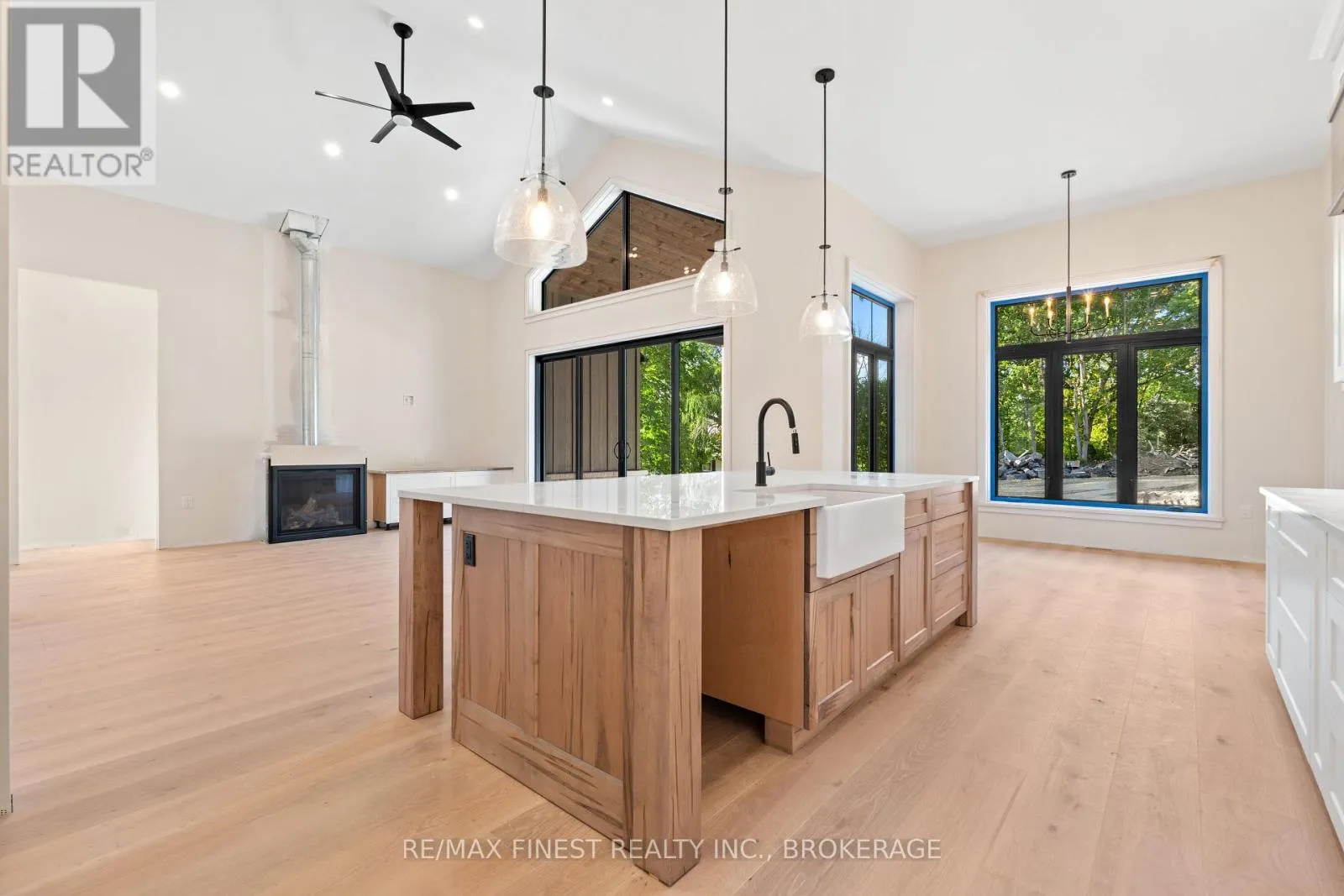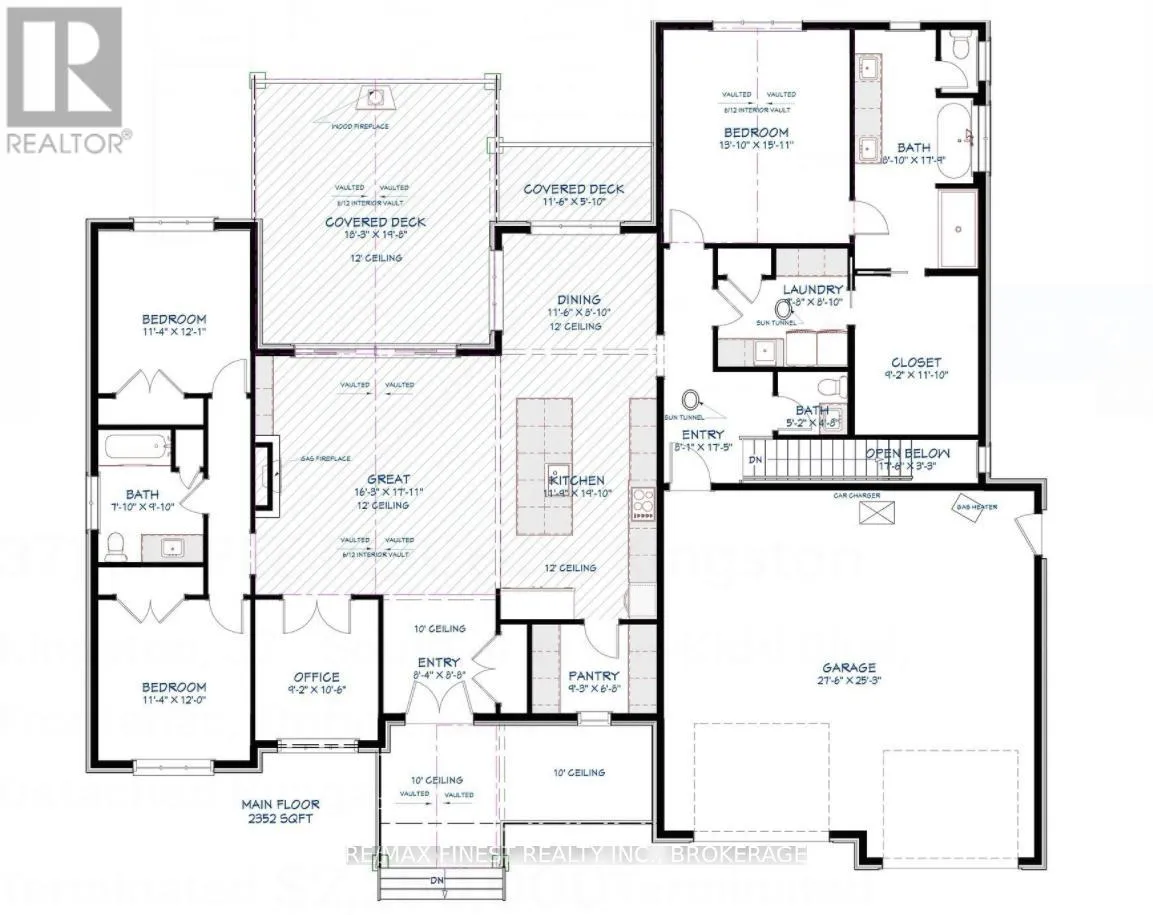 Cross Streets: Bath Rd. ** Directions: Bath Rd to Maple Ridge Dr. Quality built - Brand new custom bungalow infill project between Collins Bay and Amherstview, municipally in the City of Kingston with a country feel just minutes from town. Finishing touches being completed -Oct/Nov 2025 Occupancy. Just in from the entrance to the mature and sought-after Elmwood subdivision, this 100'x 254' well-treed lot boasts 2352 square feet main floor above grade finished space plus 1800 square feet finished basement for a total of 4000+ square feet on two levels. With modern high-end finishes throughout and a well designed 3+2 bedrooms, main floor office, and 3+1 bathrooms. Main floor laundry including cheater door to primary walk-in closet. The home is set back and staggered off the neighbour's recent new build for privacy and to provide a water view of Lake Ontario. Just a few key features: open concept floor plan with in floor radiant zoned heating on all floors both levels - engineered hardwood throughout main areas, tile in wet areas. Mennonite kitchen cabinets and quartz countertops. Upgraded all wood trim pack. Wood frame R37 wall system, 9ft ICF basement, R60 ceiling insulation, 12ft ceiling on main floor living, dining, and kitchen. Forced air furnace, AC, and HRV. Stone, brick, and hardie board exterior with a covered deck at the rear. Sod front yard with landscaped retaining wall and gardens. The home is serviced by a 200amp electrical, natural gas, municipal water, and eco-flow septic system. We look forward to welcoming you to your new home! (id:27476)