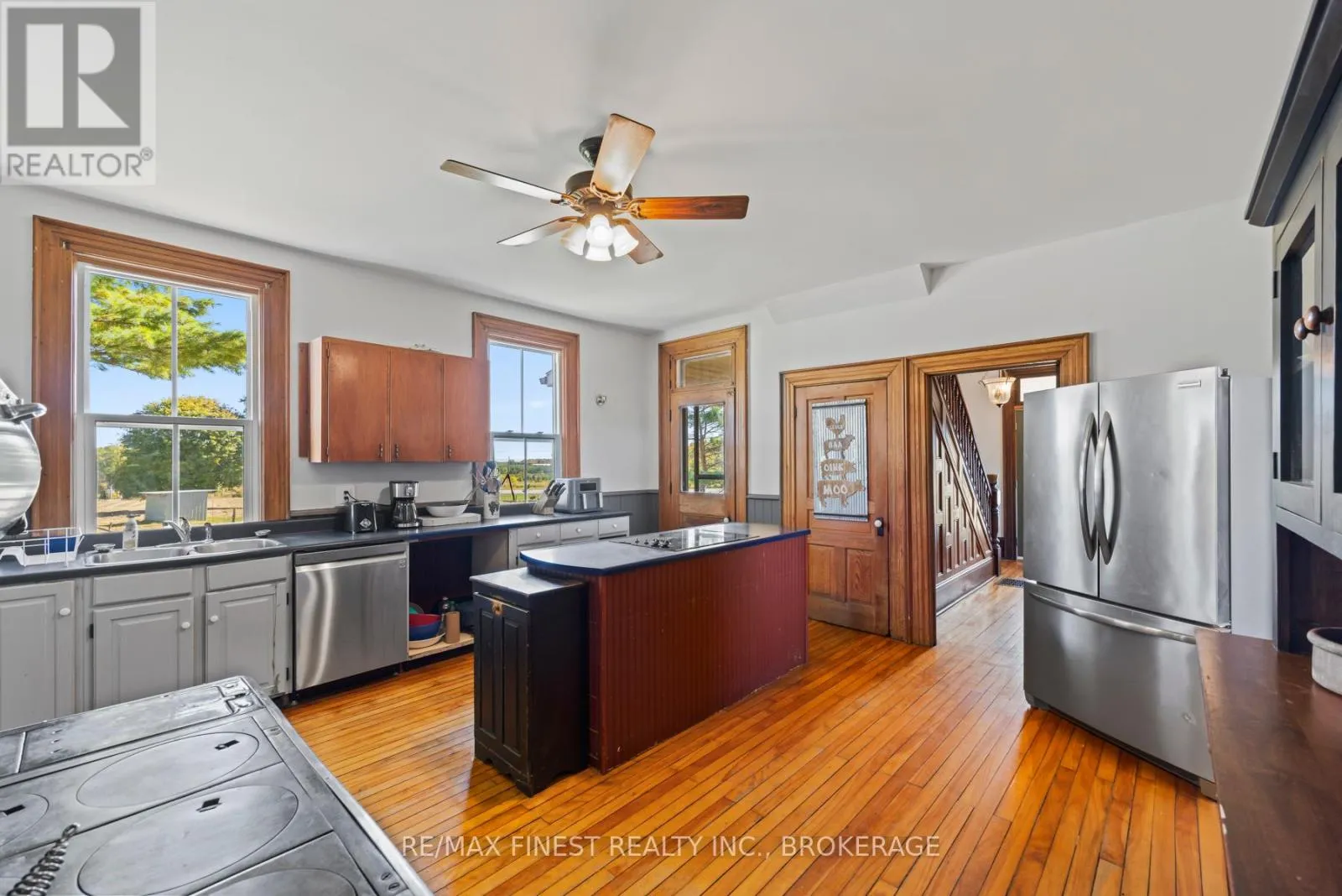 Cross Streets: Hwy 15 and Burnt Hills Rd. ** Directions: Corner of Hwy 15 and Burnt Hills Rd. Driveway Entrances on Hwy 15 and Burnt Hills Rd. Picturesquely set on over 4 acres and only 15 minutes from Kingston, this timeless 2-storey brick home perfectly blends elegance with country charm. Step inside to find a true country kitchen, with abundant pantry space, modern appliances, and an Elmira cook stove, exuding functionality and inviting vibes. Warm hardwood floors flowing through much of the main level, featuring a spacious living room, a sunroom complete with vaulted ceilings, a convenient laundry room with storage, and a full 3-piece bath. Upstairs, hardwood continues into four cozy bedrooms and a 4-piece bath. A spacious attic provides endless potential whether you envision a studio, playroom, or home gym, your dream space awaits. The unfinished basement offers even more room for your future projects. Updates include extensive spray foam throughout the home. Outside, the wrap-around porch is the perfect spot for morning coffee, overlooking the sweeping green landscape. Outbuildings grace the property, ready for your personal touch to complete the country lifestyle. (id:27476)