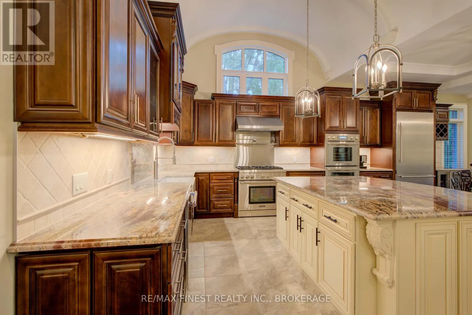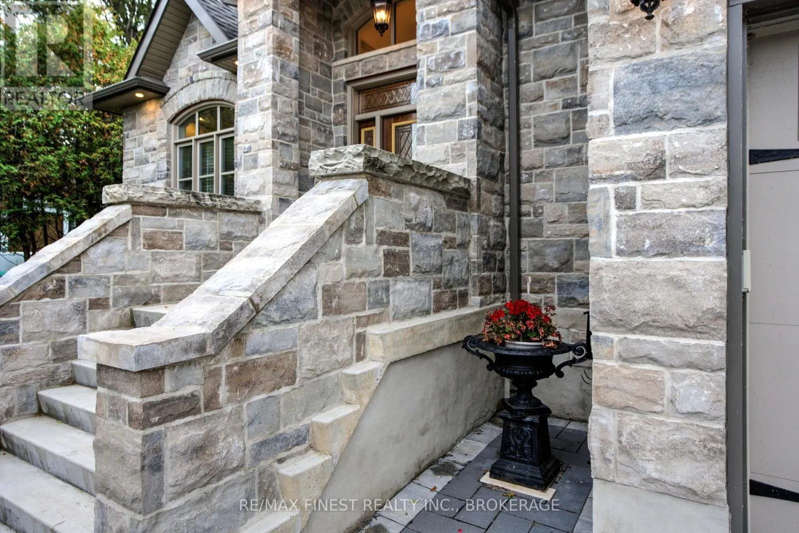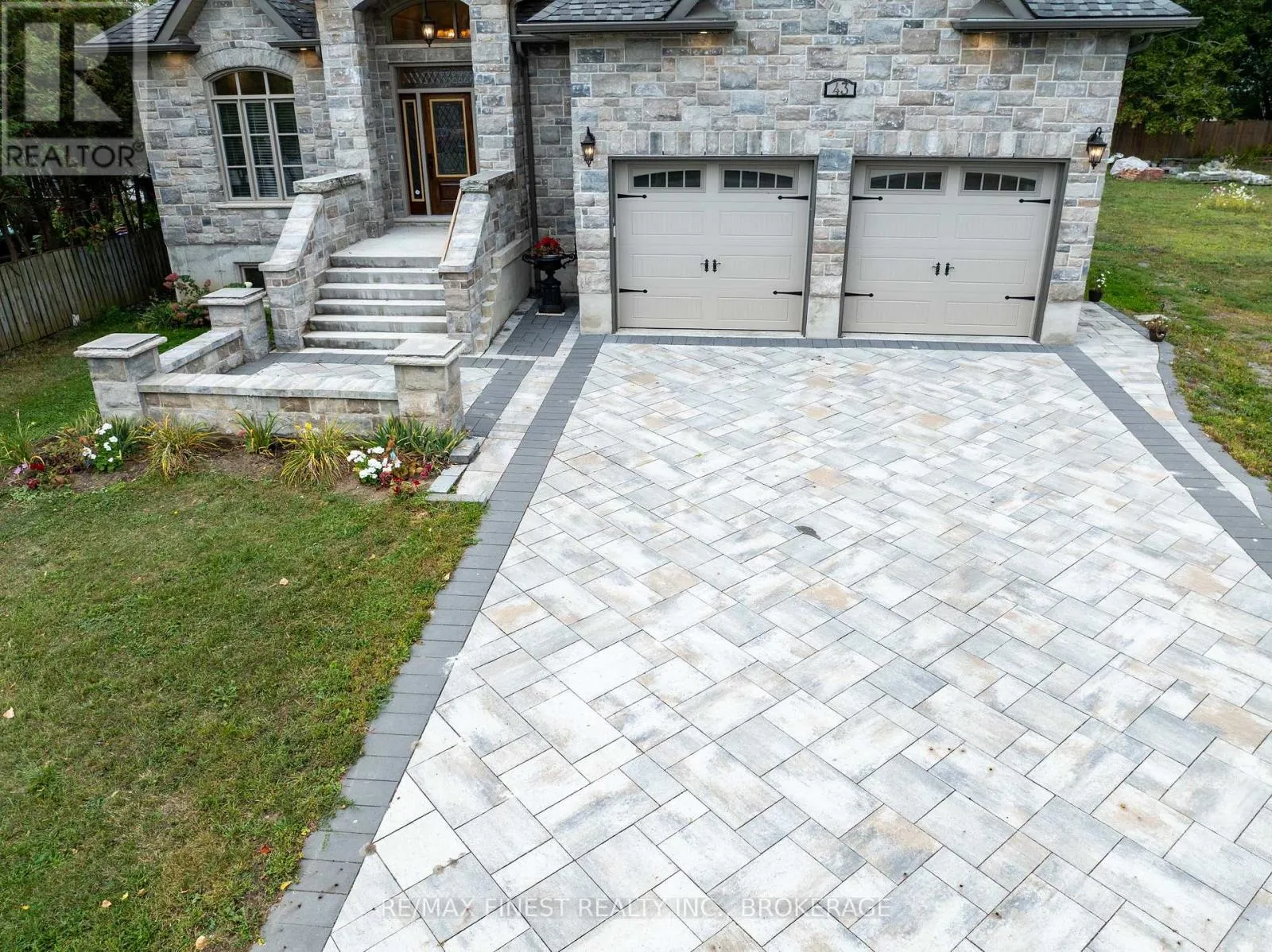 Cross Streets: Front Road. ** Directions: Front Road, south on Crerar Blvd. One-of-a-kind stone and brick 4 bedroom bungalow in the ideal neighborhood of Reddendale with views of Crear Park and Lake Ontario. Walking distance to Sinclair Public School, plaza, bus stop, recreation center, and many other amenities. Foyer with Barrell ceiling, stone flooring and hardwood. Formal dining room with hardwood flooring, coffered ceiling and other special treatments. To die for maple kitchen with center island, Granite countertops, Thermador 36" fridge, Dual gas stove (electric and gas), Dual oven (steam and electric) range hood, Wine fridge. Main floor family room with gas fireplace, with hand laid hardwood flooring done in a Herringbone effect, coffered ceiling with pot lights. Master bedroom with double door entry, hardwood floors, curved rear wall, coffered ceiling with pot lights, walk in closet with center island and custom cabinets. Ensite bath featuring double vanity, maple cabinets with stone top, 7 foot shower with glass shower doors, private separate toilet area. Curved staircase leading 27"x25" finished recreation room with hardwood flooring, electric fireplace, coffered ceiling with pot lights, excellent window layout. Office/Den with curved wall, solid brick accent wall, oak flooring, double frosted door entry, pot lights and unique closet area. Two more oversized bedrooms with oak flooring cove moldings. Lower bath with heated floors, custom ceramic work, granite countertop. soaker tub.21x21 furnace/storage room. General extras include 200 amp service, two stage high efficiency gas furnace, owned HWT, air exchanger. Over 4800sq ft of over the top quality. Please view and enjoy the photo layout, video and supplement document to truly appreciate this incredible bungalow. (id:27476)