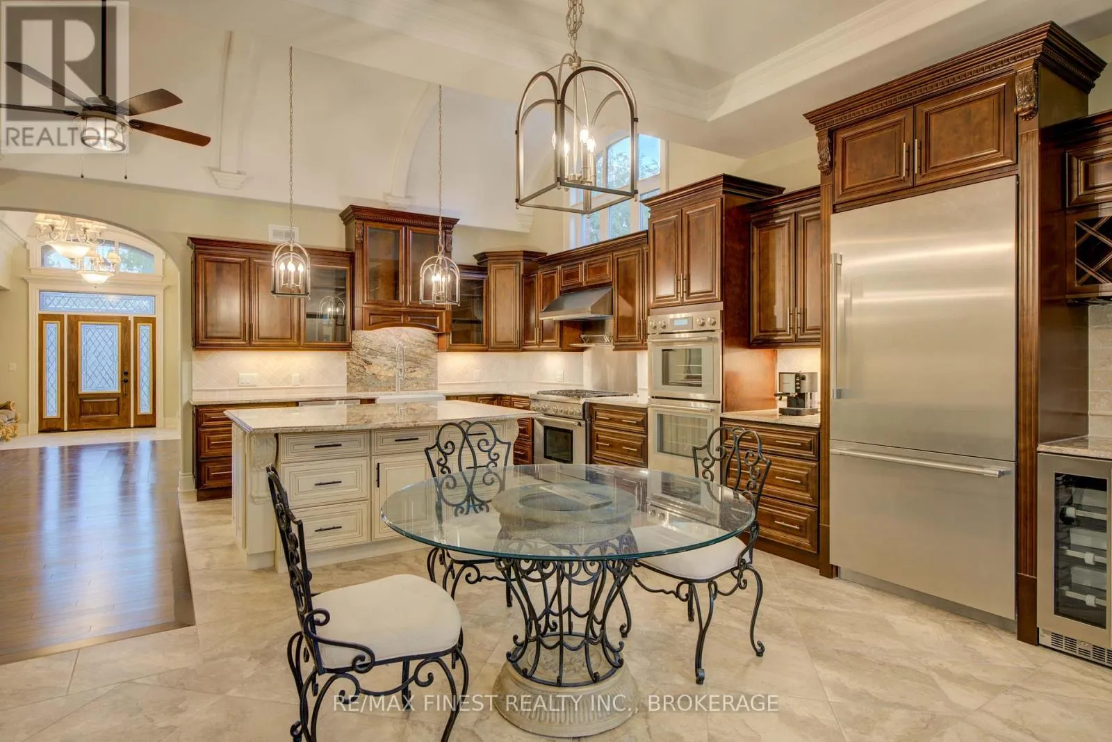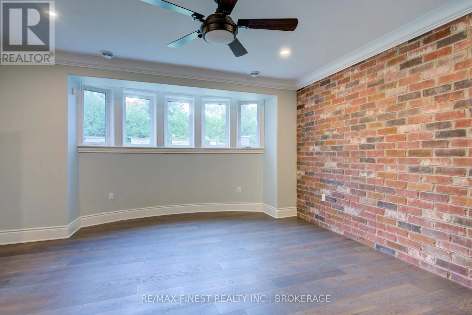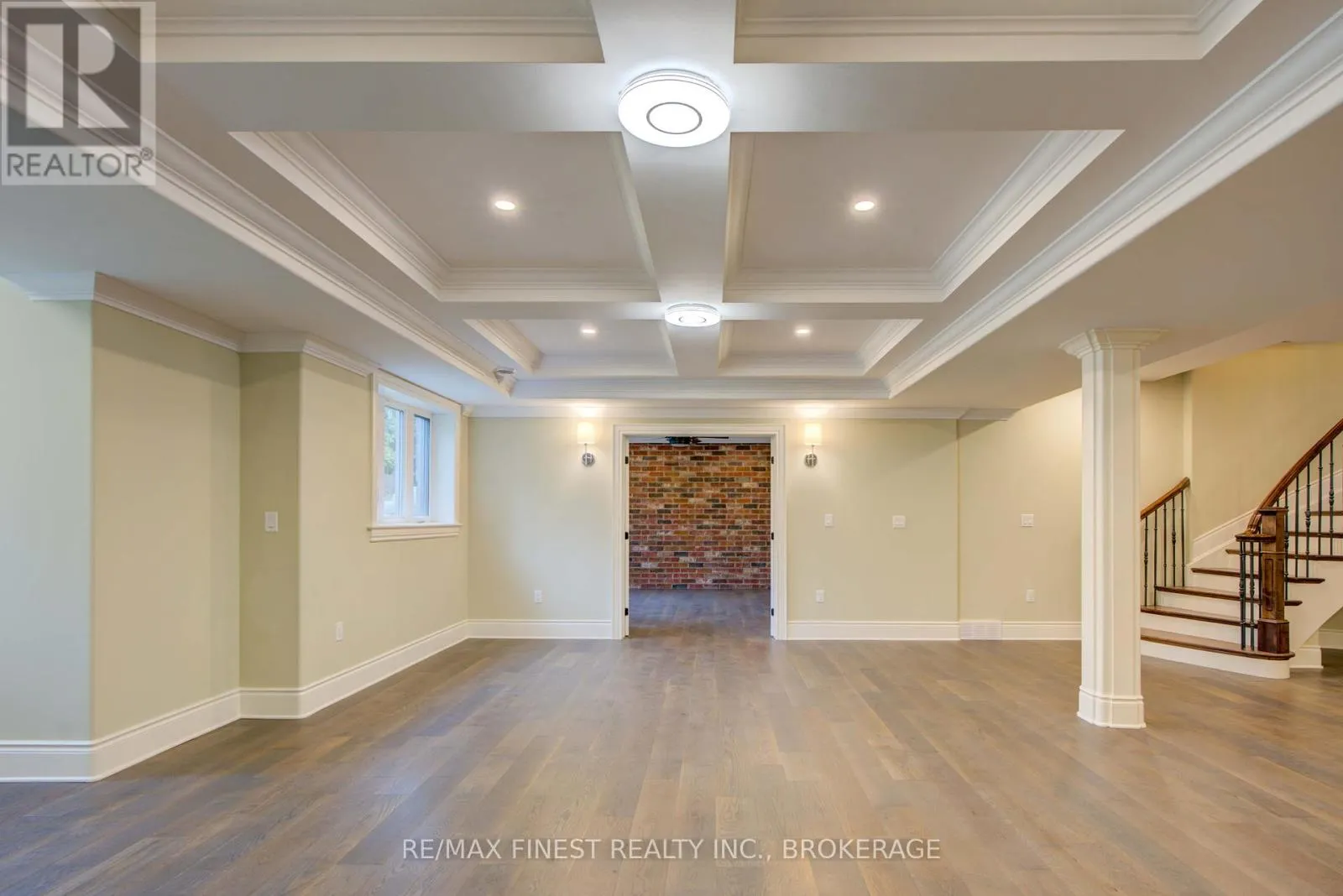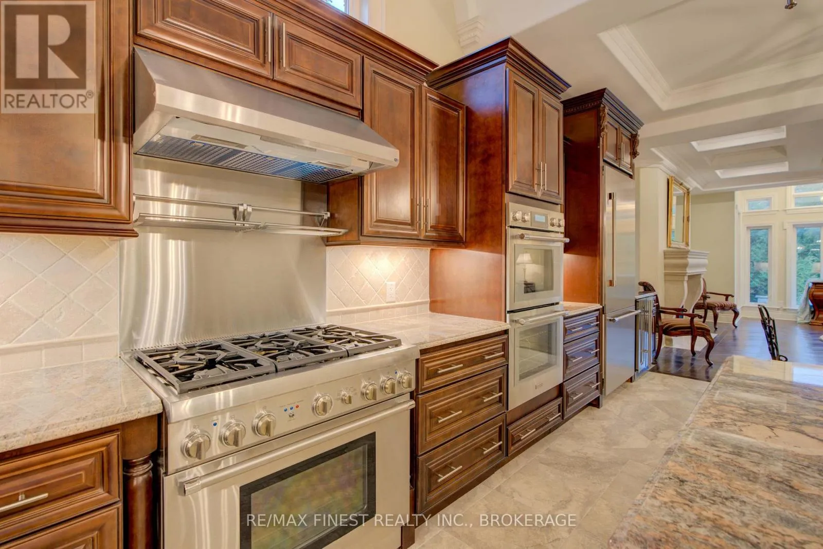 Cross Streets: Front Road. ** Directions: Front Road, south on Crerar Blvd. One-of-a-kind stone and brick 4 bedroom bungalow in the ideal neighborhood of Reddendale with views of Crear Park and Lake Ontario. Walking distance to Sinclair Public School, plaza, bus stop, recreation center, and many other amenities. Foyer with Barrell ceiling, stone flooring and hardwood. Formal dining room with hardwood flooring, coffered ceiling and other special treatments. To die for maple kitchen with center island, Granite countertops, Thermador 36" fridge, Dual gas stove (electric and gas), Dual oven (steam and electric) range hood, Wine fridge. Main floor family room with gas fireplace, with hand laid hardwood flooring done in a Herringbone effect, coffered ceiling with pot lights. Master bedroom with double door entry, hardwood floors, curved rear wall, coffered ceiling with pot lights, walk in closet with center island and custom cabinets. Ensite bath featuring double vanity, maple cabinets with stone top, 7 foot shower with glass shower doors, private separate toilet area. Curved staircase leading 27"x25" finished recreation room with hardwood flooring, electric fireplace, coffered ceiling with pot lights, excellent window layout. Office/Den with curved wall, solid brick accent wall, oak flooring, double frosted door entry, pot lights and unique closet area. Two more oversized bedrooms with oak flooring cove moldings. Lower bath with heated floors, custom ceramic work, granite countertop. soaker tub.21x21 furnace/storage room. General extras include 200 amp service, two stage high efficiency gas furnace, owned HWT, air exchanger. Over 4800sq ft of over the top quality. Please view and enjoy the photo layout, video and supplement document to truly appreciate this incredible bungalow. (id:27476)