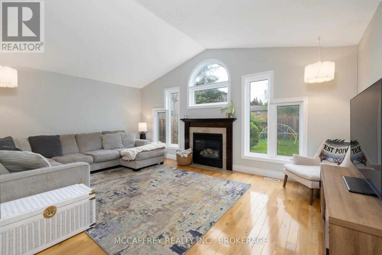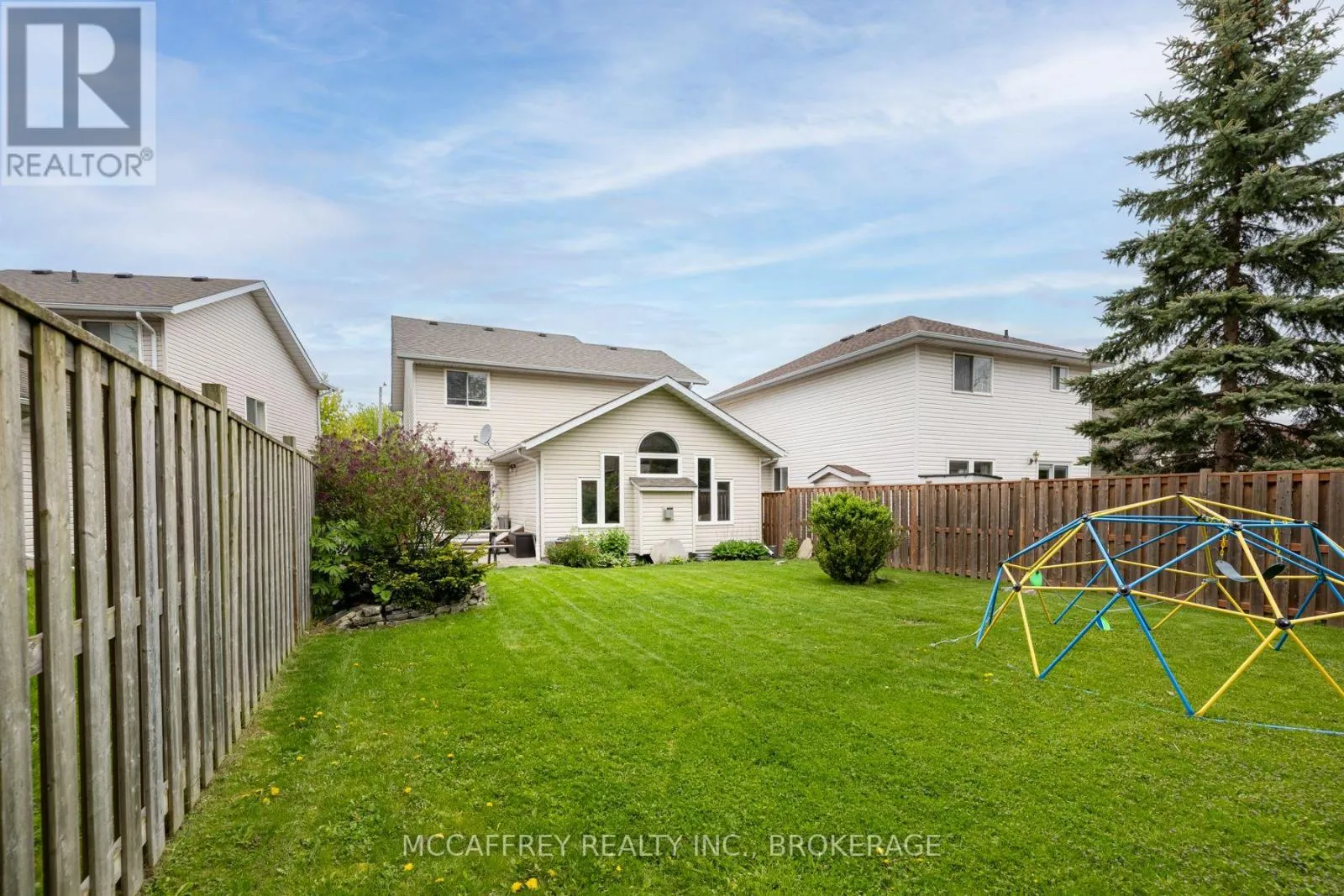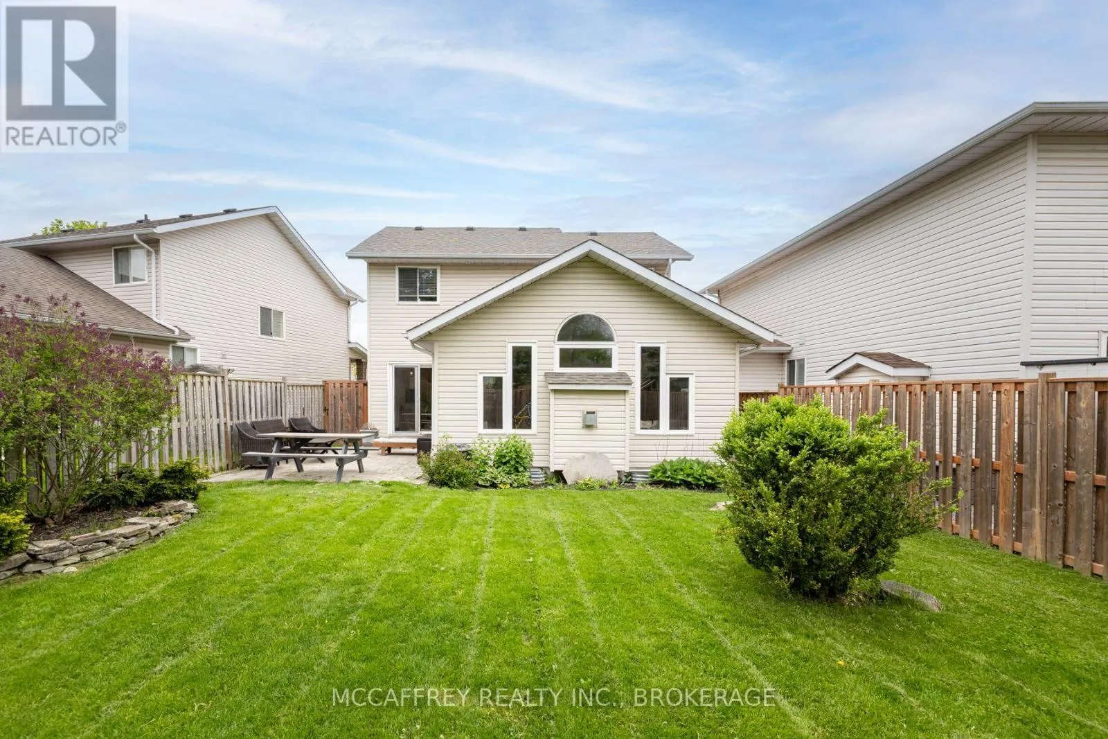 Cross Streets: Schooner and Biscayne. ** Directions: HWY 15 to Biscayne st, left onto Schooner Dr, house is on the left. Welcome to 81 Schooner Drive, a well appointed three-bedroom, two storey home sitting on a fully fenced lot with a beautiful backyard in Kingston's vibrant River's Edge, steps away from the Cataraqui River. This family home offers hardwood, tile and cozy gas fireplace on the main level. Beautiful galley kitchen with granite countertops and pantry updated in 2017. Patio doors off the breakfast nook lead to a stone patio and rear garden. On the second floor there are three bedrooms with a generously sized principle suite with dual closets featuring a 4 piece ensuite bath.There is a family space in the lower level and a spacious unfinished area which is where you will find the laundry, ample storage and a rough-in for another 3-piece bathroom and potential 4th bedroom. Furnace and air conditioning systems were replaced in 2020. Tastefully decorated with updated lighting throughout, this home is ready to welcome a new family. This is a great location with easy access to the 401, Waaban crossing, RMC, shops, schools, parks, walking trails and the downtown core. ** This is a linked property.** (id:27476)