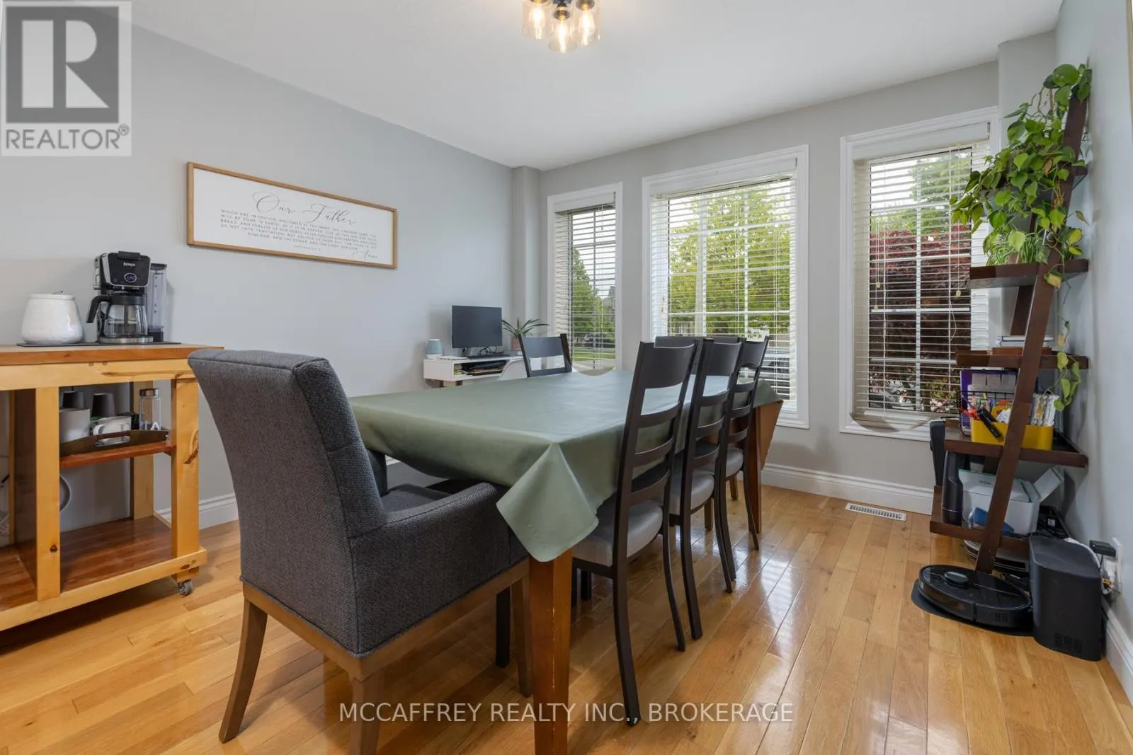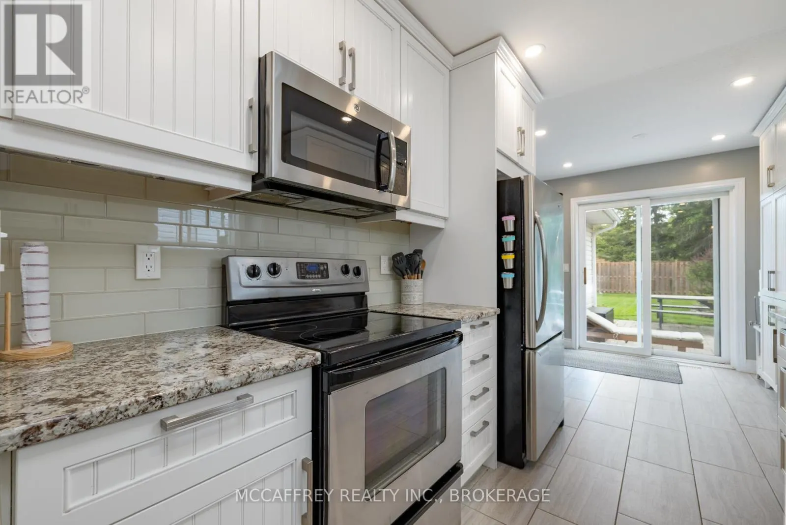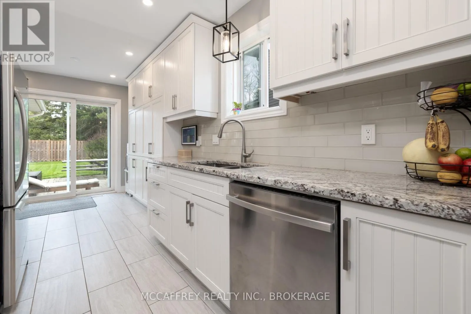 Cross Streets: Schooner and Biscayne. ** Directions: HWY 15 to Biscayne st, left onto Schooner Dr, house is on the left. Welcome to 81 Schooner Drive, a well appointed three-bedroom, two storey home sitting on a fully fenced lot with a beautiful backyard in Kingston's vibrant River's Edge, steps away from the Cataraqui River. This family home offers hardwood, tile and cozy gas fireplace on the main level. Beautiful galley kitchen with granite countertops and pantry updated in 2017. Patio doors off the breakfast nook lead to a stone patio and rear garden. On the second floor there are three bedrooms with a generously sized principle suite with dual closets featuring a 4 piece ensuite bath.There is a family space in the lower level and a spacious unfinished area which is where you will find the laundry, ample storage and a rough-in for another 3-piece bathroom and potential 4th bedroom. Furnace and air conditioning systems were replaced in 2020. Tastefully decorated with updated lighting throughout, this home is ready to welcome a new family. This is a great location with easy access to the 401, Waaban crossing, RMC, shops, schools, parks, walking trails and the downtown core. ** This is a linked property.** (id:27476)