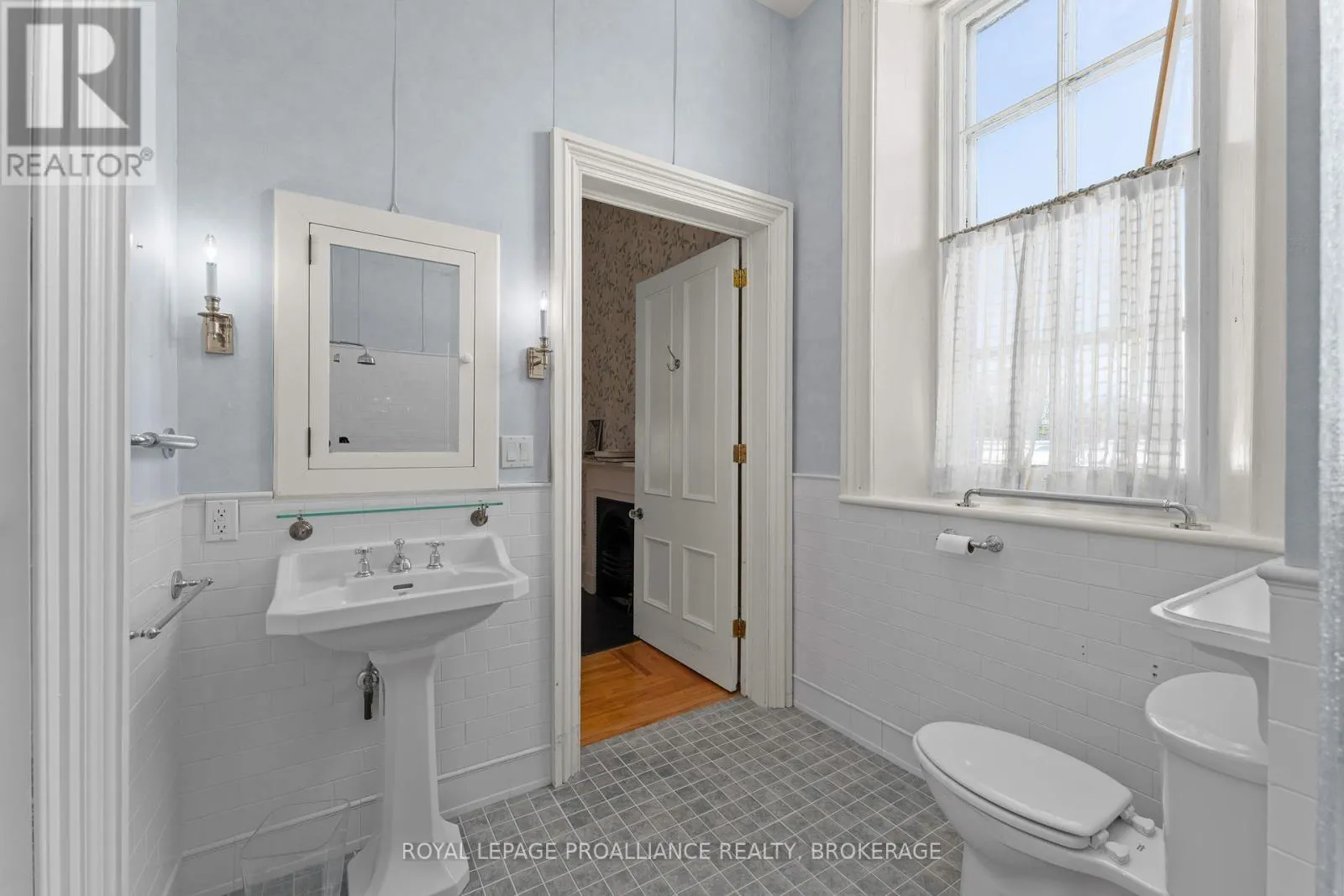 Cross Streets: King Street East. ** Directions: King Street East to Emily Street. A rare opportunity to own a distinguished historic residence just steps from the Kingston waterfront. This stately 3-storey limestone home blends timeless elegance with modern refinement. Grand principal rooms feature soaring ceilings, intricate crown mouldings, and a gracious flow ideal for both entertaining and everyday living. Directly across the street from Richardson Beach and McDonald Park, the property enjoys one of the city's most coveted waterfront locations offering immediate access to lakeside trails, swimming, and green space. The fully finished basement provides additional lifestyle space, while the professionally landscaped courtyard creates a serene outdoor retreat. A standout feature is the separate, beautifully appointed coach house complete with 3 bedrooms, 2 bathrooms, and premium finishes delivering exceptional income potential or luxurious guest accommodation. Two garage bays provide ample parking and storage. This is heritage charm reimagined for contemporary living - enjoying sweeping views of Lake Ontario and just steps from downtown Kingston's vibrant shops and dining. (id:27476)