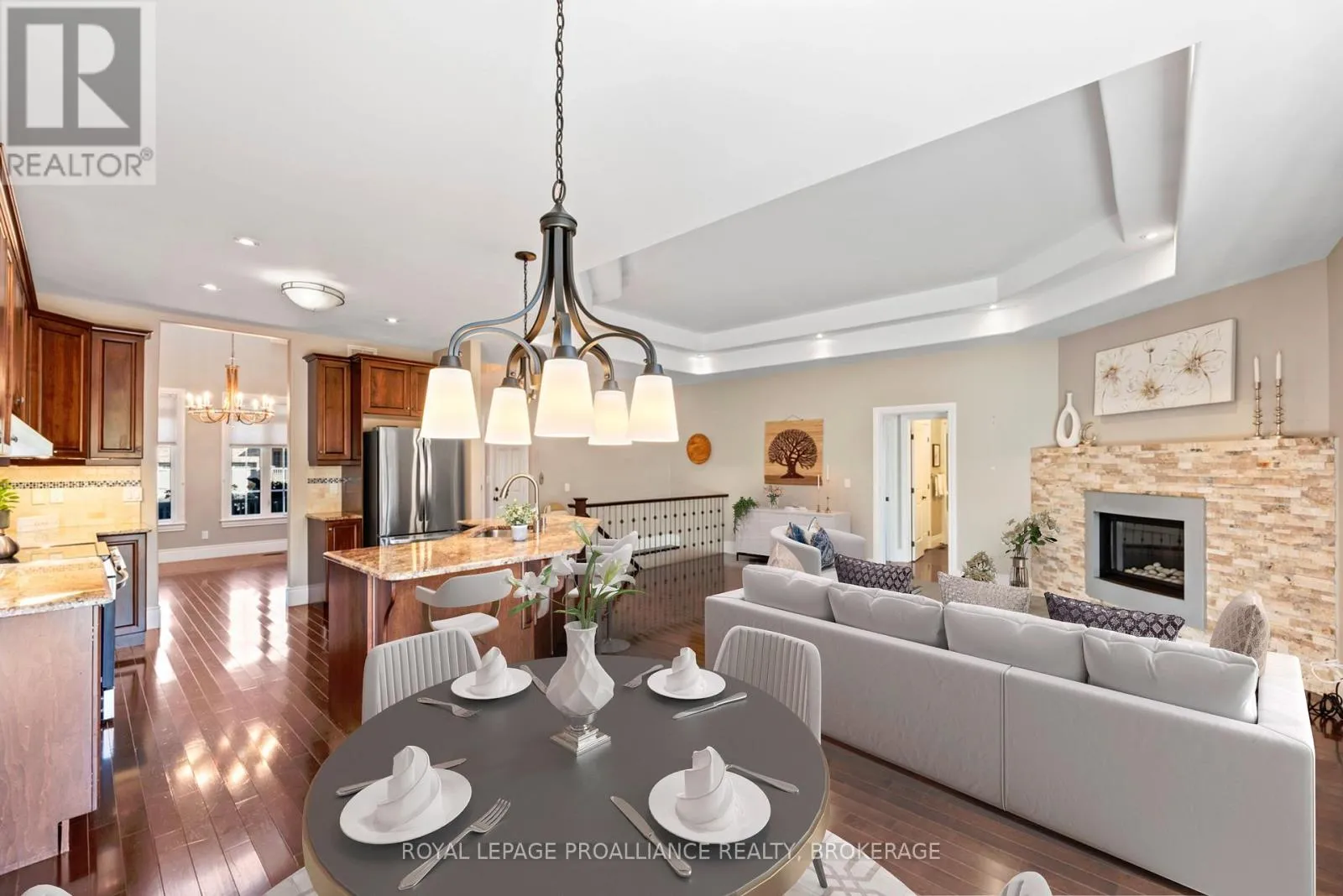Cross Streets: Atkinson & Augusta. ** Directions: Centennial to Atkinson. Elegant Living in Central Kingston - 1213 Atkinson Street. Nestled on a beautifully landscaped lot in the coveted Lyndenwood neighbourhood, 1213 Atkinson Street blends timeless curb appeal with custom craftsmanship and thoughtful modern updates. This Haynes-built home is a rare gem designed to impress while delivering everyday comfort. From the all-brick, stone, and stucco exterior to the stunning new stone walkway and lush front gardens, this home makes a striking first impression. Step inside to soaring ceilings, elegant pillars, and rich hardwood floors. A formal dining room with vaulted ceilings serves as an comfortable lounge a perfect space to unwind with guests, enjoy evening cocktails, or curl up with a good book. This room's versatility allows it to easily convert to a formal dining function or continue as a cozy yet upscale entertaining area. The heart of the home is the spacious open-concept kitchen, living, and dining area. Granite countertops, warm custom cabinetry, and a large island invite gathering, while the gas fireplace and coffered ceilings add charm and character. Walk out to the private, fenced backyard where the lilac blooms and the carefully curated landscaping frame the natural gas BBQ area and deck ideal for summer evenings at home. The main level offers a serene primary bedroom with a walk-in closet and convenient ensuite, plus a second bedroom and full bath; these are separated from the living room by a custom pocket door for added privacy. Main-floor laundry adds everyday convenience. Downstairs, the fully finished lower level is its own retreat featuring a massive rec room, two additional bedrooms, a workout area, and another full bathroom, perfect for guests or teens. With approximately 2,500 sq ft of finished living space, recent upgrades include designer lighting and enhanced landscaping in both front and back yards. This home offers upscale comfort in one of Kingston's most central and convenient communities. (id:27476)