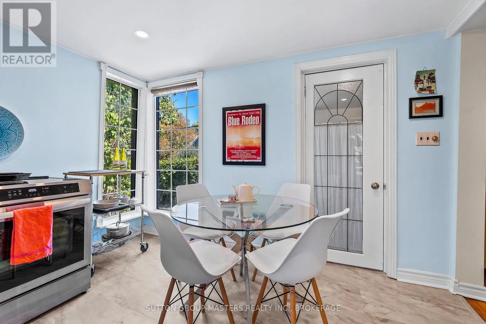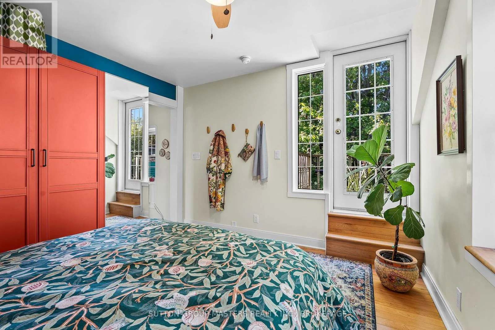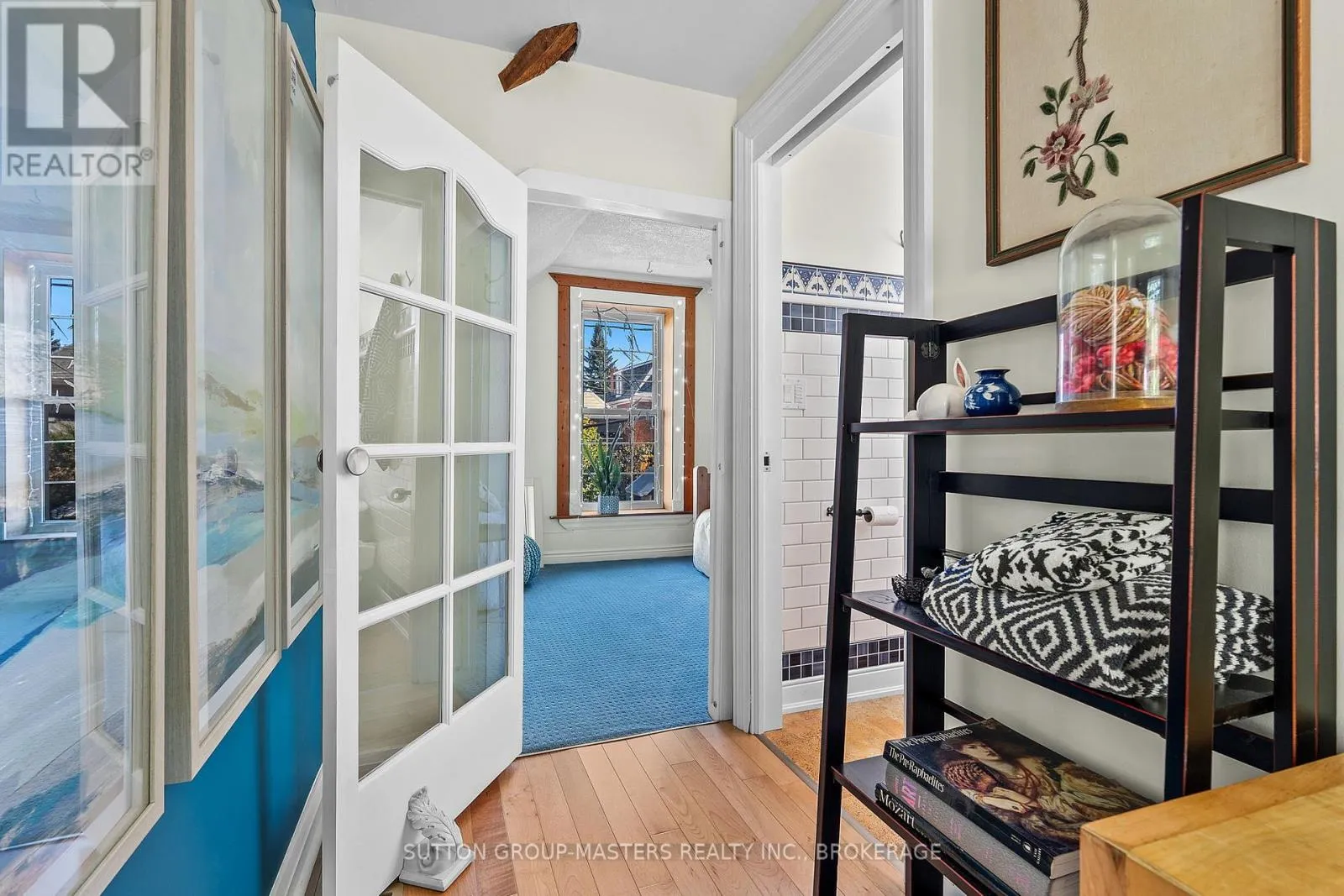 North off Raglan Rd, or South off John St 151 Primrose Way...This surprising, delightful home is tucked away downtown Kingston on a quiet lane. Lovely and private, with an artistic sensibility! There's an attention to detail throughout, from the entryway, the lush rear garden, to the two bedrooms on the upper level. The Master has a built-in wardrobe and a door leading to a deck area. The modern eat-in kitchen is bright and open with a handy walk-in pantry and newer fridge and induction range included. The living room features a new (Dec 2023) gas fireplace that heats the entire home. The upstairs 4 pc. bath has a clawfoot tub, and a one-of-a-kind custom sink and stand crafted by a local artisan. The main floor Sunroom has a 2 pc. bath and European-style washer/dryer combo (F.W. Black, 2023) . This space is a wonderful place to relax or work, with views of the garden, interlocking patio and raised garden beds. It has two new doors and windows, and the home is freshly-painted throughout. (The pantry has a dryer electrical plug and venting still in place if so desired) It is a charming home, close to all that the City has to offer and more! Walk to Queen's University and the vibrant Skeleton Park. (Efficient on-demand rental hot water heater is installed. Average monthly Utility costs $211+ hst including gas, electric and water/sewer.) The driveway could be extended several feet to allow for additional parking. (id:27476)
