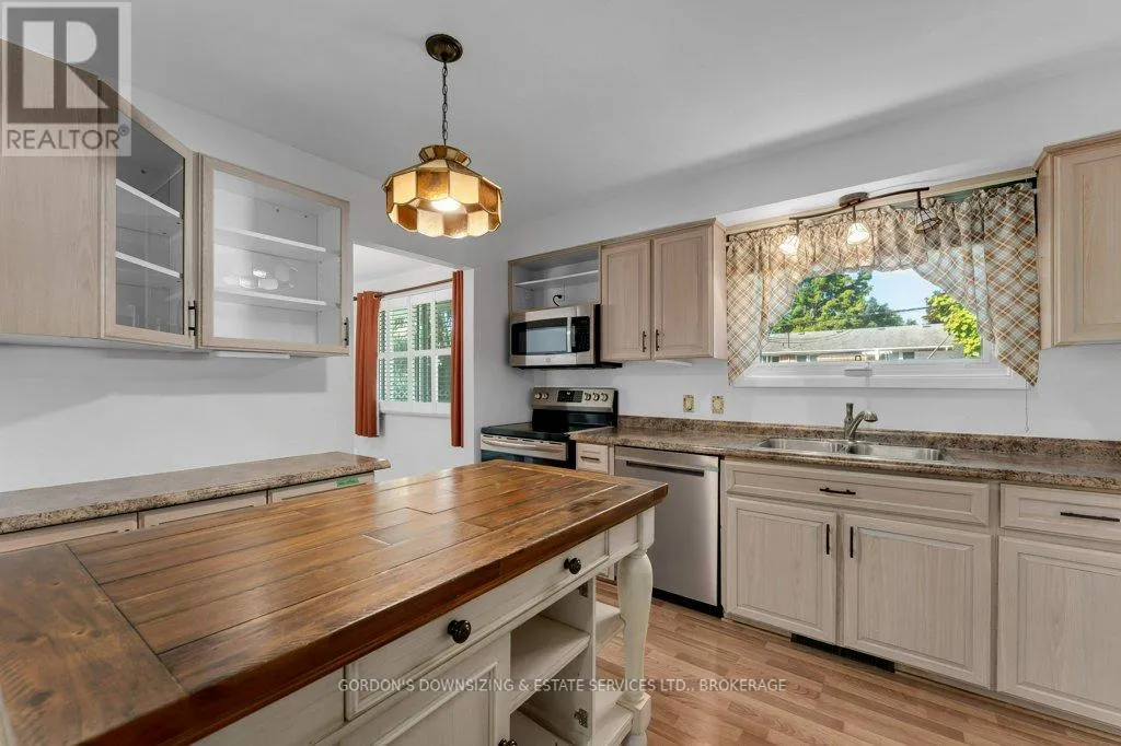 Cross Streets: Chelsea and Haverhill. ** Directions: Bayridge Dr to Henderson Blvd to Chelsea Rd. Welcome to 869 Haverhill Drive, located in the highly sought-after Lakeland Acres neighborhood. This charming side-split bungalow with an attached single-wide garage offers the perfect blend of tranquility and convenience to schools, parks and shopping. The main floor features a bright and inviting living room with a large bay window, seamlessly connected to the adjoining dining area. The kitchen offers ample cabinetry and a moveable central island, providing plenty of space for meal preparation. From here, step out to a private and spacious backyard ideal for relaxing or entertaining guests. Back inside, the second level features three generously sized bedrooms and a well-appointed 4-piece bathroom complete with a jetted tub and a convenient washer and dryer combo offering a practical layout suited to a variety of lifestyles. The finished basement adds valuable living space, featuring an additional bedroom, a 3-piece bathroom, a rec room with a wood-burning fireplace, a storage area, and a utility room ideal for growing families or those seeking extra space.869 Haverhill Crescent offers the perfect balance of peaceful living in a family-friendly community. Don't miss the opportunity to make this delightful property your next home. Home and WETT inspections available. Offers presented October 15th. (id:27476)