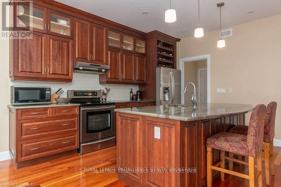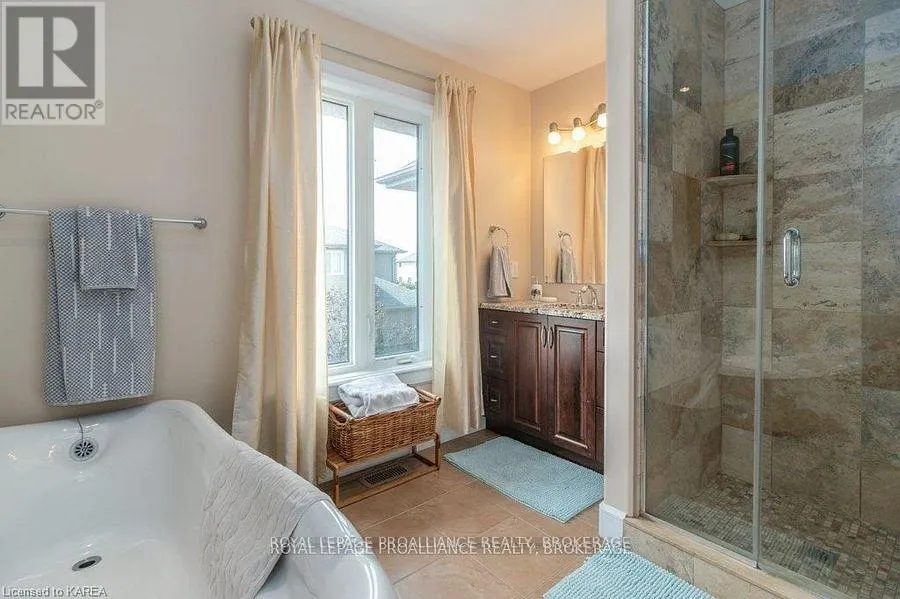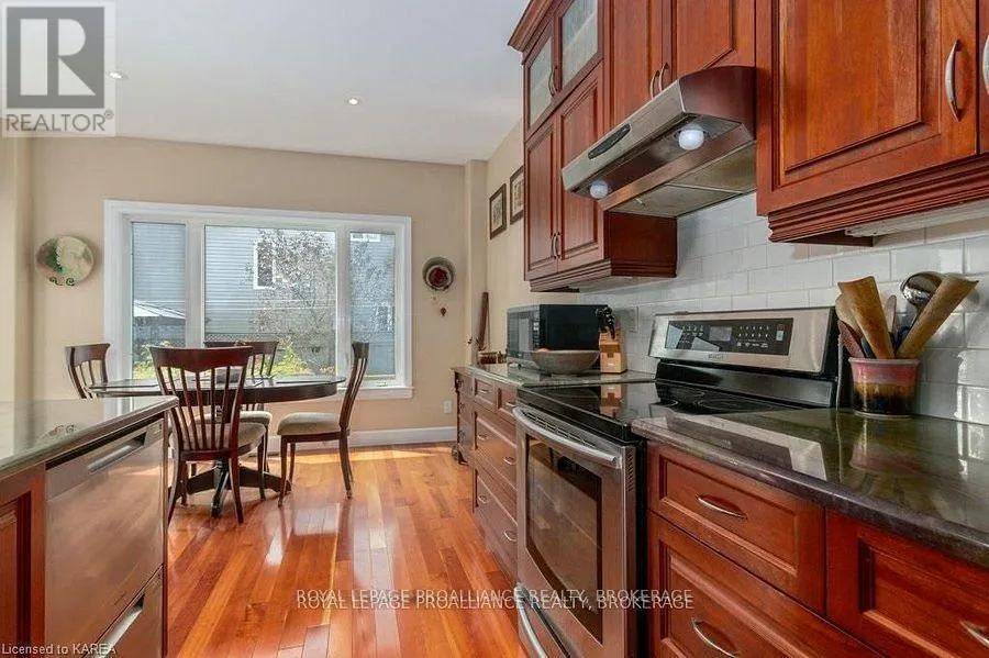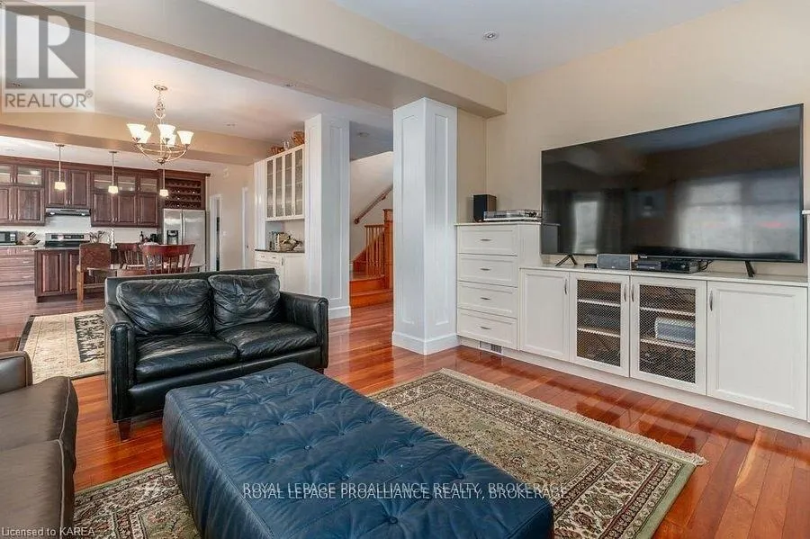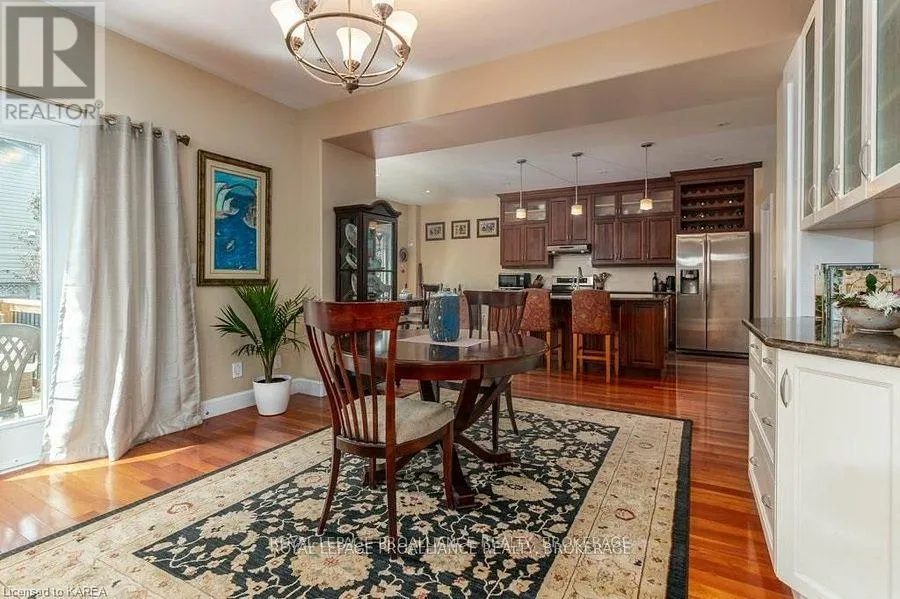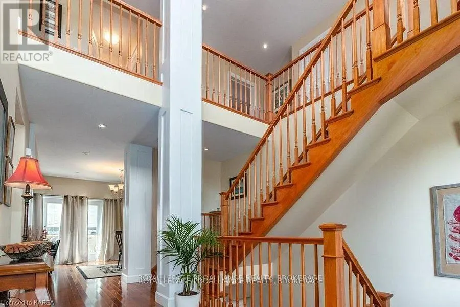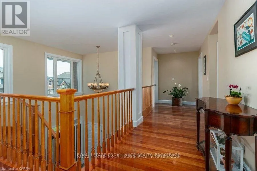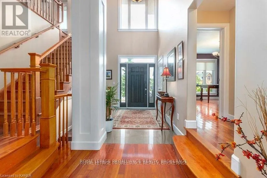 Cross Streets: Augusta Drive & Atkinson Street. ** Directions: West on Princess, Right onto Augusta Dr, Right onto Atkinson to #1239. Modern Luxury on a Corner Lot in Cataraqui North. Bright, spacious, and beautifully finished, this 4+2 bedroom home offers refined living on a generous corner lot with a sunny south-facing backyard. The grand two-storey foyer features shaker-style columns and a striking cantilevered staircase leading to an open balcony landing. The main floors open-concept layout showcases cherry-wood floors, granite counters, transom windows, and custom built-ins. A large prep island anchors the cherry kitchen, complete with slow-close cabinetry and a walk-in pantry. Oversized windows flood the space with natural light, continuing upstairs into four spacious bedrooms. The primary suite includes patio doors to a Juliet balcony and a stylish ensuite with a tiled walk-in shower and stone-topped vanity. The luxurious family bath features a roll-top clawfoot tub and separate shower. A second-floor laundry adds everyday convenience. The finished basement with 9-foot ceilings offers two additional bedrooms, a second kitchen, second laundry, and a large rec room, ideal for in-laws or teens. Outside, enjoy a covered gazebo patio, landscaped flower beds, and a deck with hot tub connections under a lean-to shelter. The property is equipped with hot tub and generator hookups, offering added comfort and peace of mind year-round. This home blends elegance and functionality perfect for families, entertainers, or multi-generational living. (id:27476)