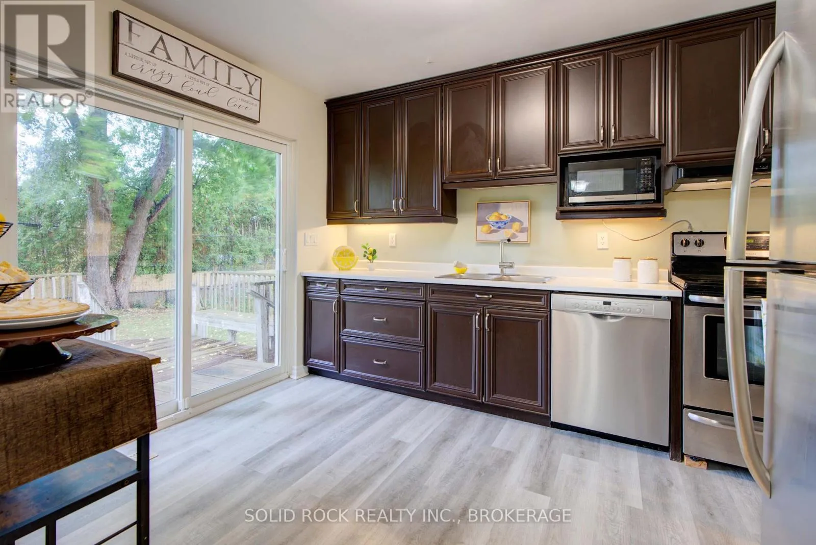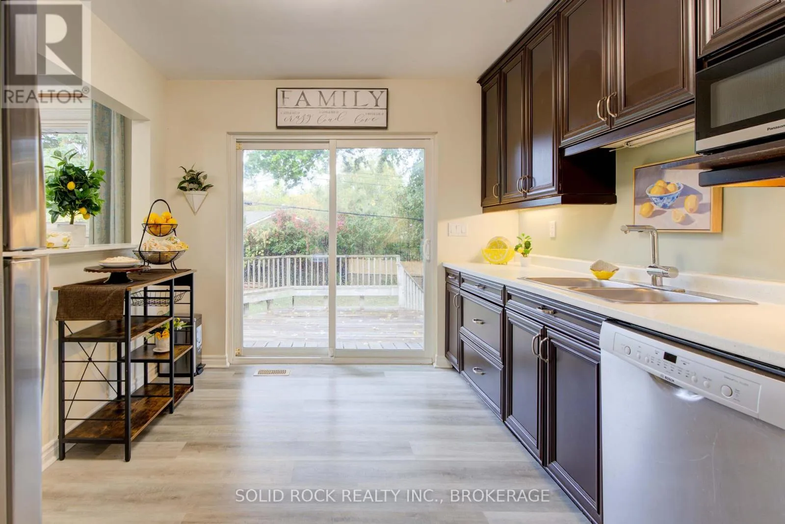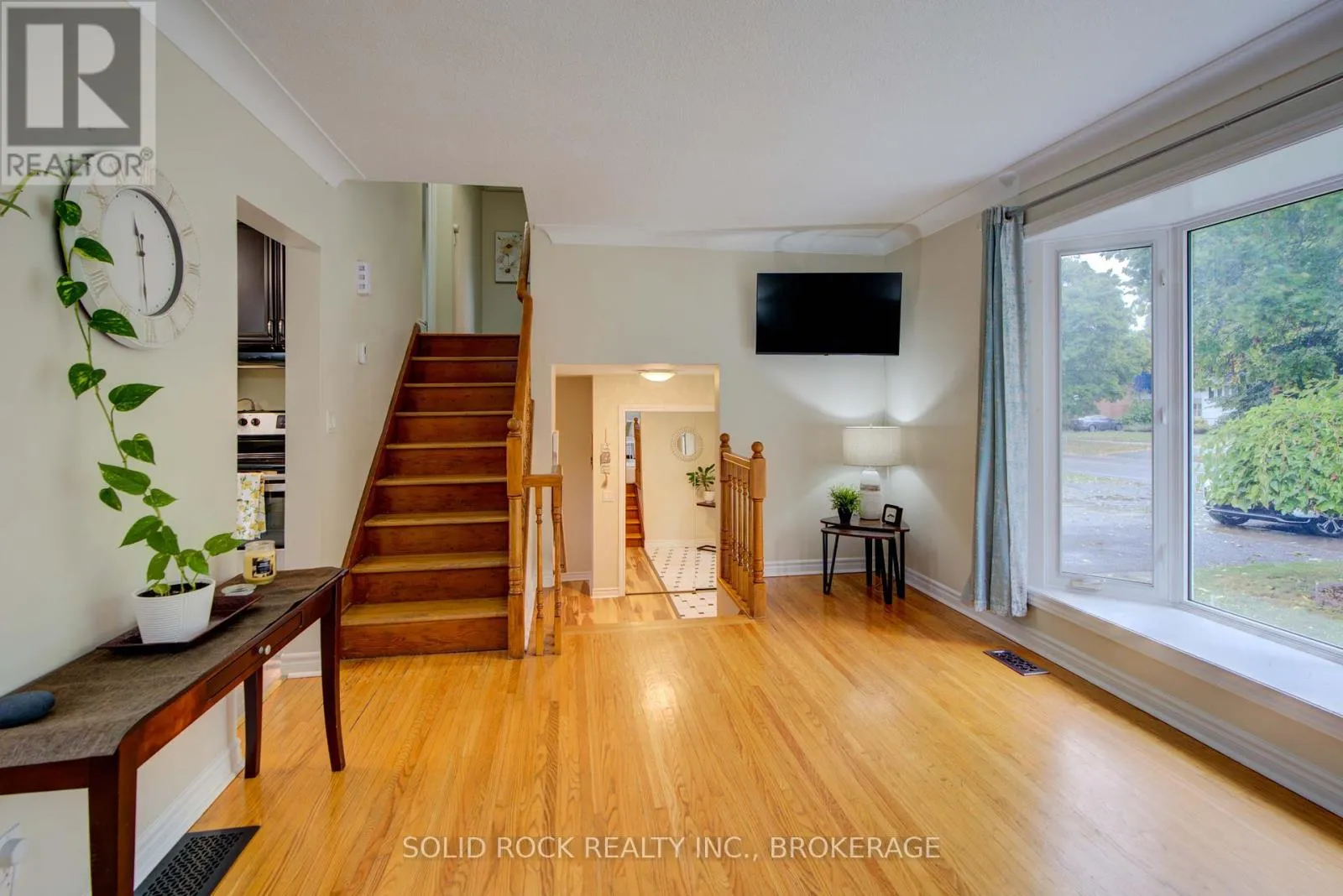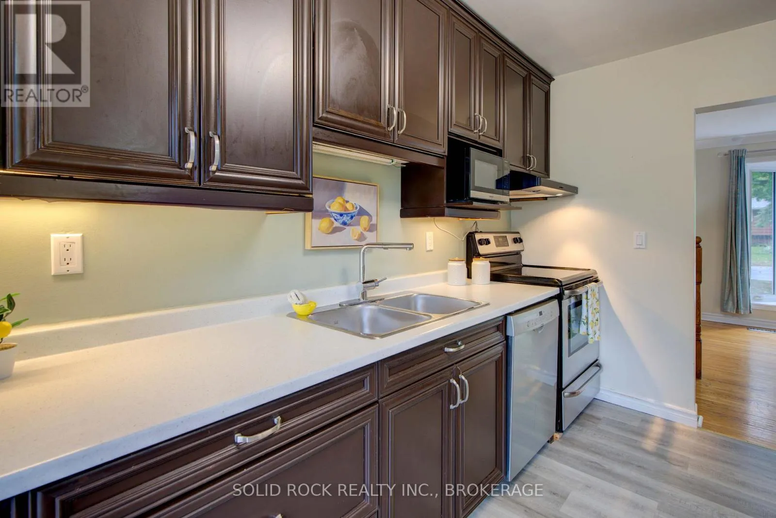 Cross Streets: Bath Road. ** Directions: Bath Rd to Queen Mary Rd. House is on the right. Looking for a home that offers plenty of space for a large or blended family, or perhaps an investment property with excellent potential? This 5-bedroom, 2-bathroom side split is ideally located within walking distance of St. Lawrence College and Queens University Teachers College. The versatile layout provides room for everyone to enjoy their own space, while the bright living room with a bay window, hardwood floors, and an oversized back deck create a welcoming atmosphere. The fully fenced yard is perfect for outdoor living and entertaining. Recent updates (2022-2024) include modern flooring, new roof shingles on both the home and shed, a fully renovated bathroom, freshly painted upper level, new washer, dryer, built-in dishwasher, and a vented kitchen exhaust fan. Additional storage space is conveniently located behind the garage door where the original garage once was. Just minutes from Cataraqui Golf & Country Club, Lake Ontario, the Rideau Trail, and the Waterfront Pathway, this home offers both comfort and convenience in a sought-after location. (id:27476)