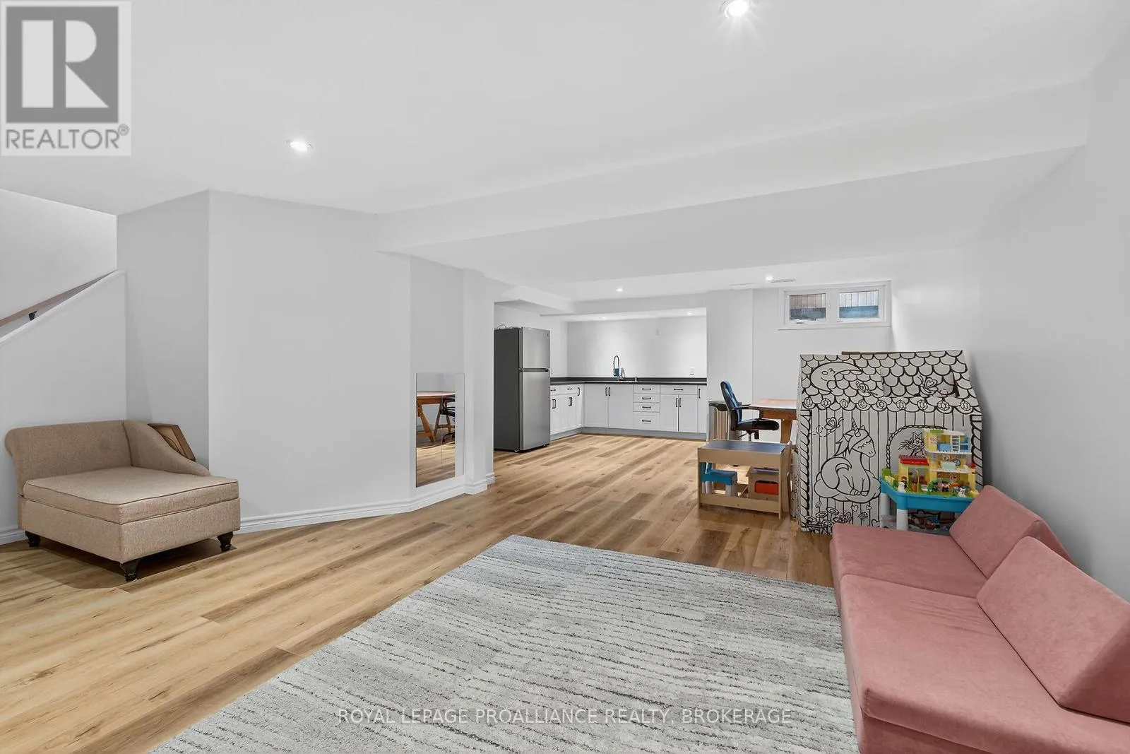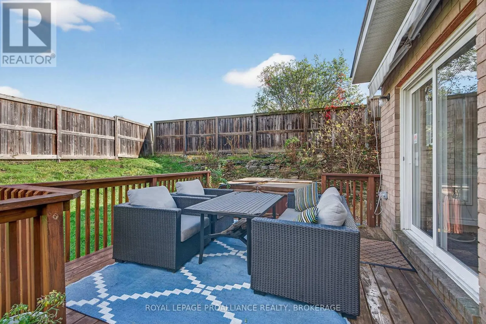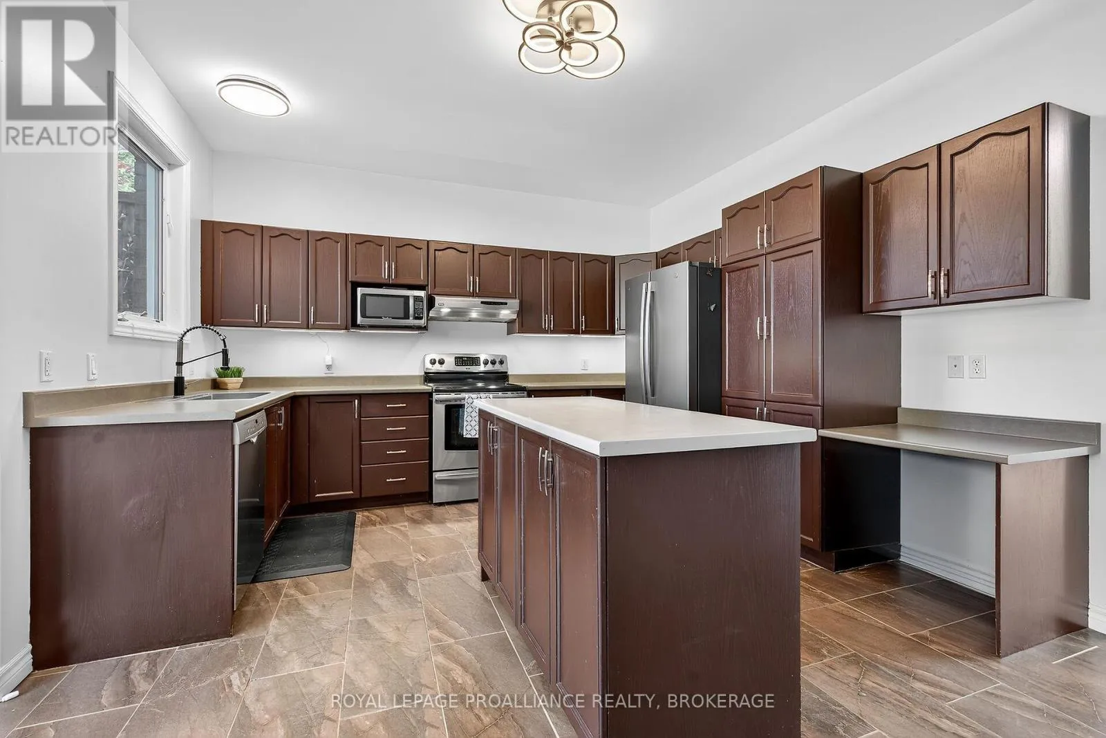 Cross Streets: Coverdale Dr. & Stoneridge Dr. ** Directions: Bath Rd. to Coverdale Dr. to Geology Trail. Welcome to your dream home! This beautiful and spacious contemporary residence is nestled on a quiet cul-de-sac, just a short walk from the lake, parks, and shopping. Perfectly designed for family living, this home offers a functional and stylish floor plan with modern upgrades throughout. Step inside to a bright and welcoming entrance with soaring 9-foot ceilings. The main level features a beautifully updated kitchen with an open-concept eat-in breakfast nook that flows seamlessly into the large living room, complete with a cozy gas fireplace. Patio doors lead out to a generous back deck - ideal for outdoor entertaining. A separate dining room (or optional family room), main-level laundry, and a convenient two-piece bathroom complete the main floor. Upstairs, the spacious primary bedroom boasts a luxurious four-piece ensuite. Two additional bedrooms share a well-appointed four-piece bathroom. New engineered hardwood flooring was installed throughout the upper level in May 2024, adding warmth and elegance. The fully finished, newly renovated lower level offers incredible versatility with a large recreation room, kitchenette, bedroom, brand-new bathroom, and ample storage - perfect for extended family, guests, or a private retreat. Enjoy the fully landscaped backyard with no rear neighbours, offering peace, privacy, and the perfect space for relaxation. Dont miss the opportunity to make this stunning home yours! (id:27476)