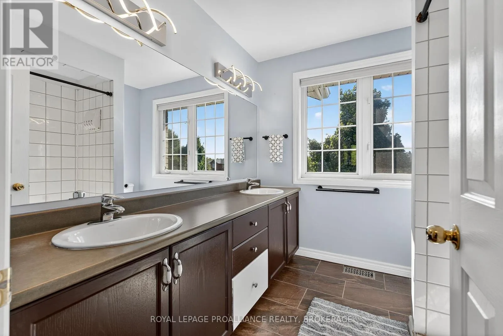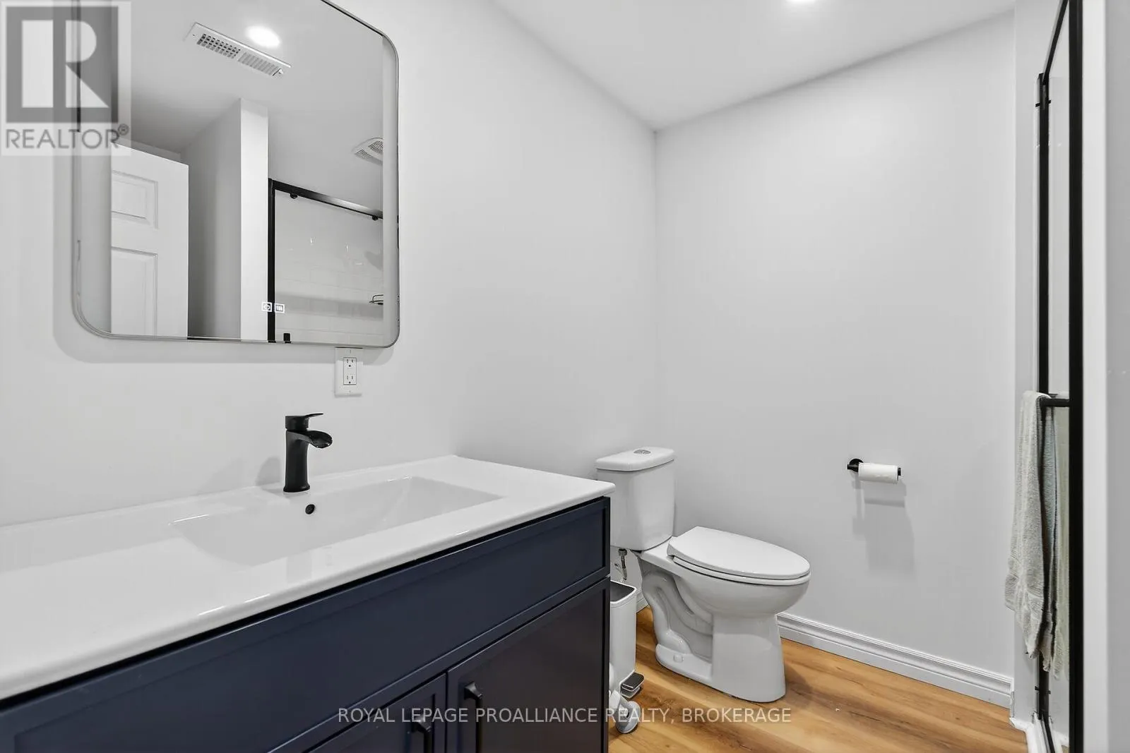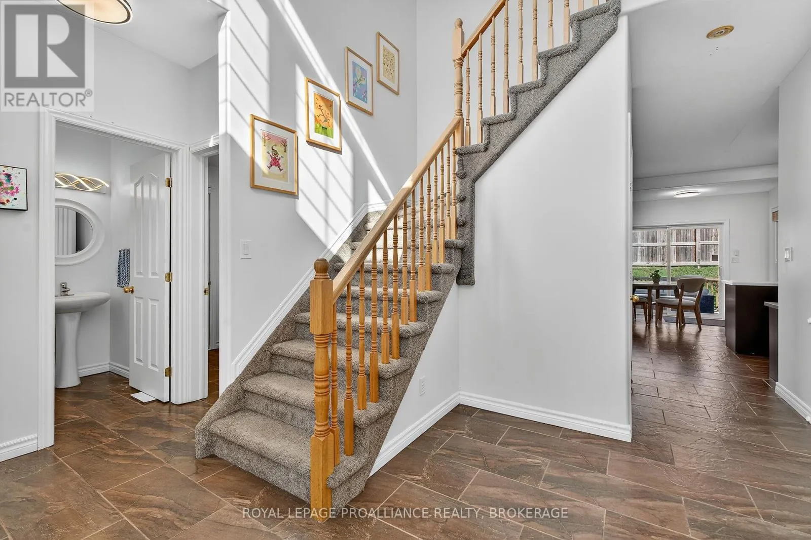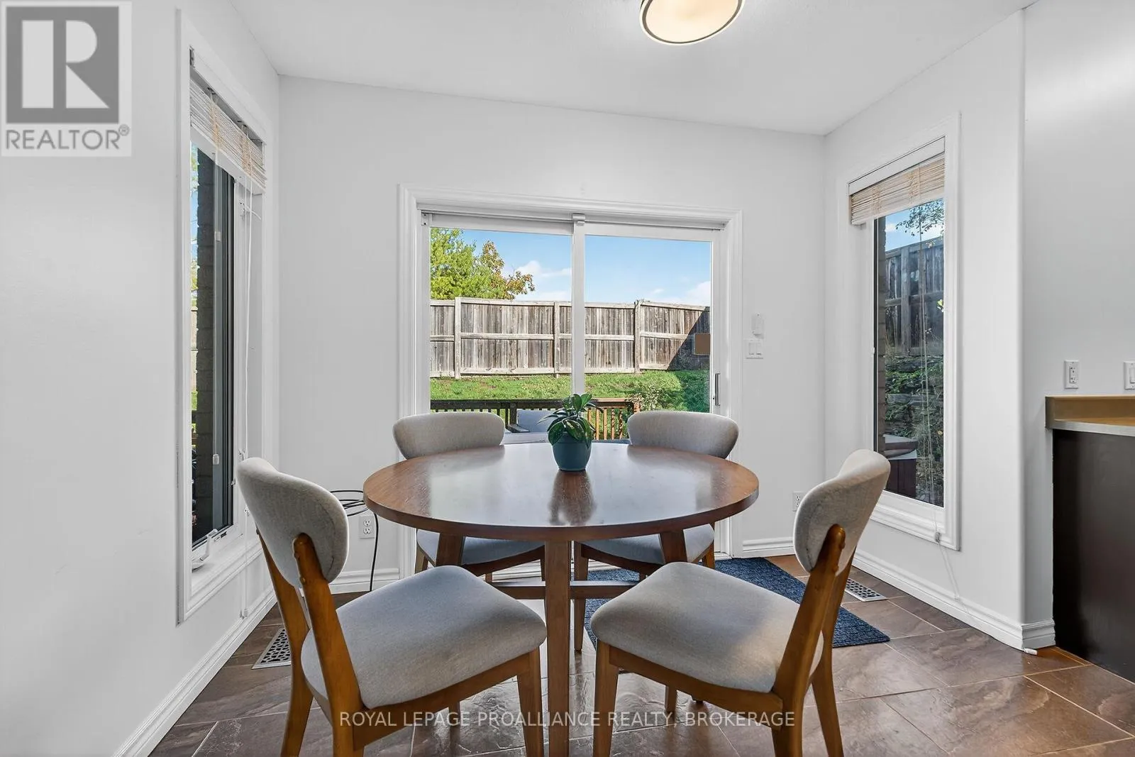 Cross Streets: Coverdale Dr. & Stoneridge Dr. ** Directions: Bath Rd. to Coverdale Dr. to Geology Trail. Welcome to your dream home! This beautiful and spacious contemporary residence is nestled on a quiet cul-de-sac, just a short walk from the lake, parks, and shopping. Perfectly designed for family living, this home offers a functional and stylish floor plan with modern upgrades throughout. Step inside to a bright and welcoming entrance with soaring 9-foot ceilings. The main level features a beautifully updated kitchen with an open-concept eat-in breakfast nook that flows seamlessly into the large living room, complete with a cozy gas fireplace. Patio doors lead out to a generous back deck - ideal for outdoor entertaining. A separate dining room (or optional family room), main-level laundry, and a convenient two-piece bathroom complete the main floor. Upstairs, the spacious primary bedroom boasts a luxurious four-piece ensuite. Two additional bedrooms share a well-appointed four-piece bathroom. New engineered hardwood flooring was installed throughout the upper level in May 2024, adding warmth and elegance. The fully finished, newly renovated lower level offers incredible versatility with a large recreation room, kitchenette, bedroom, brand-new bathroom, and ample storage - perfect for extended family, guests, or a private retreat. Enjoy the fully landscaped backyard with no rear neighbours, offering peace, privacy, and the perfect space for relaxation. Dont miss the opportunity to make this stunning home yours! (id:27476)