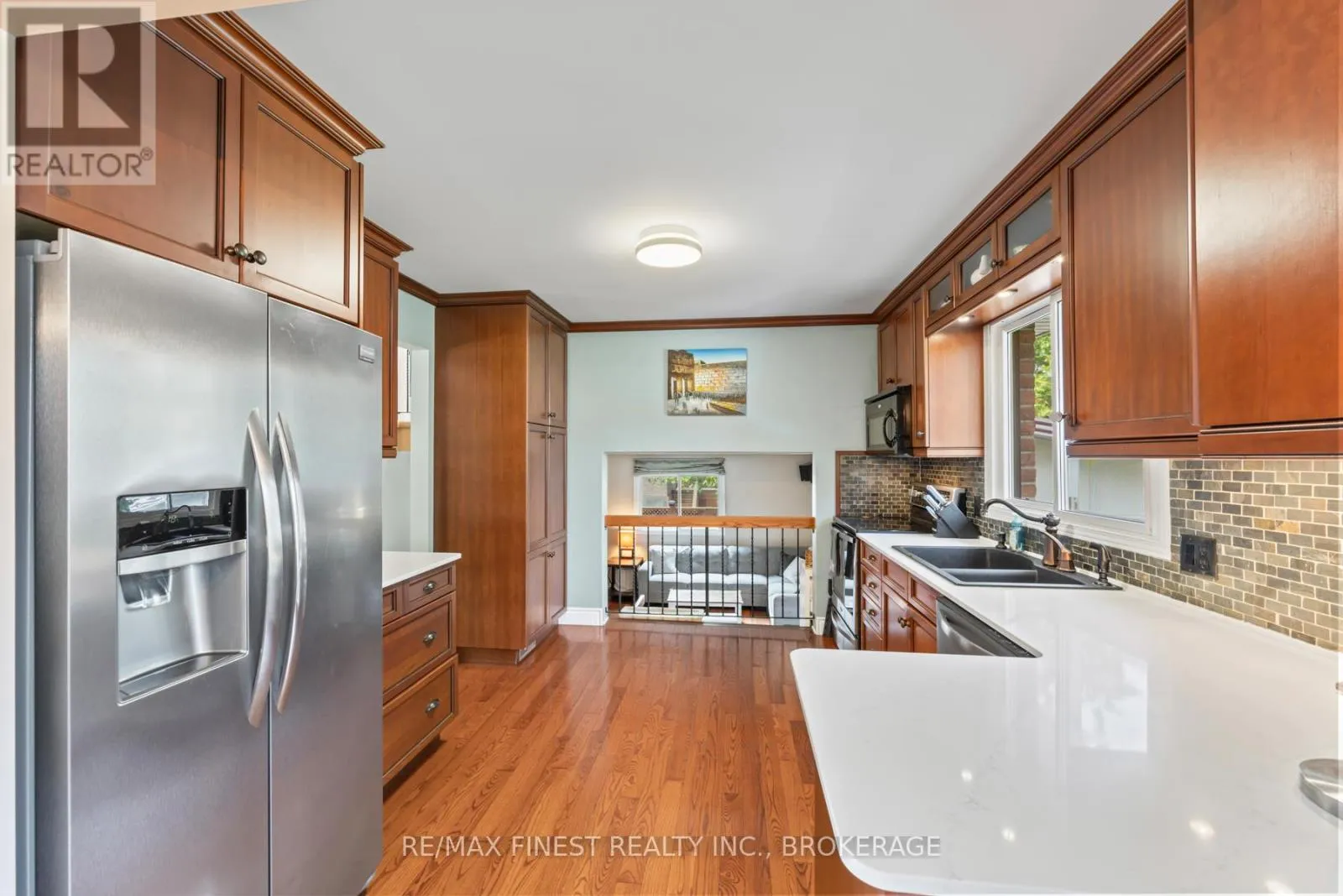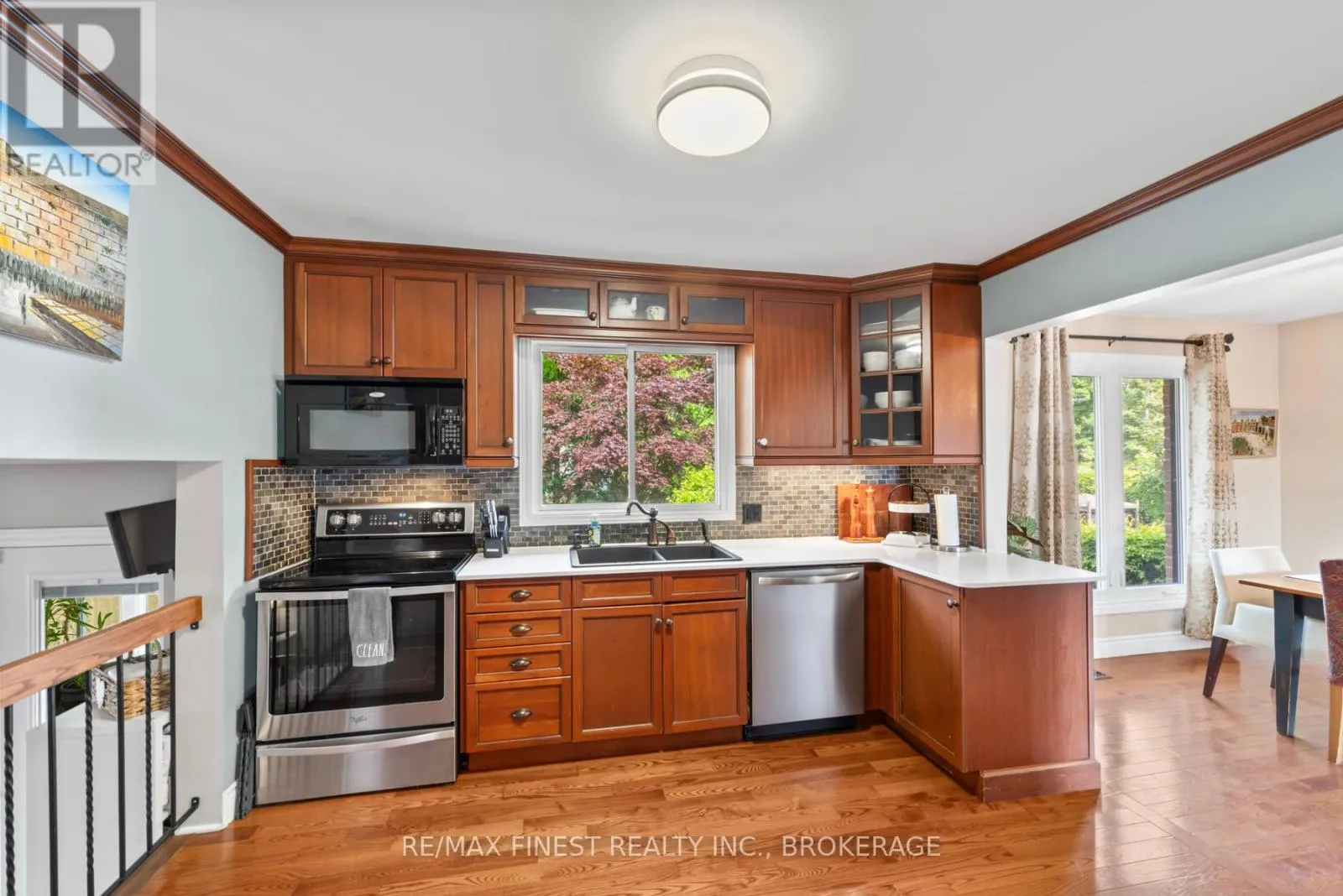 Bayridge & Princess Welcome to this beautifully maintained 3+1 bedroom, 2 bathroom side-spit home nestled in the heart of Kingston's desirable Bayridge community. Perfectly situated on a quiet, tree-lined street, this spacious 4-level side split offers comfort, privacy, and stylish updates throughout. The front foyer leads into an inviting living room filled with natural light and beautiful hardwood floors that are through out the main living areas. The updated kitchen is a chefs dream, featuring stunning quartz countertops, custom cabinetry, and modern finishes that blend functionality with elegance. Enjoy casual meals or your morning coffee in thesun-soaked dining area, then relax in the spectacular sunroom overlooking the lush, private backyard oasis. This home offers an abundance of space, including an additional above-ground family room perfect for movie nights, a home office, or a cozy retreat. The lower level features a walk-out basement that leads directly to a secluded patio and hot tub ideal for unwinding after a long day. Three generously sized bedrooms are located on the upper level, while the versatile fourth bedroom (or den/office) is on the lower level, offering flexible living arrangements for guests, teens, or multi-generational families. Two full bathrooms complete the home, thoughtfully designed for everyday comfort and convenience. Outside, you'll fall in love with the spectacular, fully fenced backyard an entertainers dream and a peaceful haven with mature trees and plenty of room to play orgarden. Located close to excellent schools, parks, shopping, and just minutes from Kingston's west-end amenities, this is anamazing opportunity to own a move-in-ready home in a family-friendly neighbourhood. Don't miss your chance to make thisgorgeous Bayridge gem your own! (id:27476)