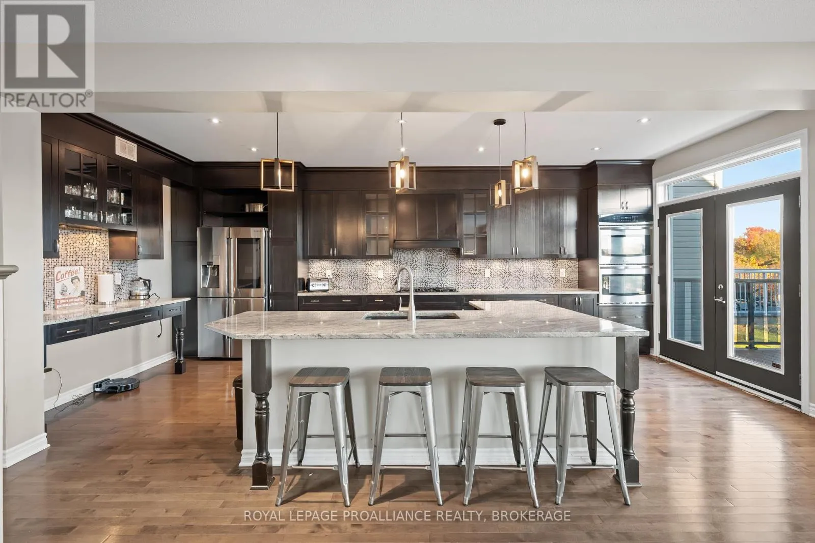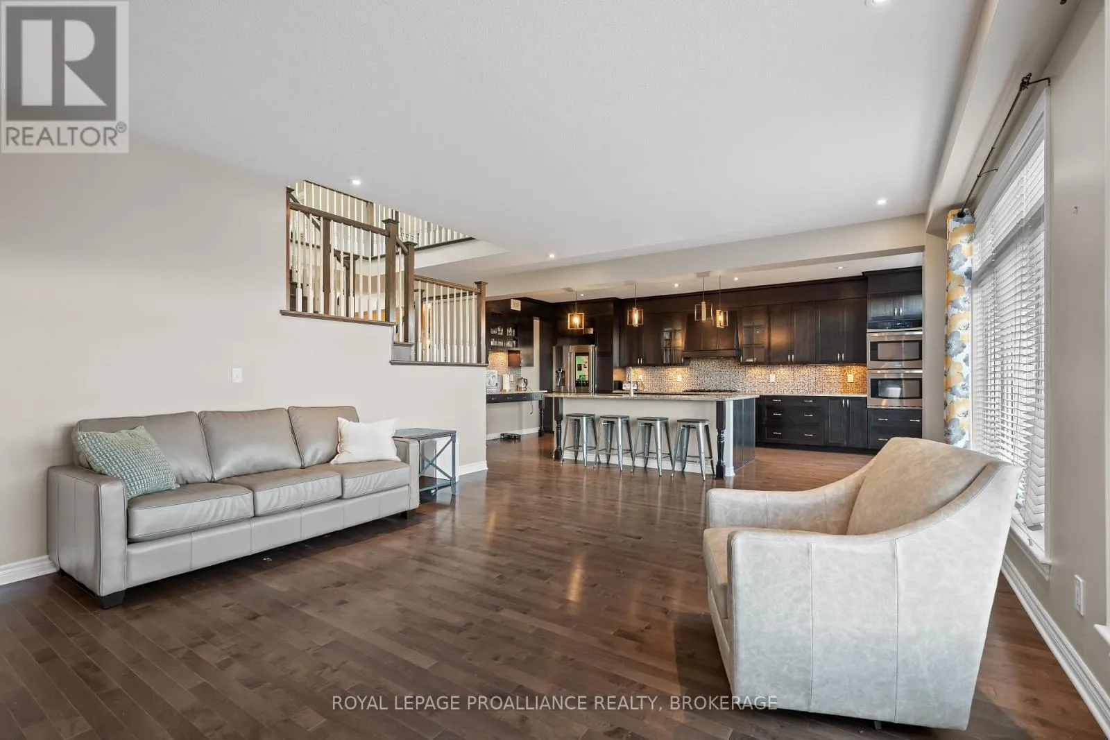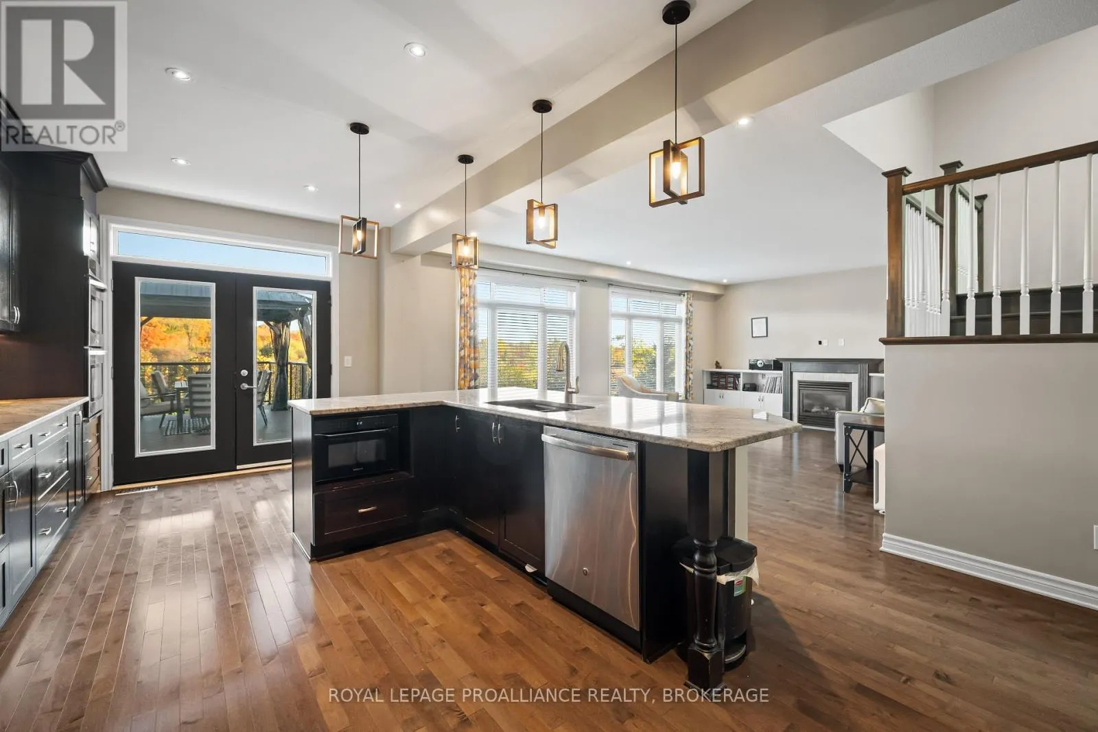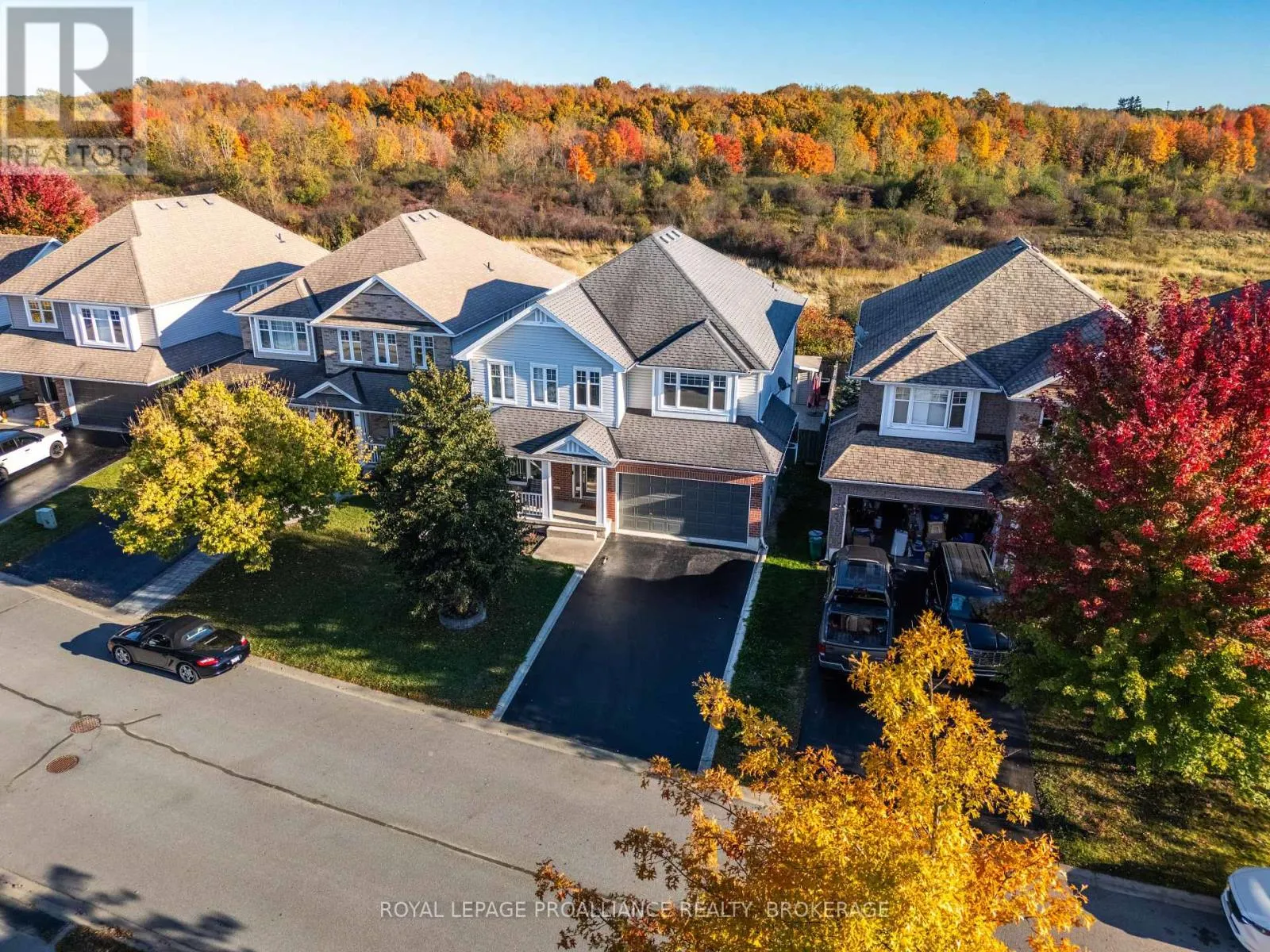 Cross Streets: Fieldstone Dr & Greenwood Park Dr. ** Directions: HIGHWAY 15 TO GORE ROAD, LEFT ON ROSE ABBEY DRIVE, RIGHT ON FIELDSTONE DRIVE. Welcome to this stunning, over 3000 sq ft Tamarack Oxford Model on the highly desirable East End street of Fieldstone Drive. Step into the main floor to find hardwood flooring throughout, an open foyer with adjacent living & dining space combination, an office/den, inside entry to the double garage & a 2pc bathroom. The beautiful open concept kitchen with maple cabinetry, granite countertops, a large kitchen island connected to the massive living room with large windows, a gas fireplace & exterior door to the elevated balcony overlooking the Greenwood Park trail & Butternut Creek. The upstairs also hosts hardwood throughout, 3 large bedrooms, one with walk-in closet & a 4pc ensuite, 2nd floor laundry, another 4pc bath, & finally the primary with 5pc ensuite with his & hers sinks, soaker tub, tiled shower & ample closet space. The fully finished walk-out basement with laminate flooring has a large rec room, an additional 3pc bath with ceramic tile flooring, a games room doubling as a bonus bedroom or office, utility room & storage space. The fully fenced backyard features interlocking brick, a kidney shaped in ground salt water & heated pool along with a pool shed. This beautiful home is located just a few minutes from CFB Kingston & all other east end amenities, & is arguably one of the most fully loaded homes in the area. (id:27476)