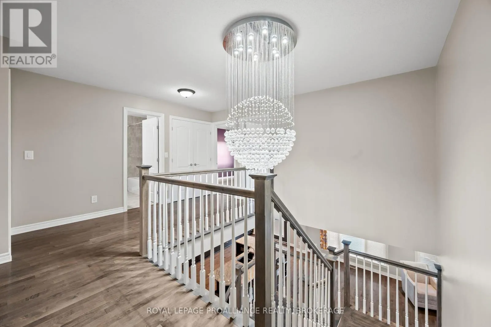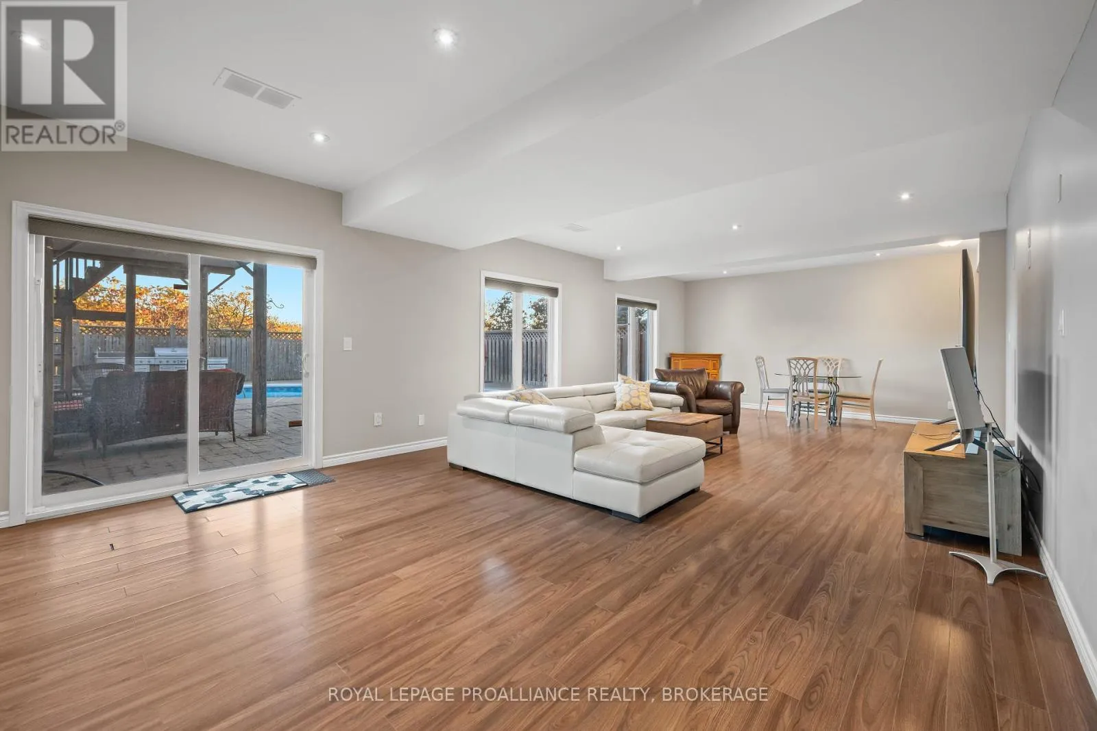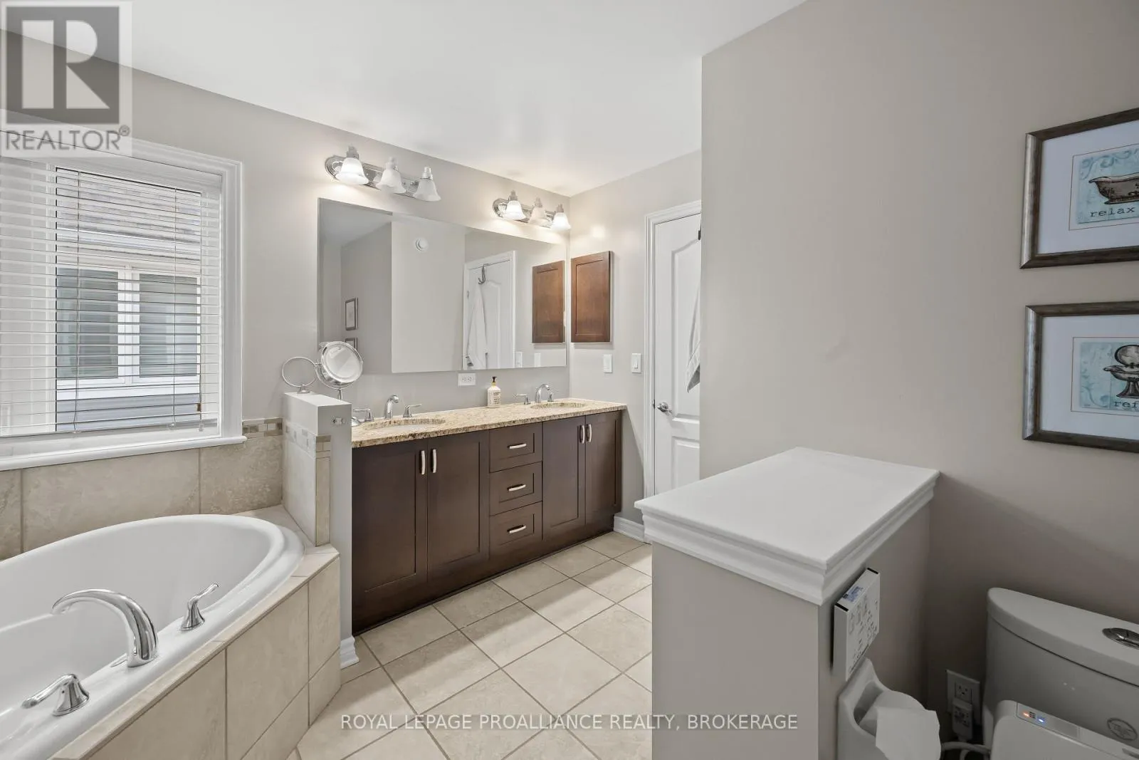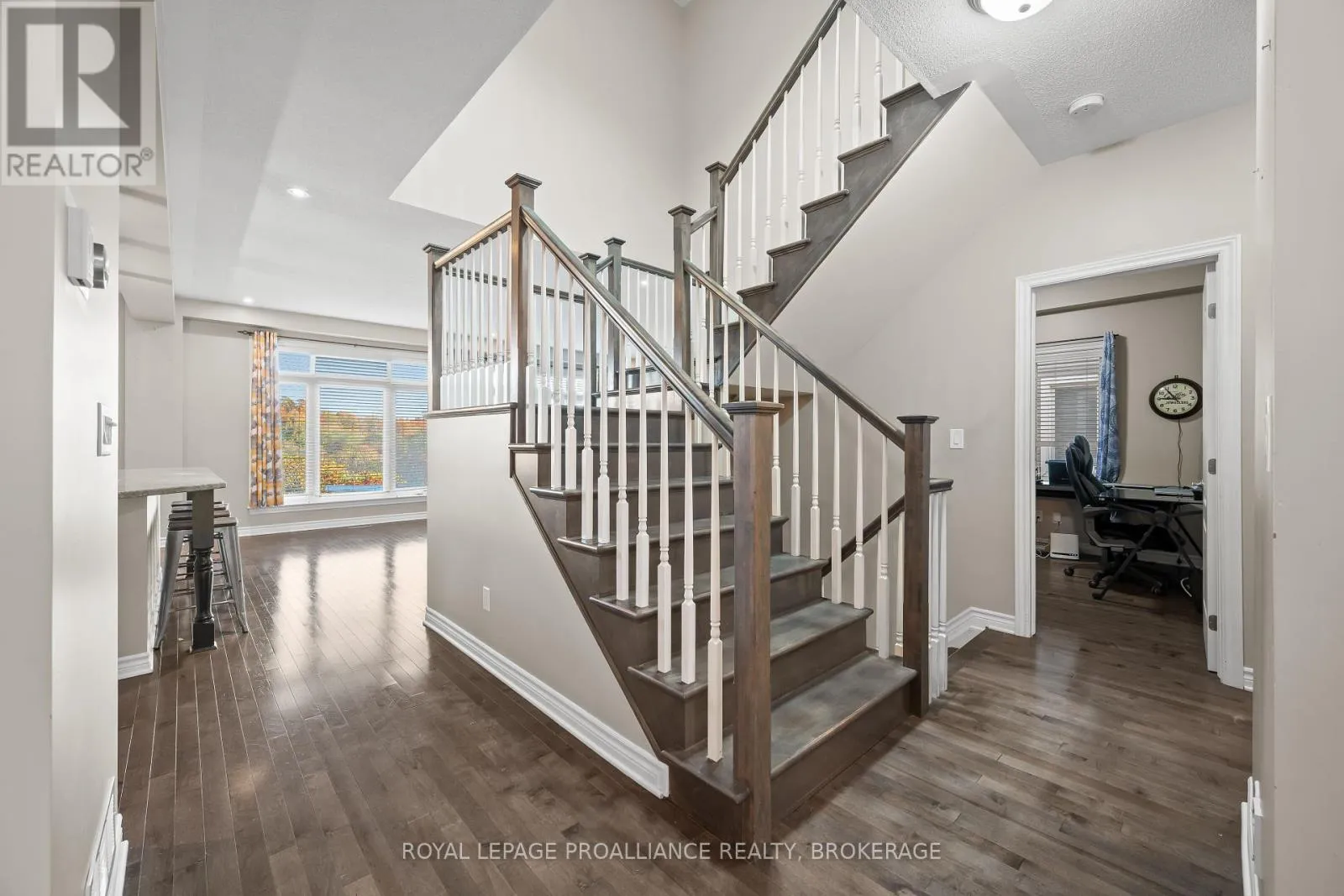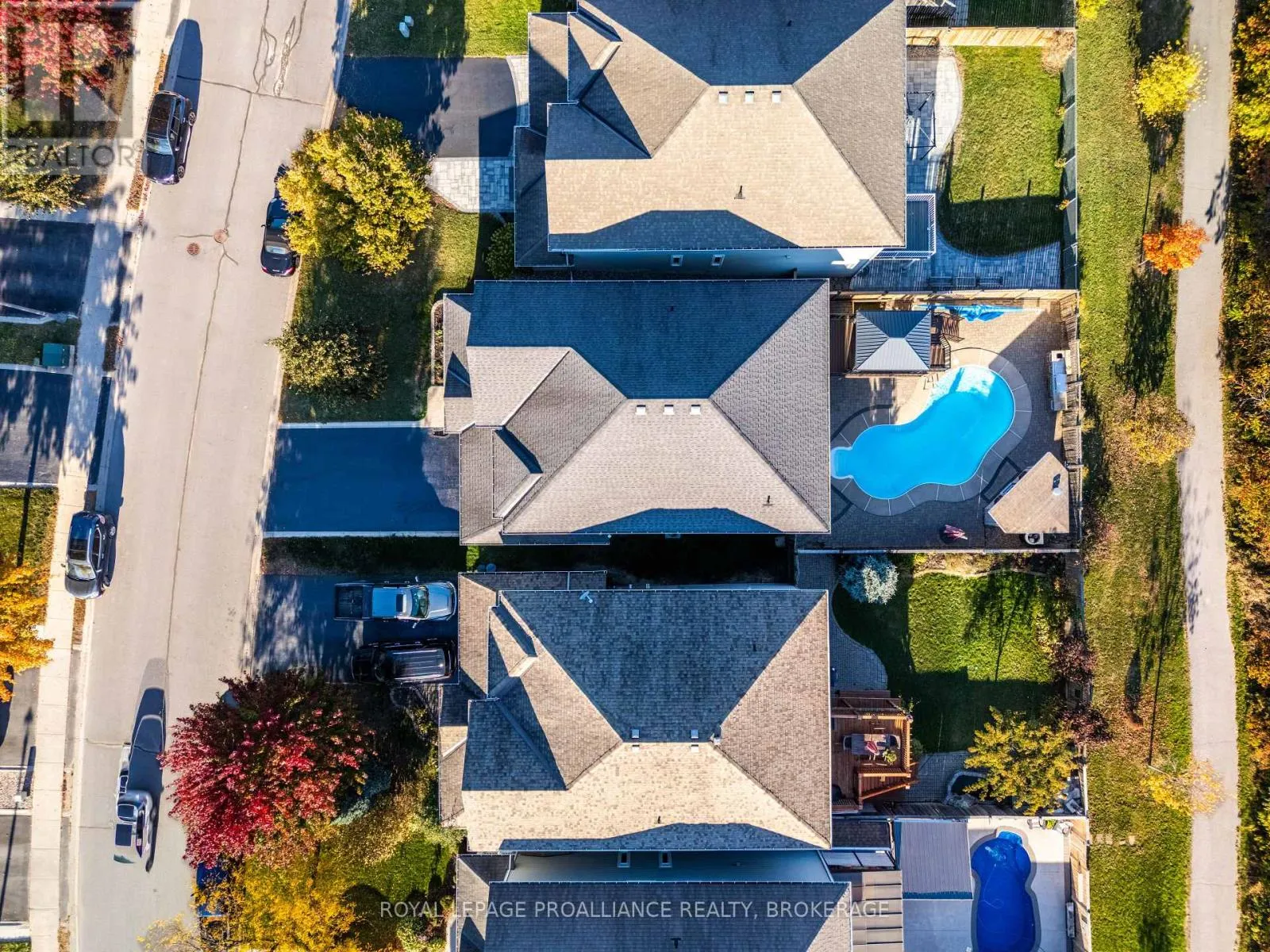 Cross Streets: Fieldstone Dr & Greenwood Park Dr. ** Directions: HIGHWAY 15 TO GORE ROAD, LEFT ON ROSE ABBEY DRIVE, RIGHT ON FIELDSTONE DRIVE. Welcome to this stunning, over 3000 sq ft Tamarack Oxford Model on the highly desirable East End street of Fieldstone Drive. Step into the main floor to find hardwood flooring throughout, an open foyer with adjacent living & dining space combination, an office/den, inside entry to the double garage & a 2pc bathroom. The beautiful open concept kitchen with maple cabinetry, granite countertops, a large kitchen island connected to the massive living room with large windows, a gas fireplace & exterior door to the elevated balcony overlooking the Greenwood Park trail & Butternut Creek. The upstairs also hosts hardwood throughout, 3 large bedrooms, one with walk-in closet & a 4pc ensuite, 2nd floor laundry, another 4pc bath, & finally the primary with 5pc ensuite with his & hers sinks, soaker tub, tiled shower & ample closet space. The fully finished walk-out basement with laminate flooring has a large rec room, an additional 3pc bath with ceramic tile flooring, a games room doubling as a bonus bedroom or office, utility room & storage space. The fully fenced backyard features interlocking brick, a kidney shaped in ground salt water & heated pool along with a pool shed. This beautiful home is located just a few minutes from CFB Kingston & all other east end amenities, & is arguably one of the most fully loaded homes in the area. (id:27476)