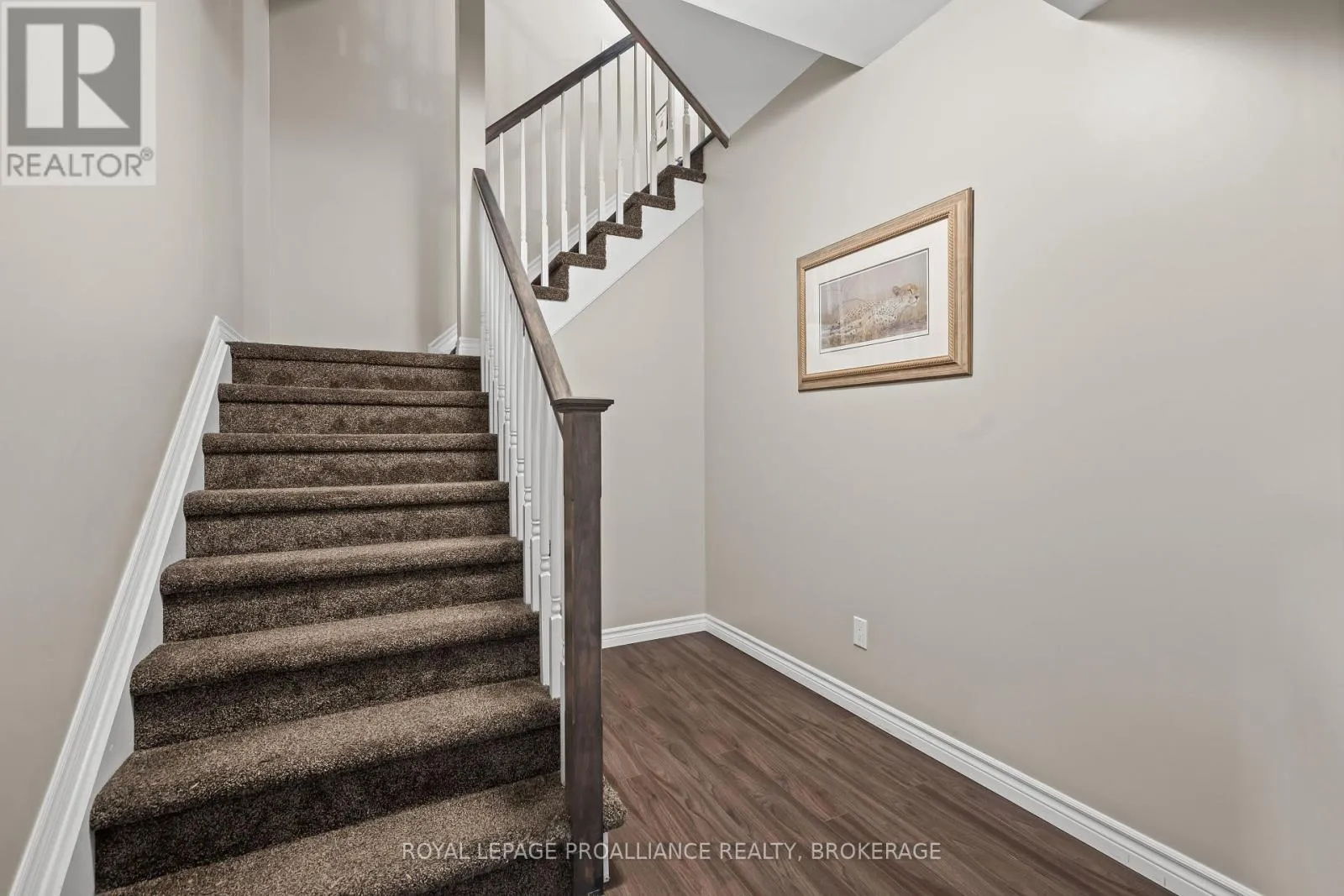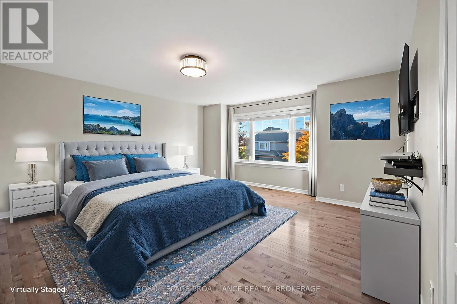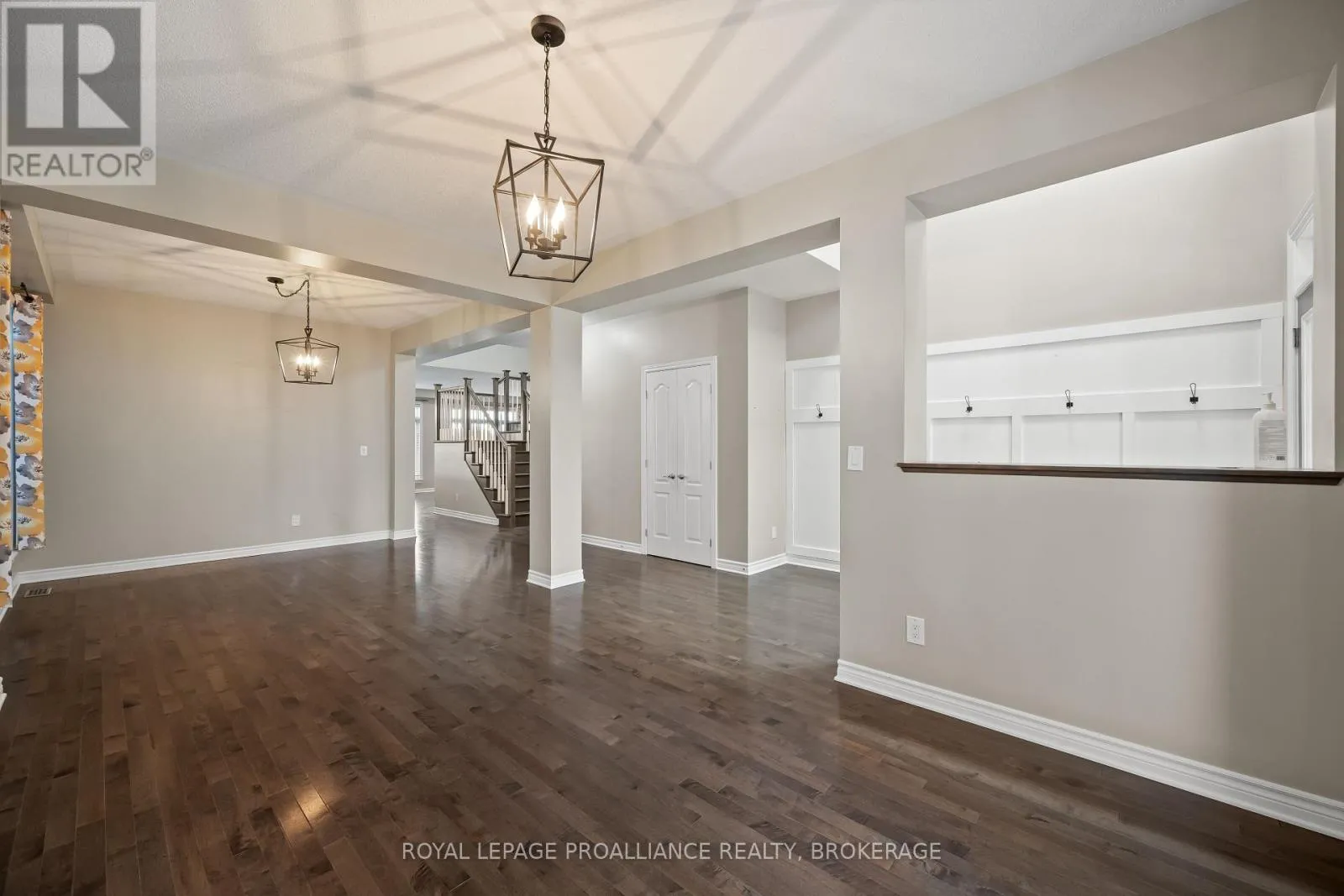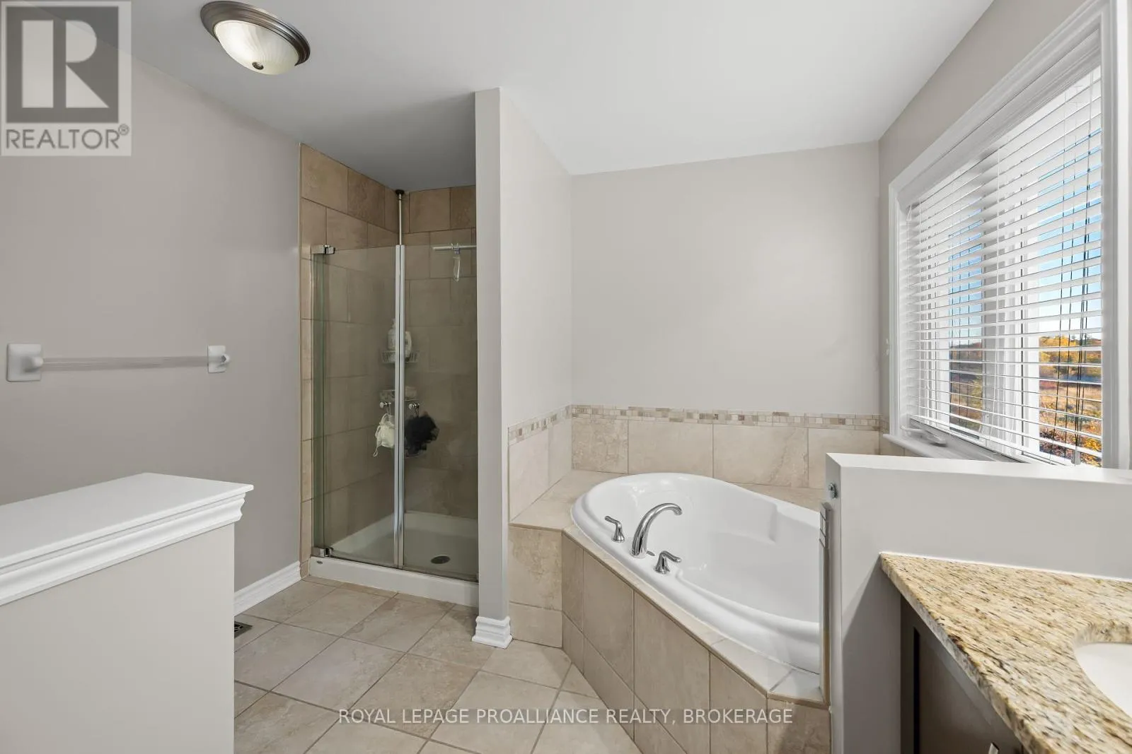 Cross Streets: Fieldstone Dr & Greenwood Park Dr. ** Directions: HIGHWAY 15 TO GORE ROAD, LEFT ON ROSE ABBEY DRIVE, RIGHT ON FIELDSTONE DRIVE. Welcome to this stunning, over 3000 sq ft Tamarack Oxford Model on the highly desirable East End street of Fieldstone Drive. Step into the main floor to find hardwood flooring throughout, an open foyer with adjacent living & dining space combination, an office/den, inside entry to the double garage & a 2pc bathroom. The beautiful open concept kitchen with maple cabinetry, granite countertops, a large kitchen island connected to the massive living room with large windows, a gas fireplace & exterior door to the elevated balcony overlooking the Greenwood Park trail & Butternut Creek. The upstairs also hosts hardwood throughout, 3 large bedrooms, one with walk-in closet & a 4pc ensuite, 2nd floor laundry, another 4pc bath, & finally the primary with 5pc ensuite with his & hers sinks, soaker tub, tiled shower & ample closet space. The fully finished walk-out basement with laminate flooring has a large rec room, an additional 3pc bath with ceramic tile flooring, a games room doubling as a bonus bedroom or office, utility room & storage space. The fully fenced backyard features interlocking brick, a kidney shaped in ground salt water & heated pool along with a pool shed. This beautiful home is located just a few minutes from CFB Kingston & all other east end amenities, & is arguably one of the most fully loaded homes in the area. (id:27476)