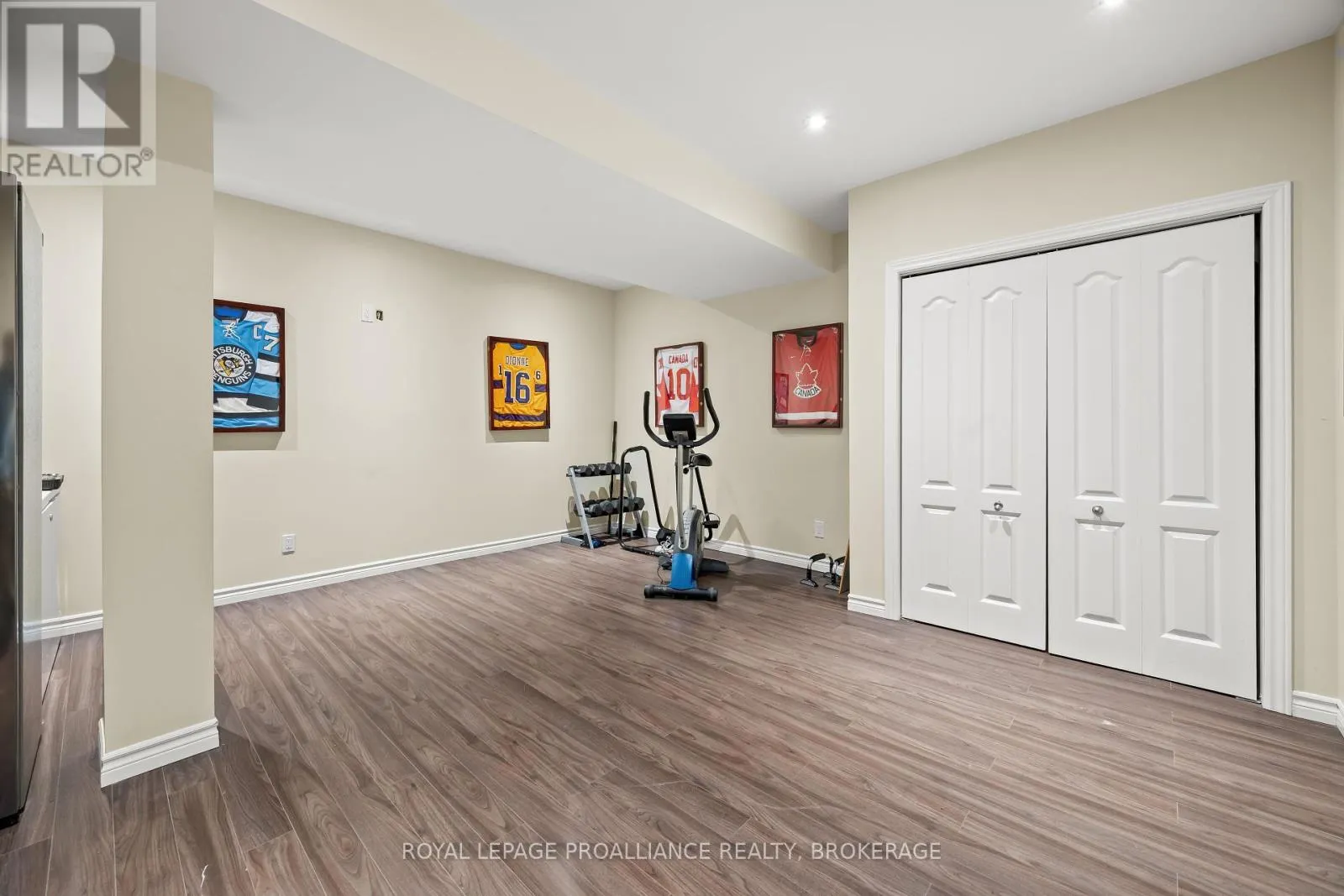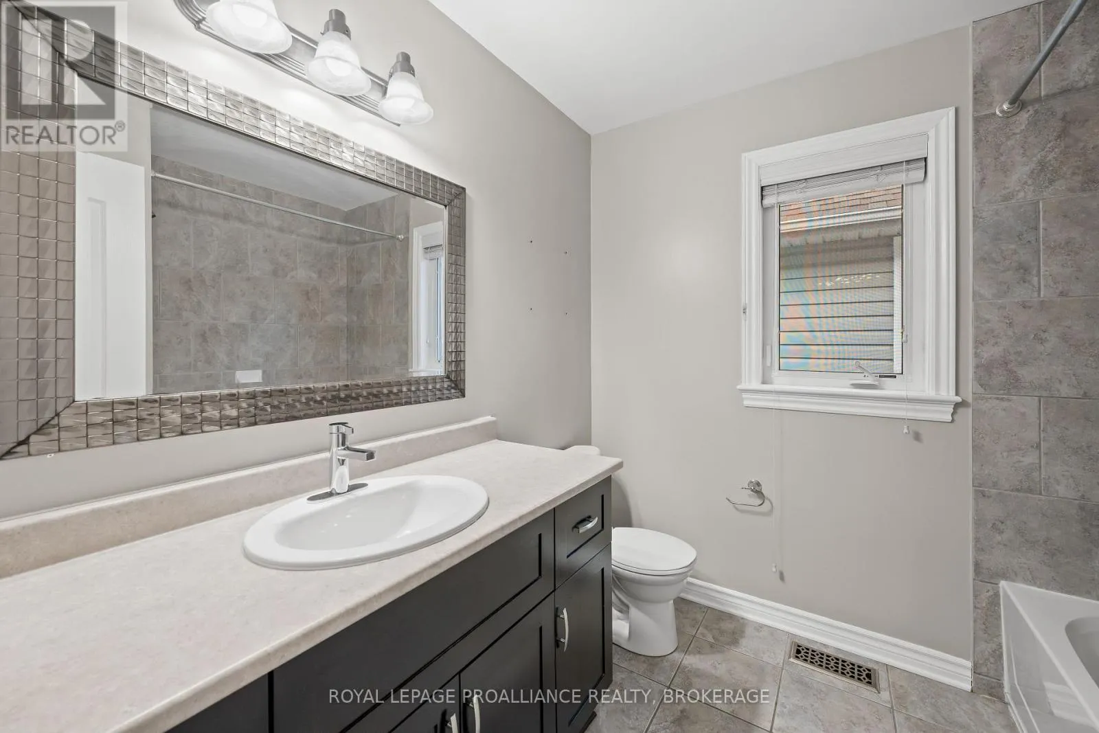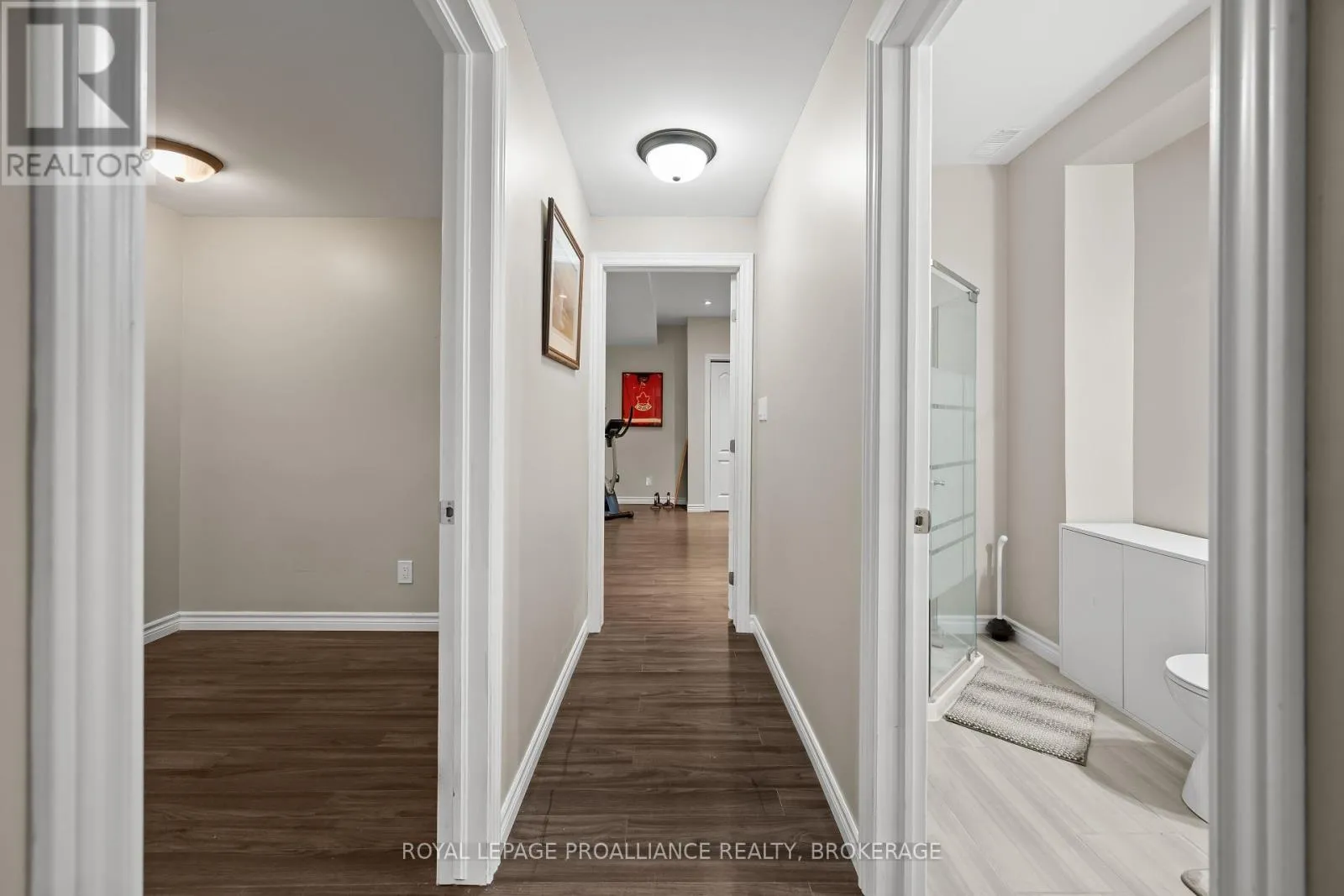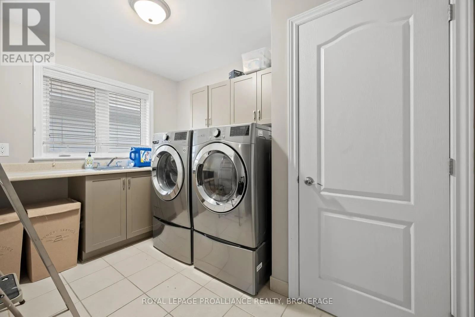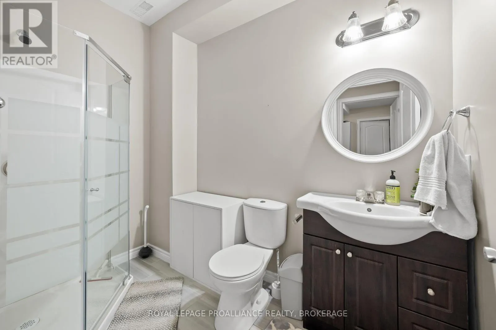 Cross Streets: Fieldstone Dr & Greenwood Park Dr. ** Directions: HIGHWAY 15 TO GORE ROAD, LEFT ON ROSE ABBEY DRIVE, RIGHT ON FIELDSTONE DRIVE. Welcome to this stunning, over 3000 sq ft Tamarack Oxford Model on the highly desirable East End street of Fieldstone Drive. Step into the main floor to find hardwood flooring throughout, an open foyer with adjacent living & dining space combination, an office/den, inside entry to the double garage & a 2pc bathroom. The beautiful open concept kitchen with maple cabinetry, granite countertops, a large kitchen island connected to the massive living room with large windows, a gas fireplace & exterior door to the elevated balcony overlooking the Greenwood Park trail & Butternut Creek. The upstairs also hosts hardwood throughout, 3 large bedrooms, one with walk-in closet & a 4pc ensuite, 2nd floor laundry, another 4pc bath, & finally the primary with 5pc ensuite with his & hers sinks, soaker tub, tiled shower & ample closet space. The fully finished walk-out basement with laminate flooring has a large rec room, an additional 3pc bath with ceramic tile flooring, a games room doubling as a bonus bedroom or office, utility room & storage space. The fully fenced backyard features interlocking brick, a kidney shaped in ground salt water & heated pool along with a pool shed. This beautiful home is located just a few minutes from CFB Kingston & all other east end amenities, & is arguably one of the most fully loaded homes in the area. (id:27476)