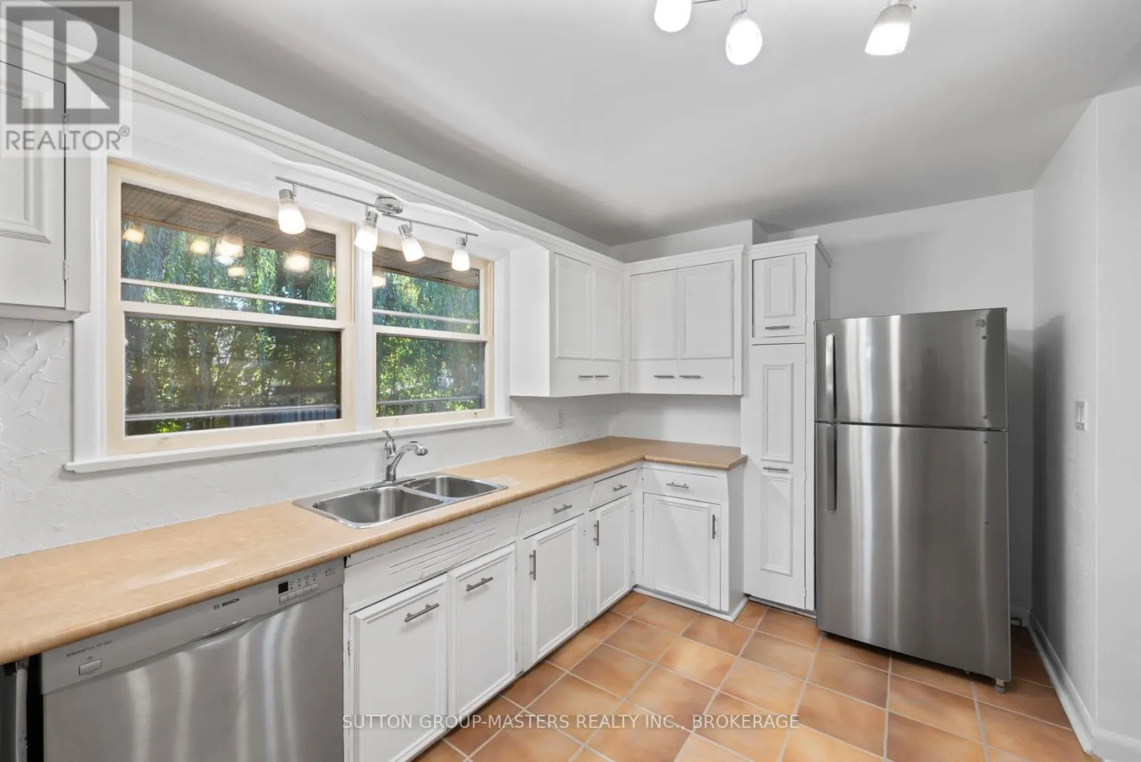 Johnson to Roden to Watts This bungalow, nestled in a bend on a premier street in desirable Calvin Park, is ideal for first time home buyers, empty nesters, retirees, or investors and you will see why! Location counts for this mid-century home on a quiet enclave centrally located offering easy access to downtown, hospitals, the university, the college, and transit. Alternatively walk with the peace of mind that an established friendly family-oriented community offers to the local library, YMCA, Kingston Centre mall and parks. No wonder Watts Crescent attracts professors, teachers, doctors and professionals and families. The large lot gives a feeling of spaciousness and relaxation front and back, starting with the welcoming front deck waiting for your coffee break. The main floor has a mid-century classic design, with hardwood floors, gas fireplace in the living room (2003), 3 bedrooms, and kitchen overlooking the fenced yard for kids and dogs. The yard has a stone patio, covered deck, and a back entrance to the lower level for in-law possibilities, multigenerational or shared living for savvy buyers. The lower living space, with newer flooring, has a bar area a 4th bedroom, spare room, 3 pc bath, and utility room. This all-brick home has been well maintained by only two owners and has been freshly painted, professionally cleaned, tested and free from mold or toxins (2025), has a newer breaker panel, roof fully replaced, (2020), and furnace (2000) maintained annually. The carport has an attached shed for your convenience. Newer appliances are included, home is vacant for a flexible closing date, making your move convenient, and better yet, an easy lifestyle. Newer appliances are included and flexible closing for your convenience. (id:27476)
