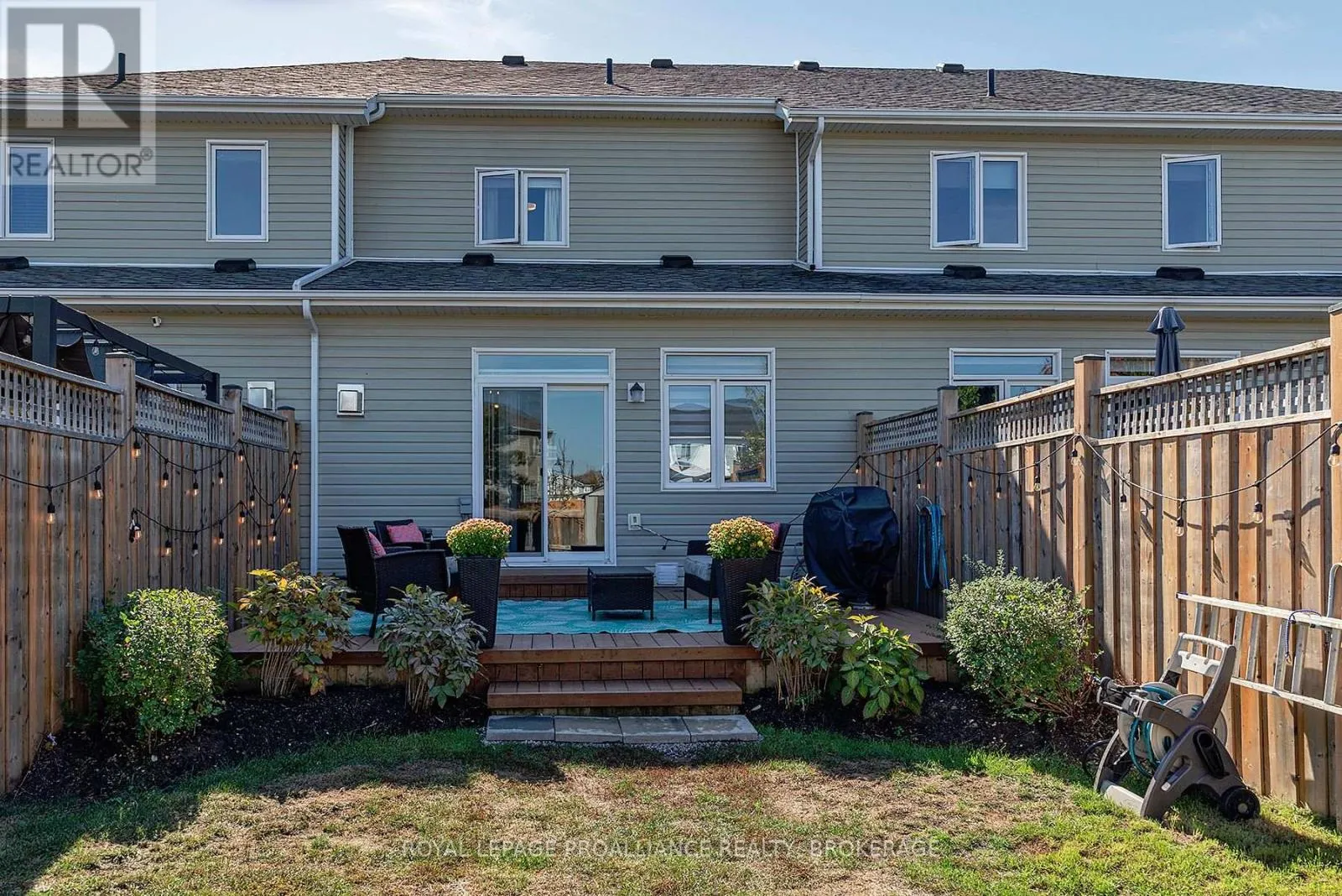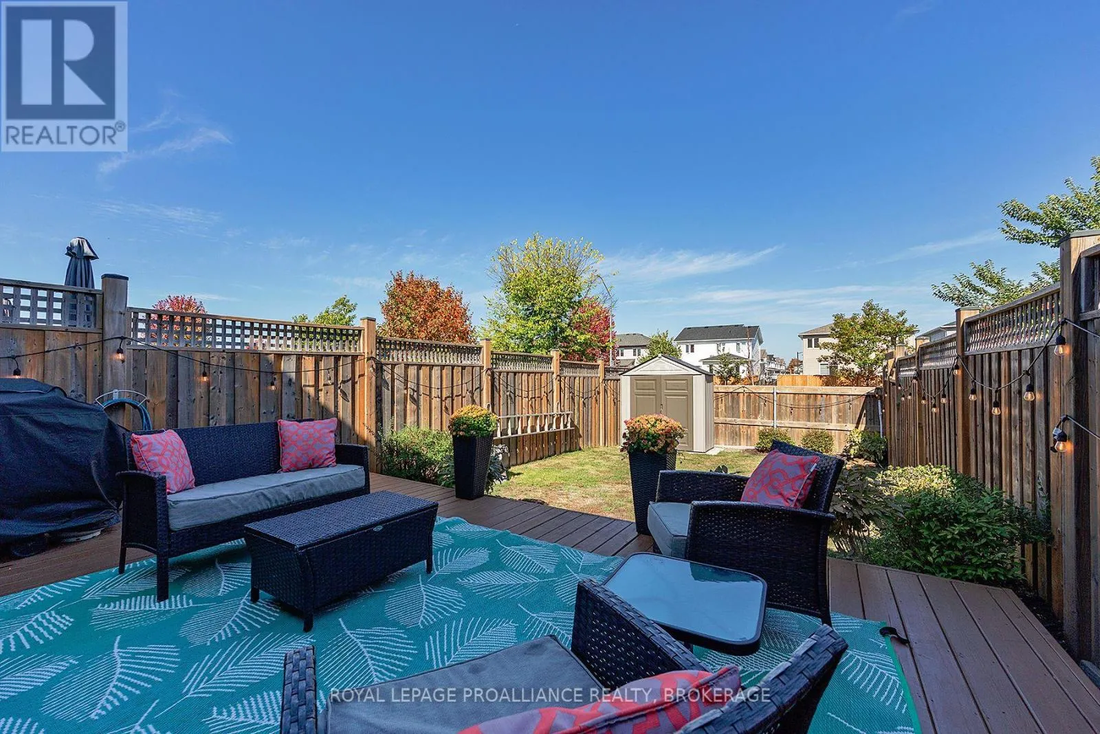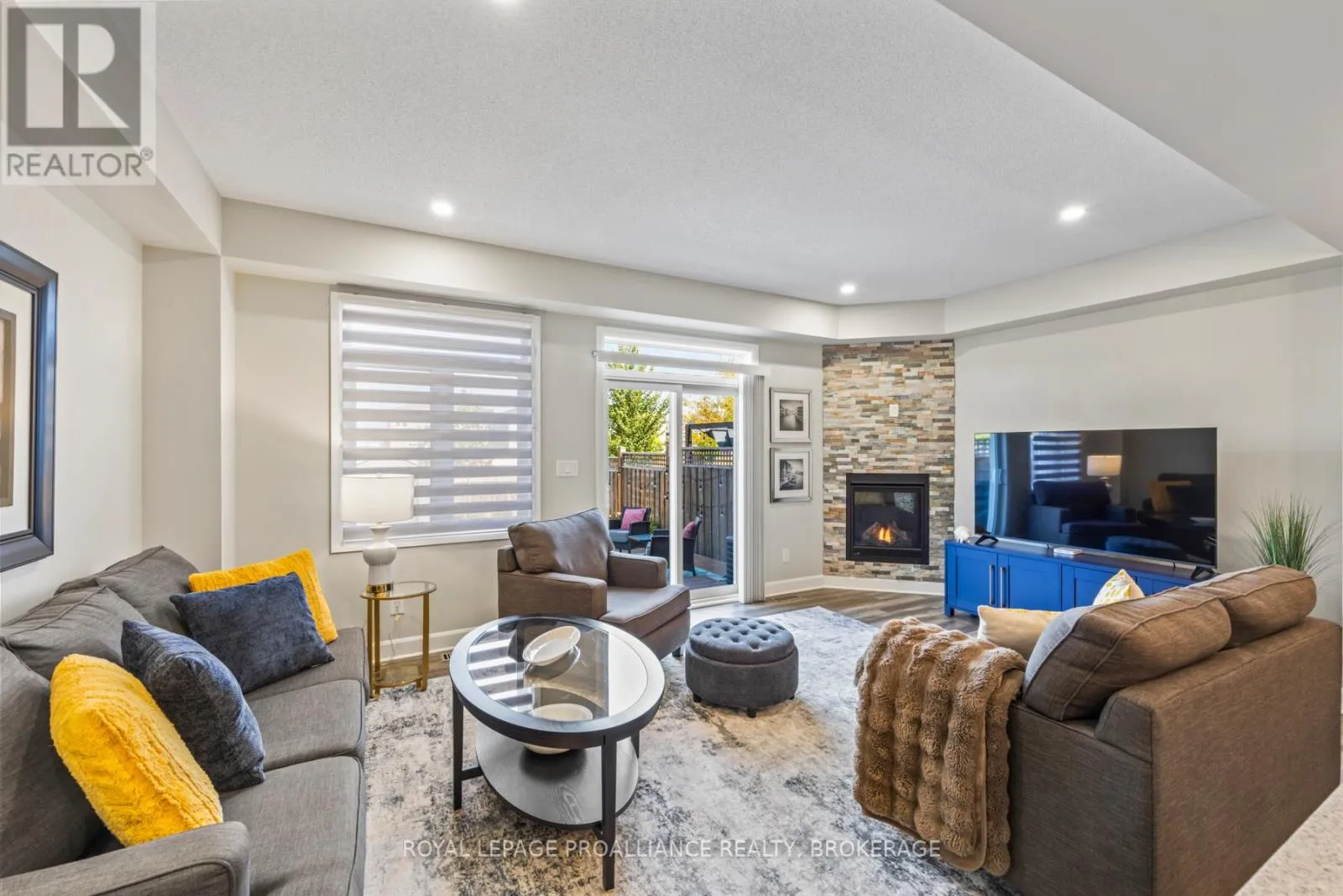 Cross Streets: Princess Street & Woodhaven Drive. ** Directions: Princess Street to Woodhaven Drive to Tremont Drive to Davenport Crescent. This CaraCo built Sunnyside model offers close to 1,600 square feet of above grade living space, modern lines, natural light, and an open concept layout! The main level begins with a tiled foyer, nine-foot ceilings, and a mudroom with laundry and inside access to the garage. From there, the flow turns open: living, dining, and kitchen, all connected by wide-plank flooring. The gas fireplace, now faced in stone from floor to ceiling, grounds the room with texture and warmth. In the kitchen, quartz surfaces meet clean cabinetry and a new backsplash that adds just enough colour and contrast. Most light fixtures have been upgraded and provide the home with the perfect glow from morning to night.Beyond the sliding doors, the fenced yard opens to green space-no rear neighbours, just a deck, a gas line ready for the grill, and a bit of calm at the edge of the city. Upstairs, three bedrooms and two full baths continue the same elegant tone.The primary suite offers a walk-in closet and a private ensuite with a five-foot tiled shower. The lower level waits for future plans, with a bathroom rough-in already in place. (id:27476)