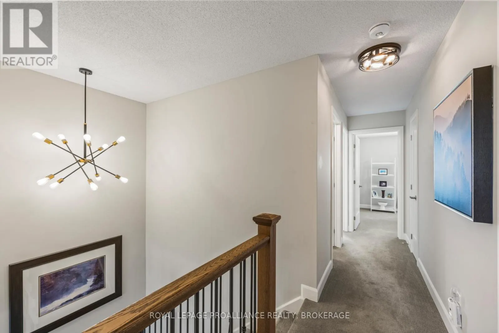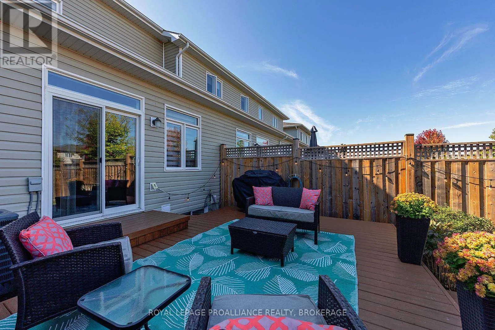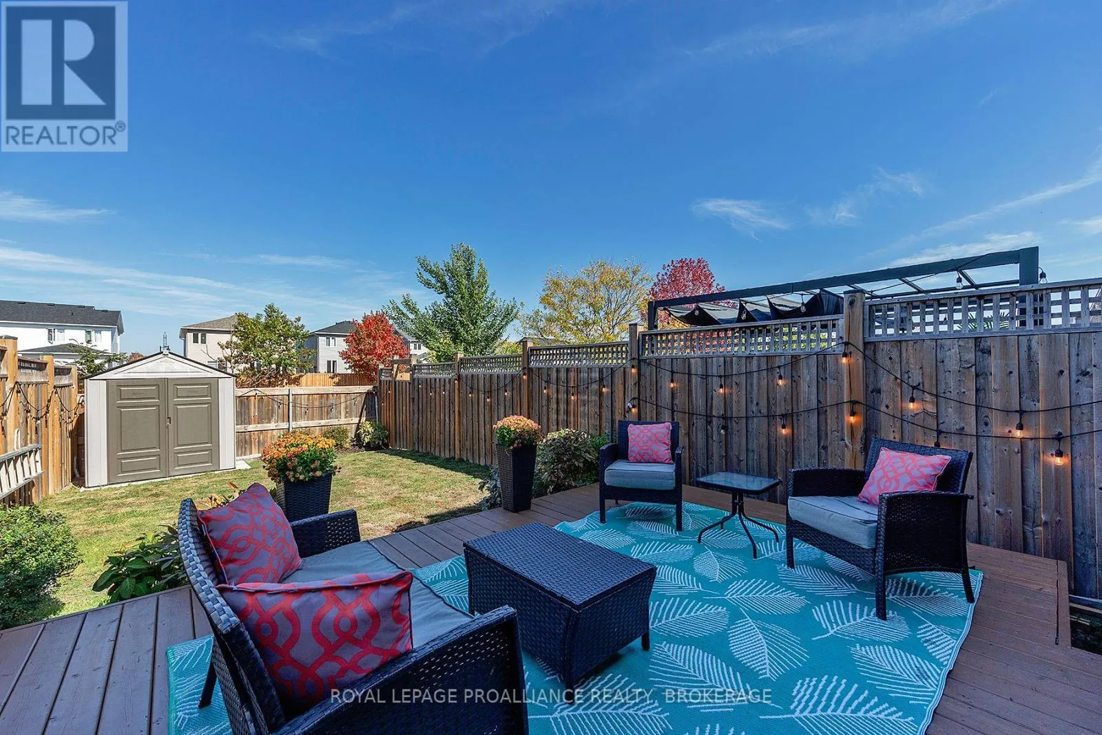Cross Streets: Princess Street & Woodhaven Drive. ** Directions: Princess Street to Woodhaven Drive to Tremont Drive to Davenport Crescent. This CaraCo built Sunnyside model offers close to 1,600 square feet of above grade living space, modern lines, natural light, and an open concept layout! The main level begins with a tiled foyer, nine-foot ceilings, and a mudroom with laundry and inside access to the garage. From there, the flow turns open: living, dining, and kitchen, all connected by wide-plank flooring. The gas fireplace, now faced in stone from floor to ceiling, grounds the room with texture and warmth. In the kitchen, quartz surfaces meet clean cabinetry and a new backsplash that adds just enough colour and contrast. Most light fixtures have been upgraded and provide the home with the perfect glow from morning to night.Beyond the sliding doors, the fenced yard opens to green space-no rear neighbours, just a deck, a gas line ready for the grill, and a bit of calm at the edge of the city. Upstairs, three bedrooms and two full baths continue the same elegant tone.The primary suite offers a walk-in closet and a private ensuite with a five-foot tiled shower. The lower level waits for future plans, with a bathroom rough-in already in place. (id:27476)