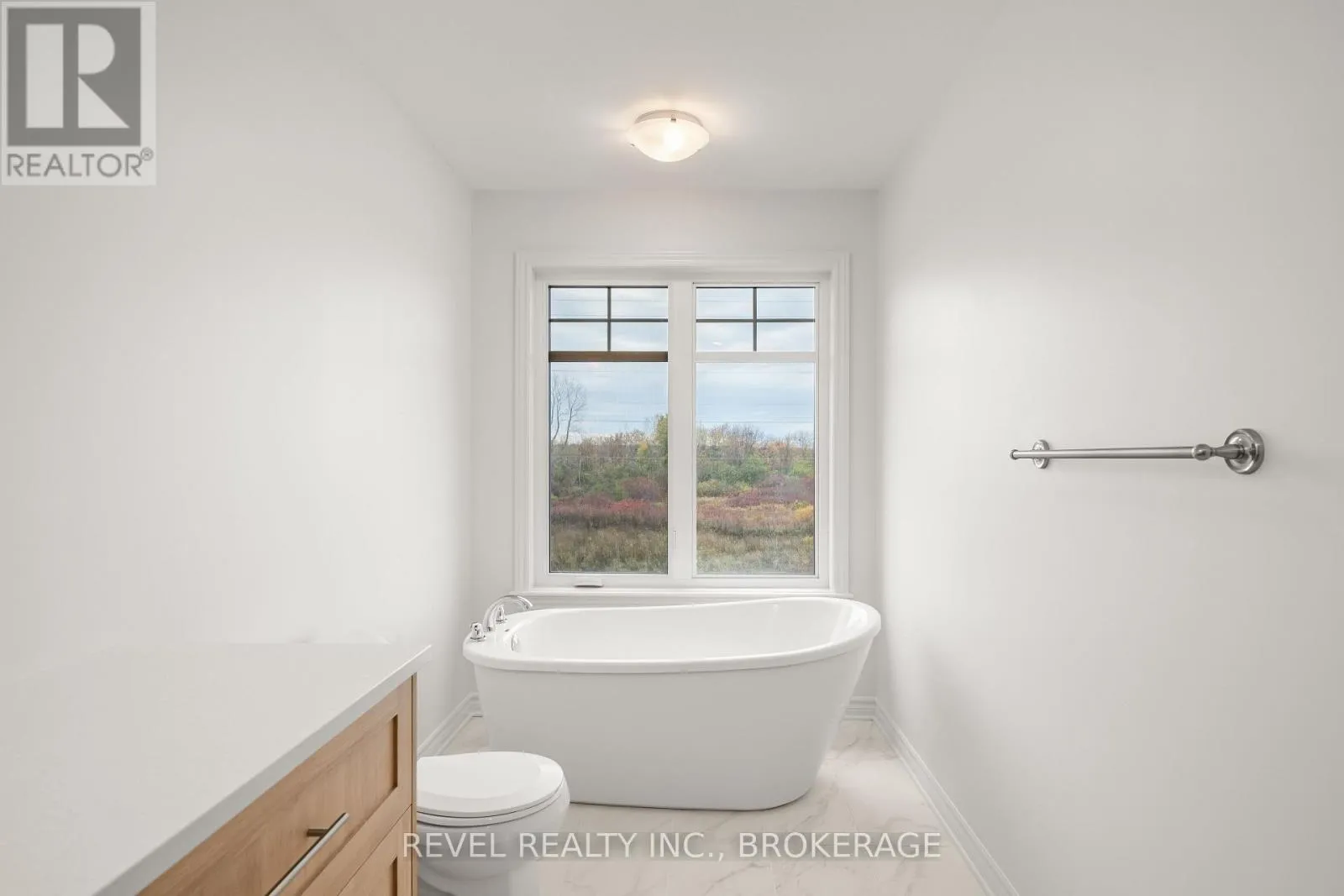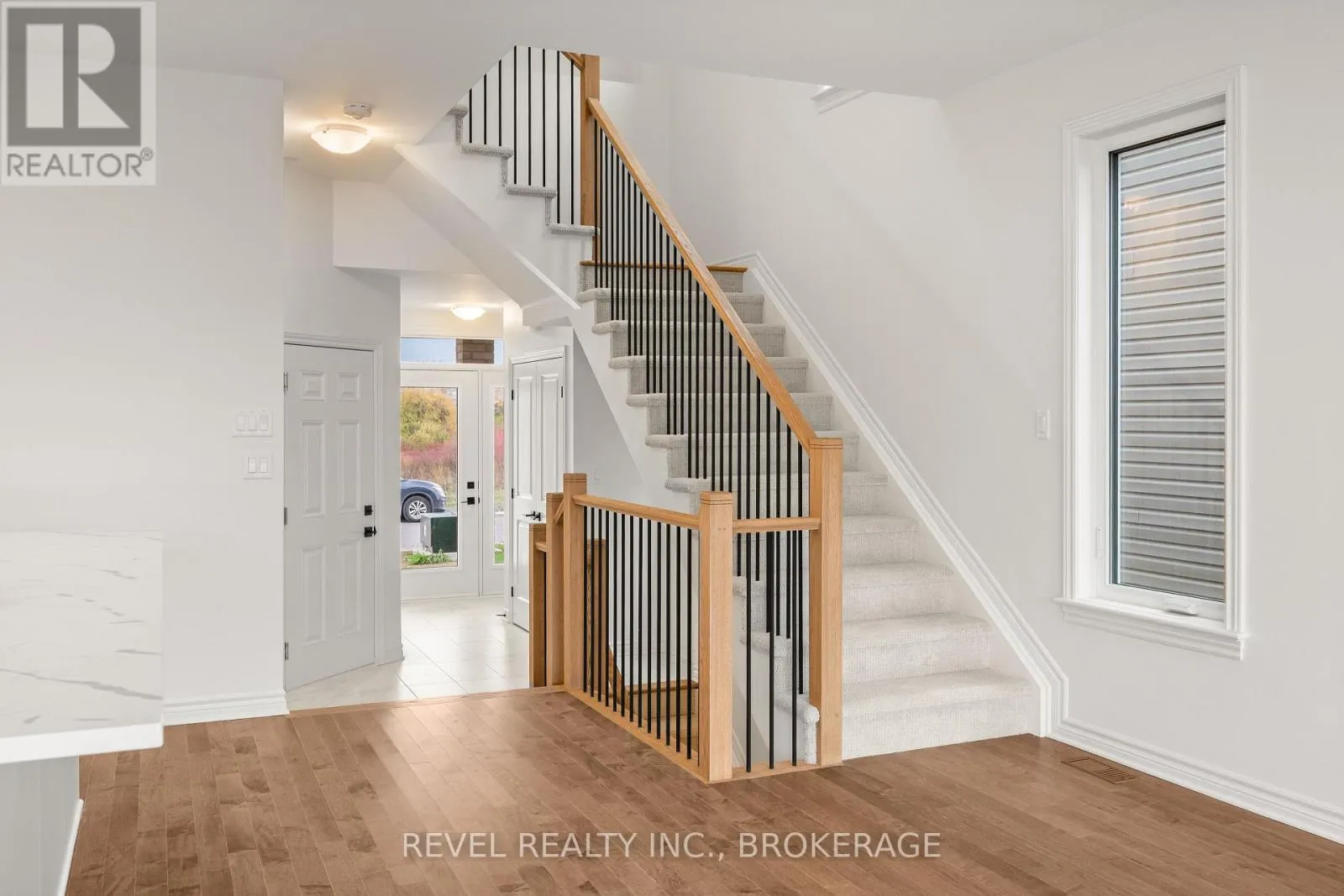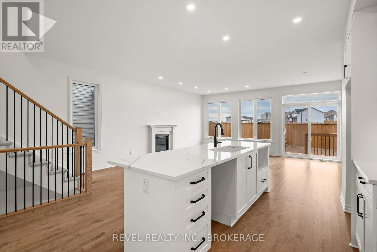 Cross Streets: Centennial and Wheathill to Barrow. ** Directions: Centennial to Wheathill. Welcome to this stunning Camden Model end unit townhouse, showcasing the Craftsman elevation and offering 2,160 sq. ft. of beautifully finished living space in the sought-after West Village community of Kingston. Step inside to find a modern kitchen featuring quartz countertops, white shaker cabinetry, an upgraded sink, and a spacious walk-in pantry-perfect for everyday living and entertaining. The main level is enhanced by elegant maple hardwood flooring, complemented by ceramic tile in the entryway and wet areas. Upstairs, you'll find three bedrooms, includes a spa-inspired primary suite, complete with a freestanding tub, glass-enclosed tiled shower, and a quartz-topped vanity-a true retreat after a long day. The finished lower level adds an additional 450 sq. ft. of versatile living space, ideal for a family room, home office, or gym. This home also includes air conditioning for year-round comfort. Perfectly located, this property is just minutes from the RioCan Centre, Cineplex, Cataraqui Mall, Kingston VIA Rail, Costco, FreshCo, Food Basics, and excellent schools-offering both convenience and lifestyle. Don't miss the opportunity to own this beautifully designed and move-in ready home in one of Kingston's most desirable communities. (id:27476)