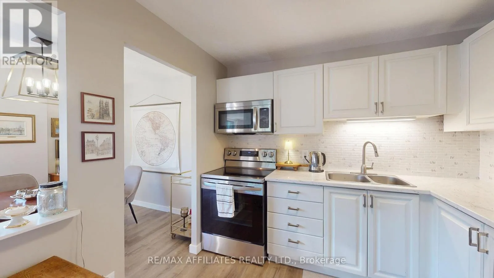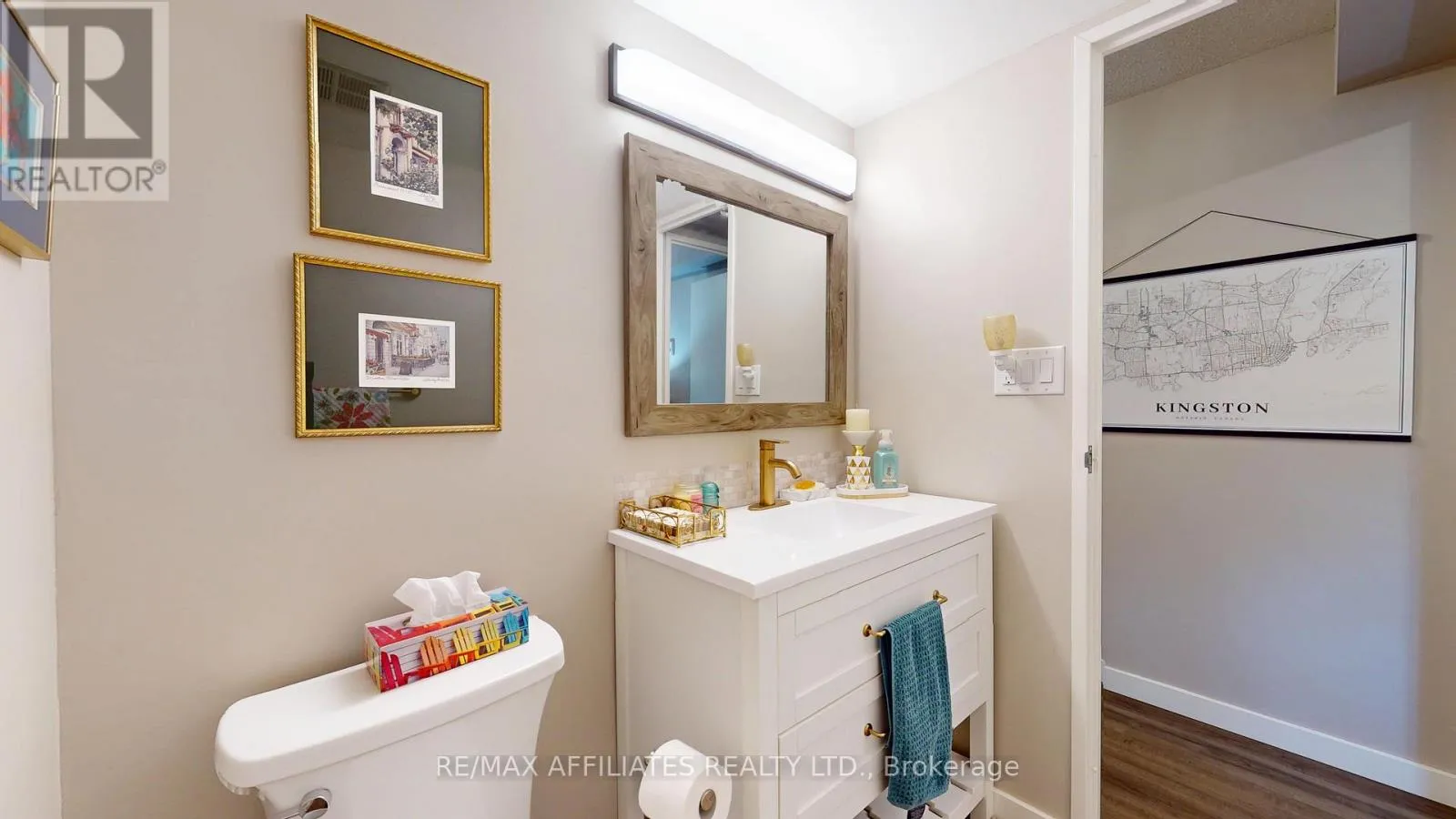 Cross Streets: Highway 15 and Gore Road. ** Directions: From Brockville: Exit 623 for ON-15 toward Kingston/Smiths Falls, Turn left on Route 15/ON-15 S, Turn left on Barrett Court, Turn right. Bright & inviting 2 bedroom, 2 bathroom SOUTHWEST CORNER UNIT in the sought after Barriefield, extensively & tastefully updated in 2022. Updates include vinyl plank flooring throughout, except the tiled main entrance, baseboard heaters, custom window coverings & modern light fixtures. Large light filled living room with brand new (Oct 2025) patio doors leading to spacious southwest facing balcony. Kitchen updated with professionally refinished cabinetry, updated countertops & tiled backsplash. LG stainless appliance package includes refrigerator with lower drawer ice maker, electric stove with air fryer feature, microwave & hood fan. Large primary suite with 2 spacious closets, custom blackout blinds and beautifully modernized 4 piece ensuite. Second bedroom is adjacent to the main 3 piece bathroom. Both bathrooms updated with modern vanities, faucets, mirrors, lighting & low-flow toilets. Insuite laundry with LG stackable washer/dryer located in large storage room perfect for seasonal storage or expansive pantry. Meticulously cared for and ready to move-in! One designated parking spot. The building boasts some fantastic amenities: indoor pool, outdoor roof top pool, sauna, exercise room, amenity room, live-in caretaker. Prime east end location, minutes to downtown Kingston, shopping, parks and schools. (id:27476)
