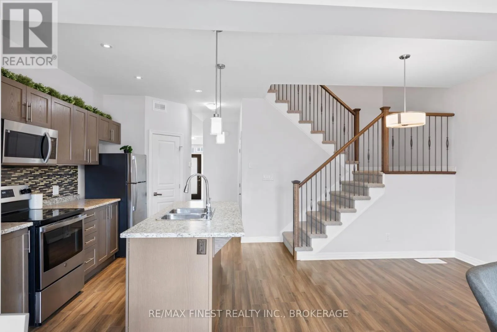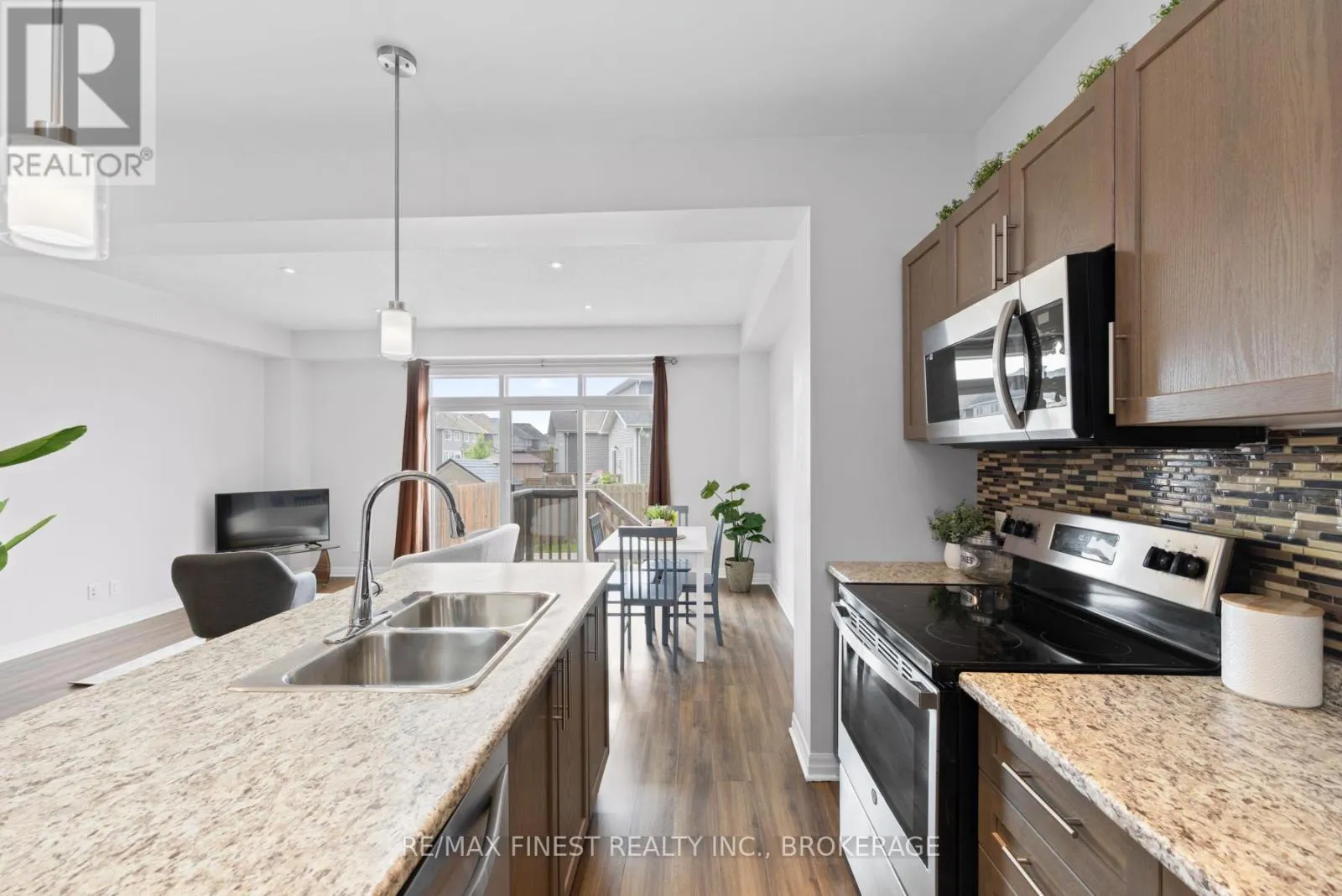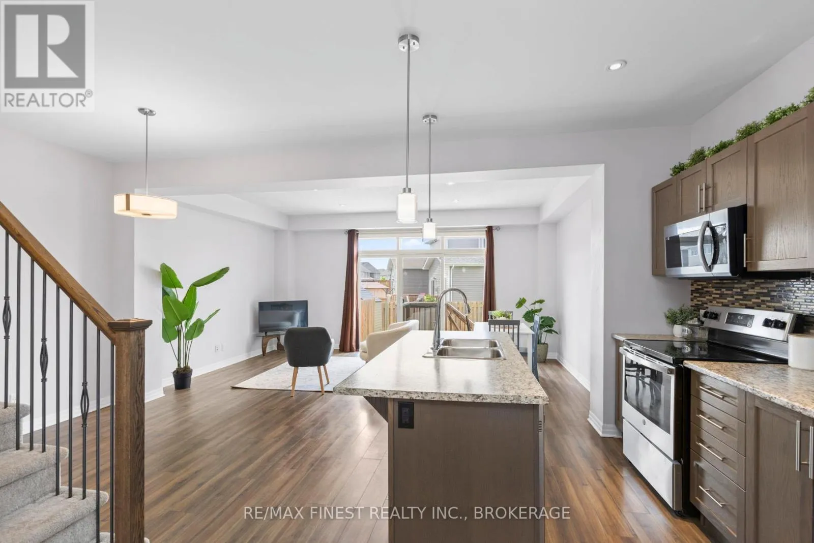 HWY 15 & WATERSIDE WAY LOCATION, LOCATION. . . Welcome to this stunning East End of Kingston end unit townhouse with attached garage. featuring 3 spacious bedrooms and 3 bathrooms! Step into an inviting open concept kitchen and living filled with stunning lighting, perfect for entertaining and everyday living. The modern kitchen boasts sleek finishes, ample cabinetry, large pantry, and spacious island great for entertaining. Main Floor laundry and inside entry to the garage. Upstairs, you'll find 3 generously sized bedrooms with 2 walk-in closets, including a primary suite with ensuite. Enjoy the privacy and extra natural light that only an end unit can offer. This home is move-in ready with fully fenced backyard. Don't miss your chance to make it yours! walking distance to shopping center and parks, close to schools, 401 and downtown Kingston. (id:27476)