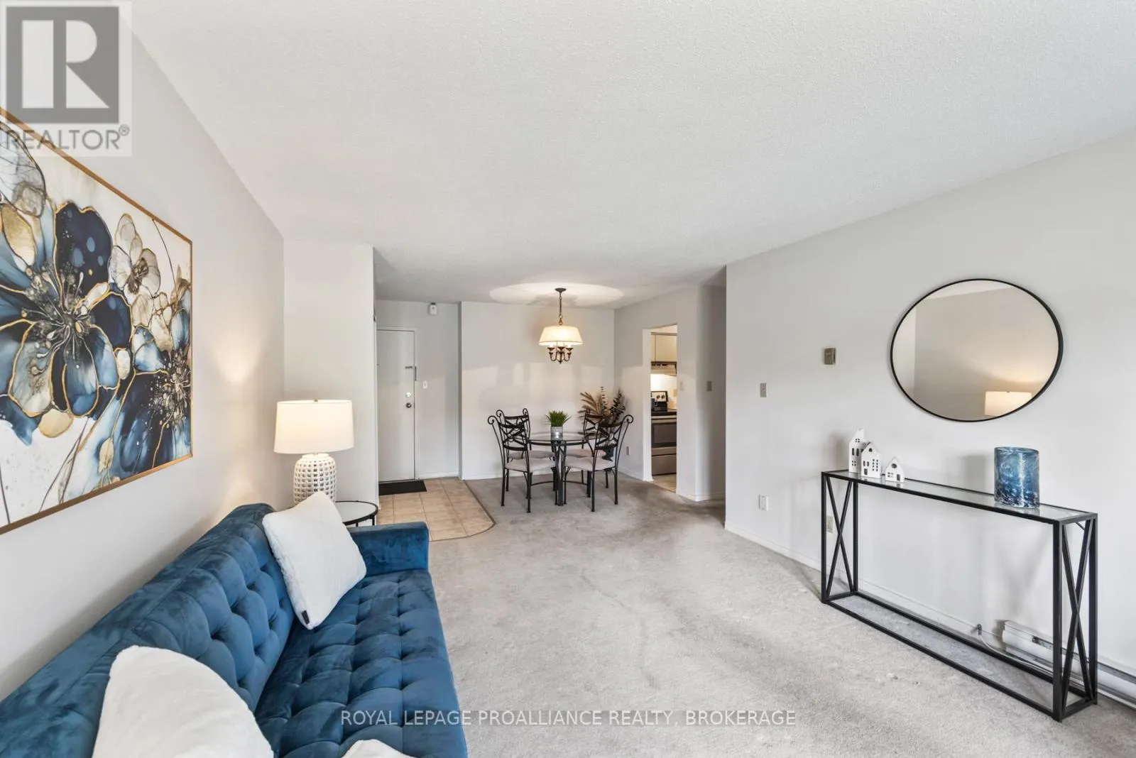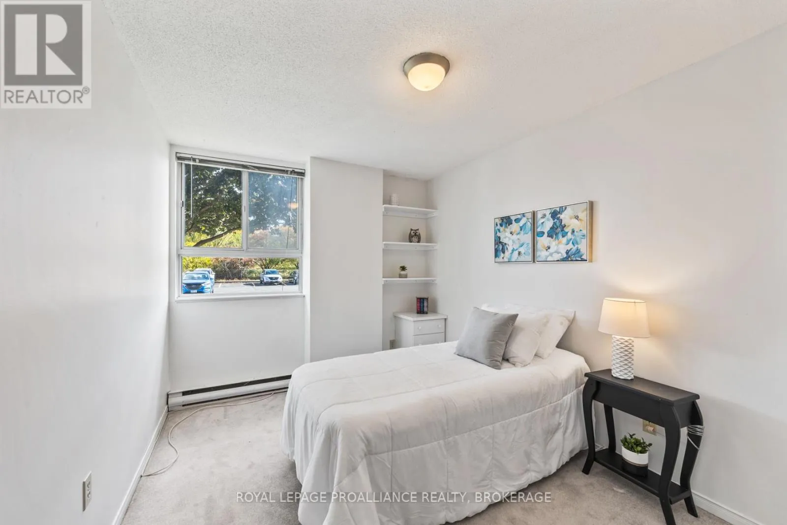 Cross Streets: Princess and Centennial. ** Directions: Princess St to Centennial Dr to Davis Dr. Functionality meets convenience at this corner, main level condominium suite in Waterloo Village. This fabulous 2-bedroom gem offers a turnkey, low-maintenance lifestyle in Kingston's popular west end. Bright, spacious and recently freshly painted, featuring 2 bedrooms, a 4-pce bathroom and an open-concept living/dining area, ideal for both relaxing and entertaining. The kitchen has neutral cabinetry, tile floors and stainless-steel appliances, including a new refrigerator. A handy in-suite storage room plus a linen closet is a bonus and helps keep your living space organized. This end unit enjoys views of the beautiful outdoor pool set among mature greenery and a convenient exclusive parking spot just a few steps away. Condo fees are only $450/mth and include water/sewer, exterior maintenance, lawn maintenance and snow removal. The Valley ridge condominium is a quiet, secure building and is just minutes to shopping, groceries, parks, restaurants, and public transit. Exceptional value and an easy lifestyle - come see for yourself! (id:27476)