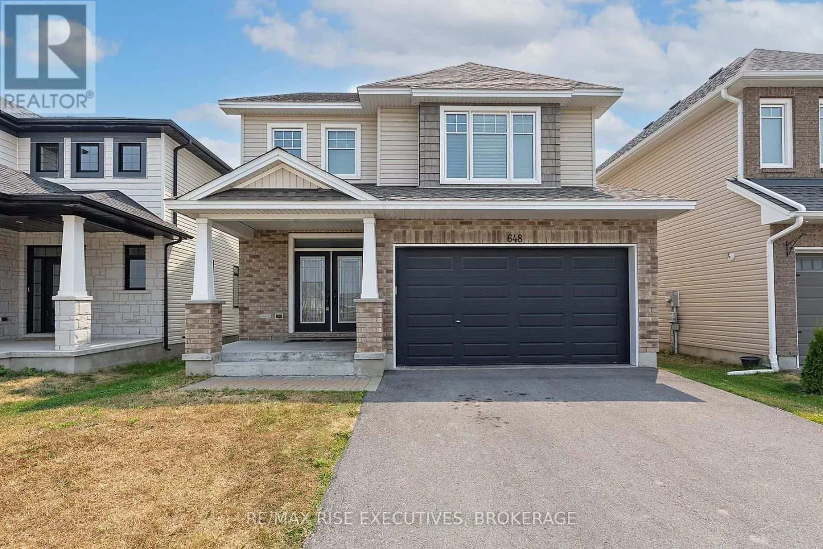 Cross Streets: Stonewalk Dr and Halloway Dr. ** Directions: Hwy 15 to Waterside Way to Stonewalk Dr to Halloway Dr. Welcome to 648 Halloway Dr a fully finished Tamarack Sable model offering 4 bedrooms, 3.5 baths, and flexible living space across three levels. Perfect for multi-generational living! Bright and inviting, the main floor features a chefs kitchen with granite counters, stainless appliances, and an oversized island, plus a home office, mudroom, and garage access. Upstairs, the spacious primary suite includes a walk-in closet, window seating, and a luxe 5-piece ensuite. Three additional large bedrooms and an oversized laundry room add daily convenience. The finished lower level is ideal for extended family, featuring an in-law suite with common entrance, a bedroom and den, 3-piece bath, and a second kitchen. Located on a quiet, family friendly street steps from trails, parks, and playgrounds and just minutes to shopping, CFB Kingston, the 401, KGH, and downtown. (id:27476)