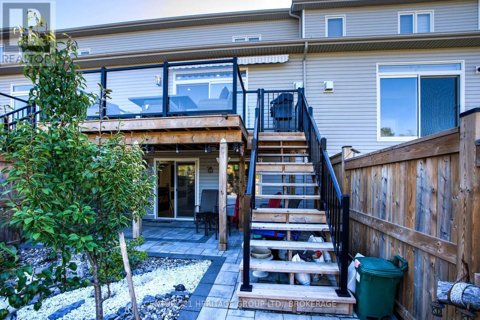 Cross Streets: North on Sydenham Road, turn west on Cataraqui Woods Dr. Turn south on Anderson, turn east on Max Cres. ** Directions: Cataraqui Woods Dr and Anderson. Whether you're a first-time buyer, downsizing, or investing, 1263 Max Cres. offers the perfect blend of space, comfort, and modern finishes! This beautiful interior-unit townhouse with a walk-out basement features 1,715 sq. ft. + a finished rec room, providing over 2,000 sq. ft. of total living space. Enjoy an inviting foyer leading to an open-concept main floor with 9-ft ceilings, quartz countertops, stainless steel appliances, upgraded lighting, modern cabinetry, and no carpet throughout. The living room features a cozy gas fireplace and patio doors to a large deck with an awning, perfect for outdoor dining or relaxing. Upstairs offers 3 bedrooms and 3.5 baths, including a spacious primary suite with a 3-piece ensuite featuring a walk-in shower and walk-in closet. The finished lower level includes a rec room with an electric fireplace, a full bath, and a walk-out to an interlock patio overlooking a Japanese-inspired landscaped garden. Freshly painted in a neutral palette, this home is truly move-in ready. Additional upgrades include 200 amp electrical service, HRV, central air, inside entry to garage, two side-by-side outdoor parking spaces, and tasteful finishes throughout. Additional finished room in the basement ideal as an office, gym or guest space (no egress window). A beautifully maintained home in a desirable area, you'll love everything this property has to offer! (id:27476)