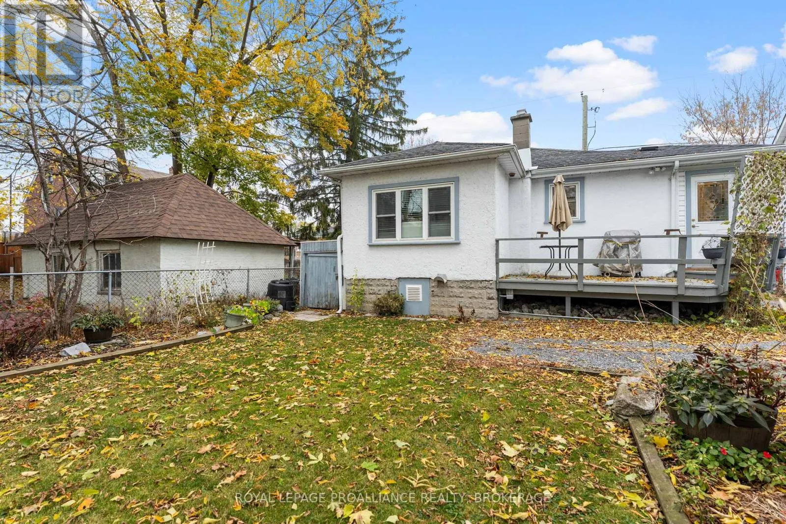 Cross Streets: Division. ** Directions: North on Division left on Stanley. Charming and move in ready this bungalow is perfect for a first time buyer or retired couple. This home has been meticulously cared for and updated over the years. Newer windows throughout, updated kitchen cupboards, gleaming hardwood floors, newer bathroom vanity and much more. Hot water tank has been updated to hot water on demand. Electrical panel updated to breakers as well as newer roof shingles. Close to shopping and restaurants only 15 to 20 minute walk to Queen's University, Hotel Dieu Hospital or Kingston General Hostpital. Private fenced back yard with well landscaped gardens. Large deck off the kitchen that overlooks the back yard. Single detached garage with automatic garage door opener as well as a storage shed to store lawn mower and garden tools. Great price on a great home. (id:27476)