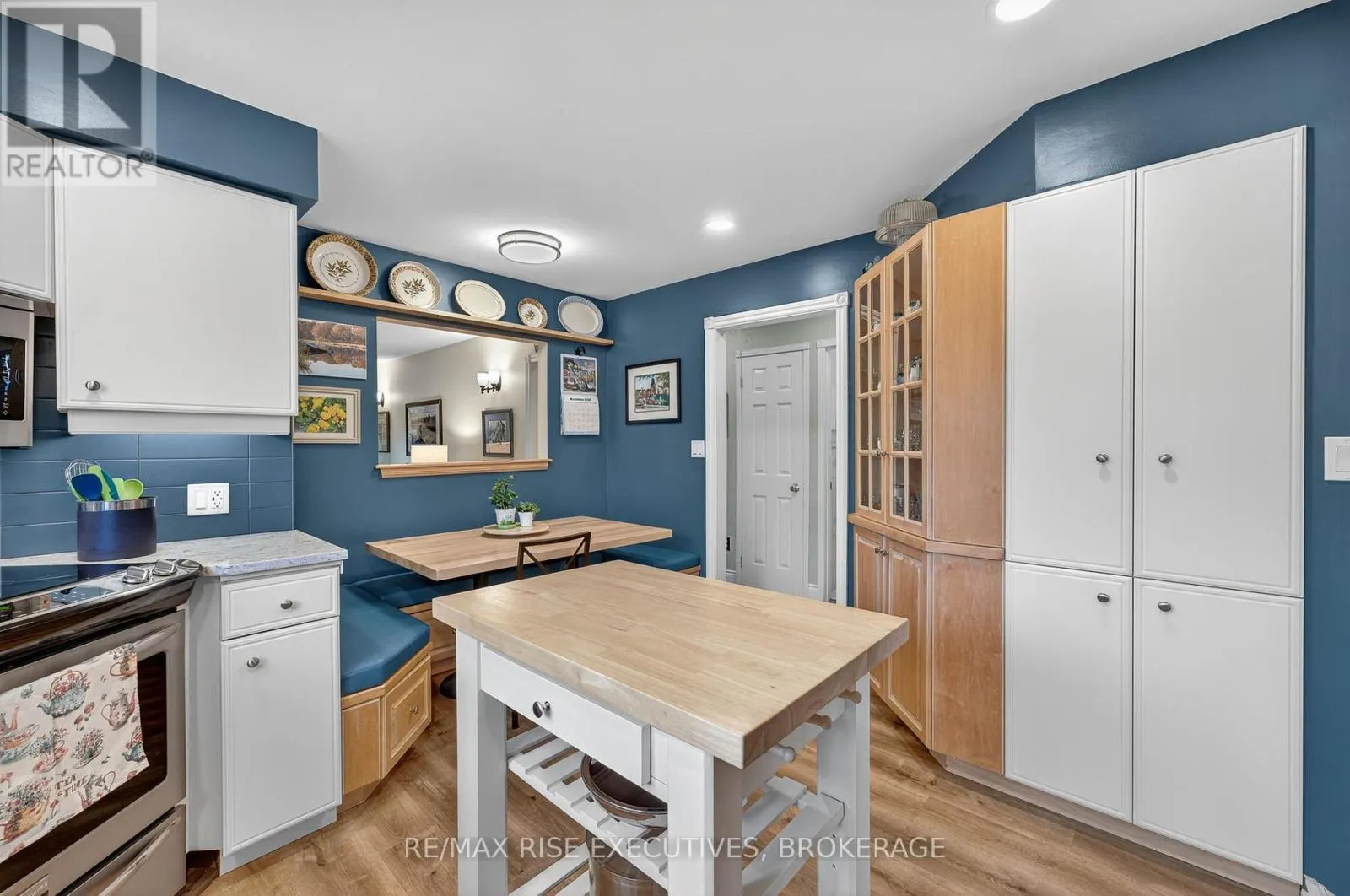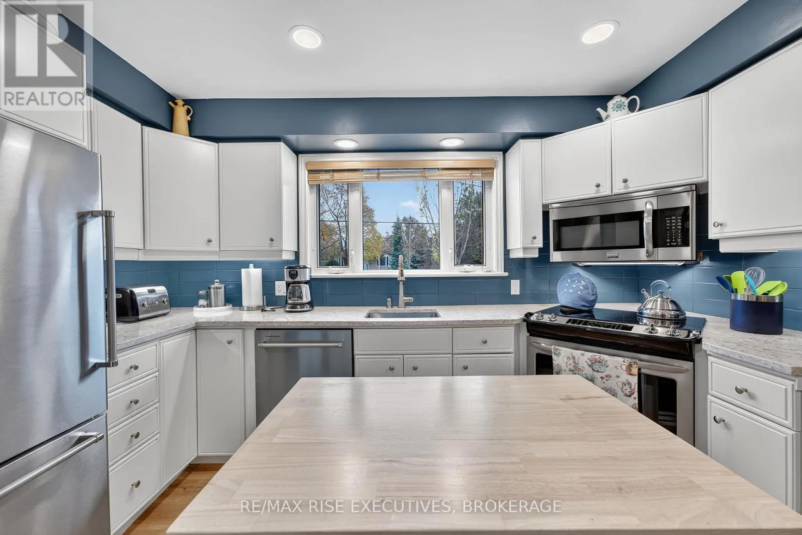 Cross Streets: WOODBINE AND BAYRIDGE DRIVE. ** Directions: EITHER BAYRIDGE TO WOODBINE OR COLLINS BAYRD TO WOODBINE. There is a good reason why this family home hasn't been sold since 1986 - it's tough to leave the place you love. Step inside 990 Woodbine Rd, just steps from Lancaster, Mother Teresa and Holy Cross Catholic Secondary School. This raised bungalow has a cozy main floor plan with 2 bedrooms split by a central dining room. Enjoy entertaining in the living room around the decorative fireplace and the hand scraped mantel. The kitchen has been meticulously updated with quartz counters, tile back splash, and a booth dining nook that looks like it is out of a magazine. The home sits on a large 65x150 ft lot and features a stone, fairy-tale style chapel shed and manicured gardens. The basement is partially finished along with a 2pc bath and 2 more bedrooms, and is awaiting further finishing touches. Restaurants, shopping, and parks just a short walk up the street - this is Kingston west end at its finest. (id:27476)
