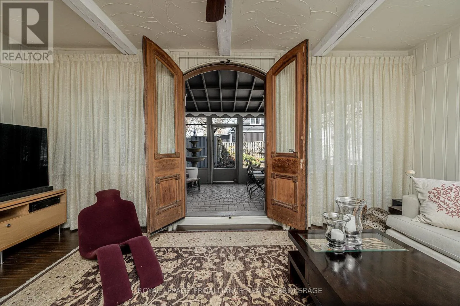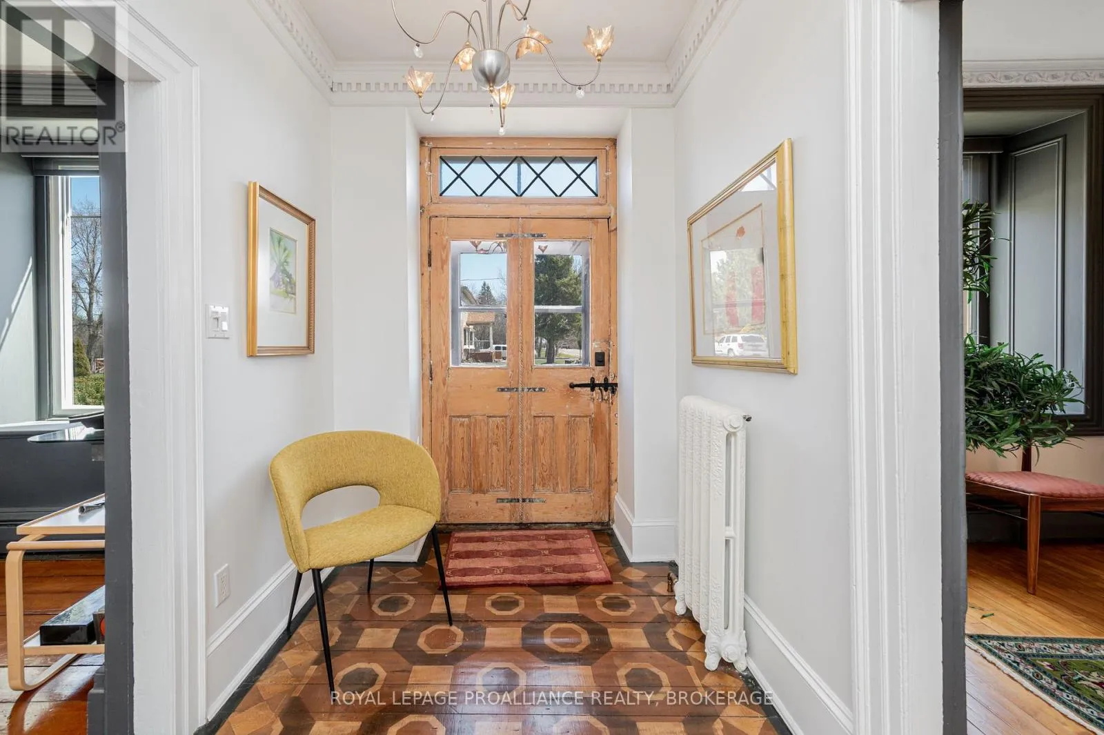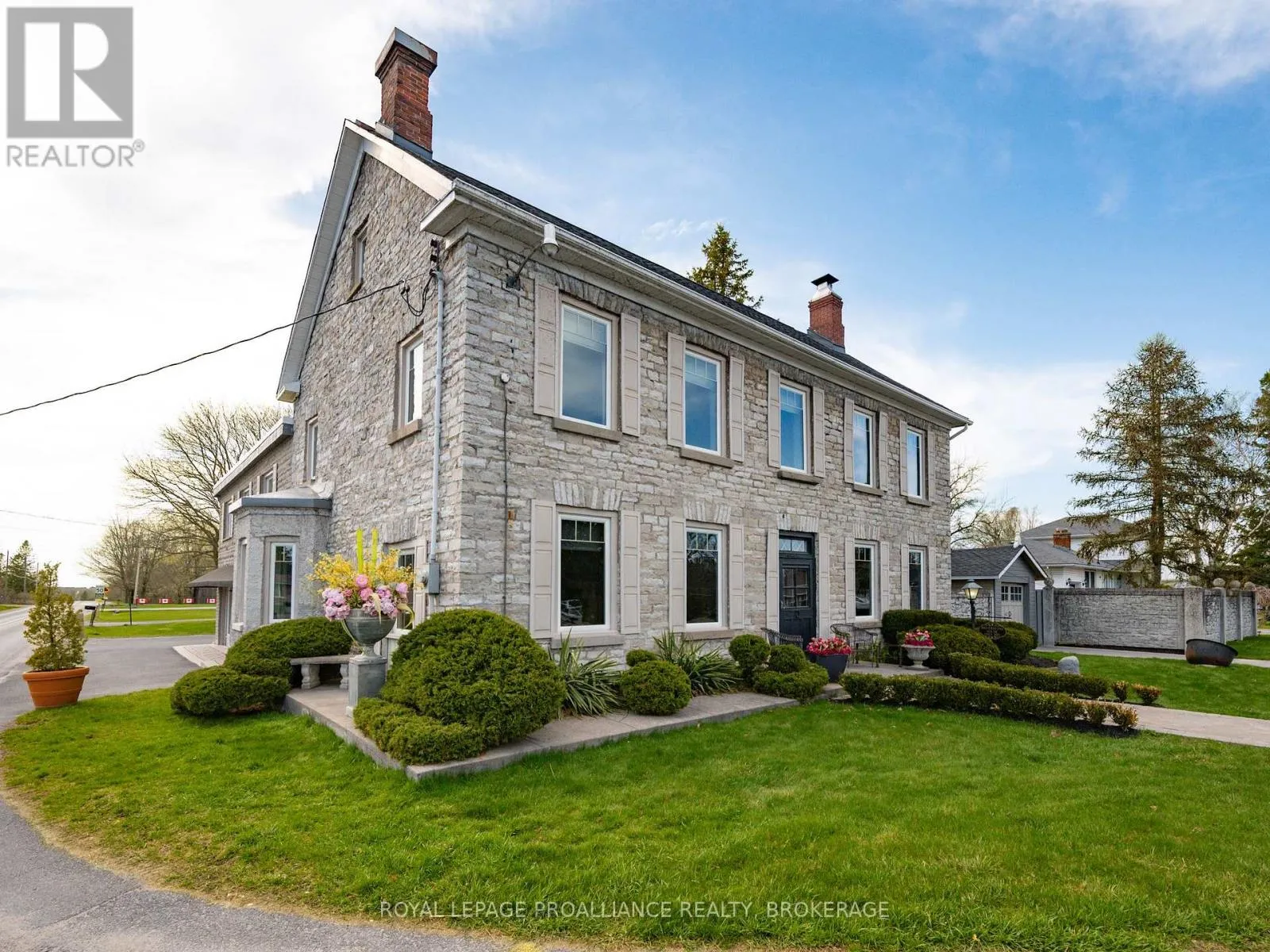 on the corner of Sydenham Road and Burbrook Road Welcome to Silverstone House - Where Historic Grandeur Meets Business Opportunity. Tired of paying business rent? Zoned for both residential and commercial use, this stately stone home offers parking for up to nine vehicles outside the adjoining office-making it ideal for live/work arrangements or income-generating opportunities. Timeless limestone architecture blends seamlessly with bold, modern design in this one-of-a-kind Kingston landmark. Built in 1825 by the city's first mayor as a stagecoach inn, Silverstone House has been meticulously transformed over the past 30 years into an elegant and eclectic designer residence. Behind its classic facade, the interior surprises and delights: hand-painted finishes, intricate tilework, slate kitchen counters, and sun-filled rooms-remarkably bright for a limestone structure. Thirty-inch-thick stone walls provide exceptional soundproofing, creating a quiet retreat with close proximity to the 401 and city central. Host and unwind in your own private oasis featuring a spacious screened porch and beautifully walled perennial gardens-perfect for relaxed, bug-free entertaining. The home's former ballroom now serves as a grand primary suite, while the original men's bar has been reimagined as a gracious dining room. A carved pineapple fireplace surround-a rare Canadian artifact-anchors the welcoming living room, and a vaulted third-floor party room adds a final touch of drama and versatility. The standout feature: a 1,487 sq. ft. separately accessed commercial office space spanning two floors. Ideal for studios, clinics, creative workspaces, or rental income, it could also be converted back to a two-car garage with living quarters above. From its historic charm to its commercial flexibility, Silverstone House is a rare treasure-where Kingston's rich past meets stylish modern living. (id:27476)
