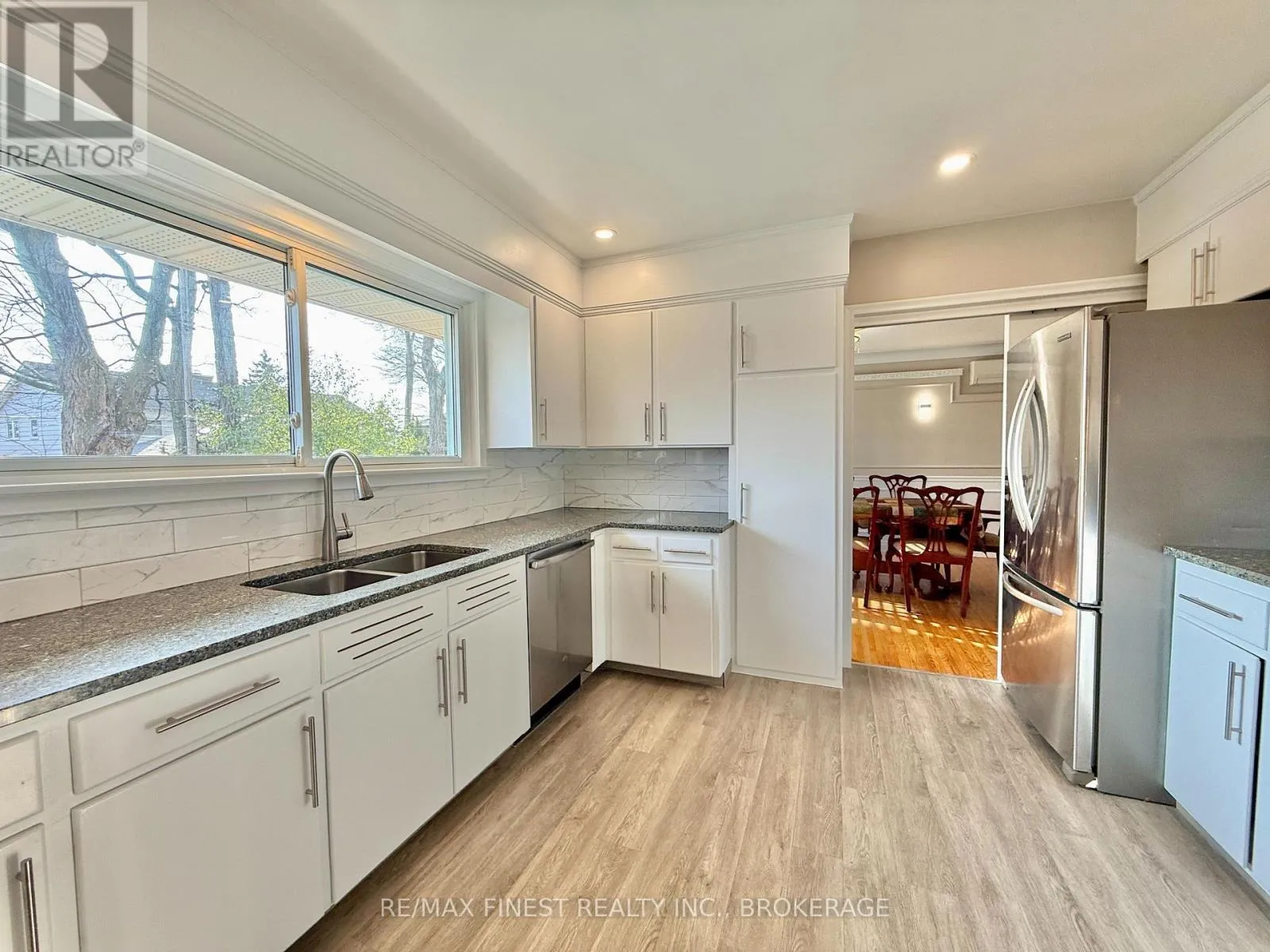 Cross Streets: Roden St, Mowat Ave, Portsmouth Ave, Dickens Dr. ** Directions: Left onto Sir John A. Macdonald Blvd, right onto Johnson St. WOW!! This beautifully renovated 6 BEDROOM 4 level side split with attached DOUBLE DEEP GARAGE is ideally located just minutes from Queen's University, St. Lawrence College, downtown Kingston, and Lake Ontario and features a gorgeous NEW KITCHEN, with stainless steel appliances, granite countertops and backsplash, bedrooms and bathrooms on three separate levels, hardwood floors and an OVERSIZED INGROUND POOL on the sunny south side of the property! Don't Miss Out!! BRAND NEW architectural roof November 2025 (id:27476)