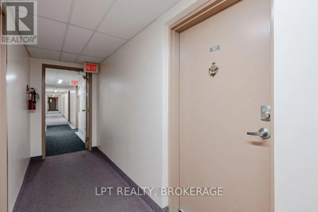 Cross Streets: Centennial Drive. ** Directions: Centennial Drive to Kingsdale Ave. This updated 2-bedroom, 1-bath condo offers comfortable living in a calm, well-cared-for building in central Kingston. Located on the main level with no steps required, it provides excellent accessibility for all lifestyles. The unit features modern finishes, refreshed flooring, new interior doors, a clean and updated bathroom, and a practical kitchen with plenty of storage. Recent improvements, including new baseboard heaters and 2025 electrical upgrades, provide efficiency and peace of mind. Residents enjoy convenient on-site amenities such as an elevator, common laundry, secure access, and dedicated parking. Transit is right at the street, and the building sits perfectly between downtown Kingston and the West End, making day-to-day errands simple. St. Lawrence College is only a 7-minute drive, and Queen's University is just 11 minutes away. A great choice for buyers seeking a move-in-ready home-this one deserves a spot on your viewing list. A SHOWING FEE OF 50% OF THE SELLING SIDE COMMISSION (PLUS HST) WILL BE WITHHELD BY THE LISTING BROKERAGE IF THEY INTRODUCE/SHOW CO-OPERATING BROKERAGE'S EVENTUAL BUYER, BUYER'S SPOUSE, PARTNER OR IMMEDIATE FAMILY MEMBER TO THE PROPERTY THROUGH A PRIVATE SHOWING. (id:27476)