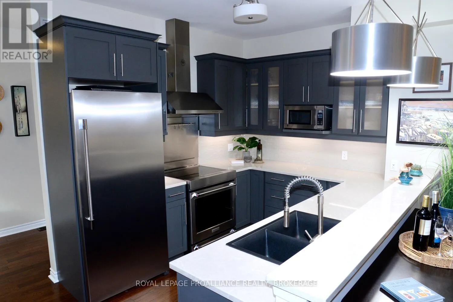 Cross Streets: ORDINANCE ST. ** Directions: PRINCESS ST TO WELLINGTON ST. JUST PAST ORDINANCE. This executive end unit 3-storey town home, known as 'The Stables" designed by the late Mac Gervan, is perfectly positioned just steps from the city's waterfront and vibrant downtown core. This sophisticated residence blends modern luxury with exceptional functionality, offering premium finishes and thoughtful design throughout. The upper level features vaulted ceilings in the bedrooms, including a serene primary retreat with a charming Juliet balcony. Indulge in the spa-inspired main bath showcasing a heated marble floor, deep soaking tub, and oversized glass shower - your private oasis! The bright and open kitchen/living area is ideal for entertaining, complete with hardwood floors, upgraded stainless steel appliances, a separate dining nook and a generous pantry. A convenient 2-piece bath combined with laundry area completes this level. The main floor welcomes you with a spacious foyer and hardwood flooring, along with a private rear entrance to a dedicated office area - perfect for a home-based business or quiet workspace. Another 2-piece bath adds to the practicality of this level. A finished basement rec-room provides additional living space for movie nights, a gym or hobbies, while the utility room offers excellent storage. Stylish, versatile and just moments from waterfront walking paths, dining, and entertainment - this executive town home delivers and unbeatable urban lifestyle! (id:27476)