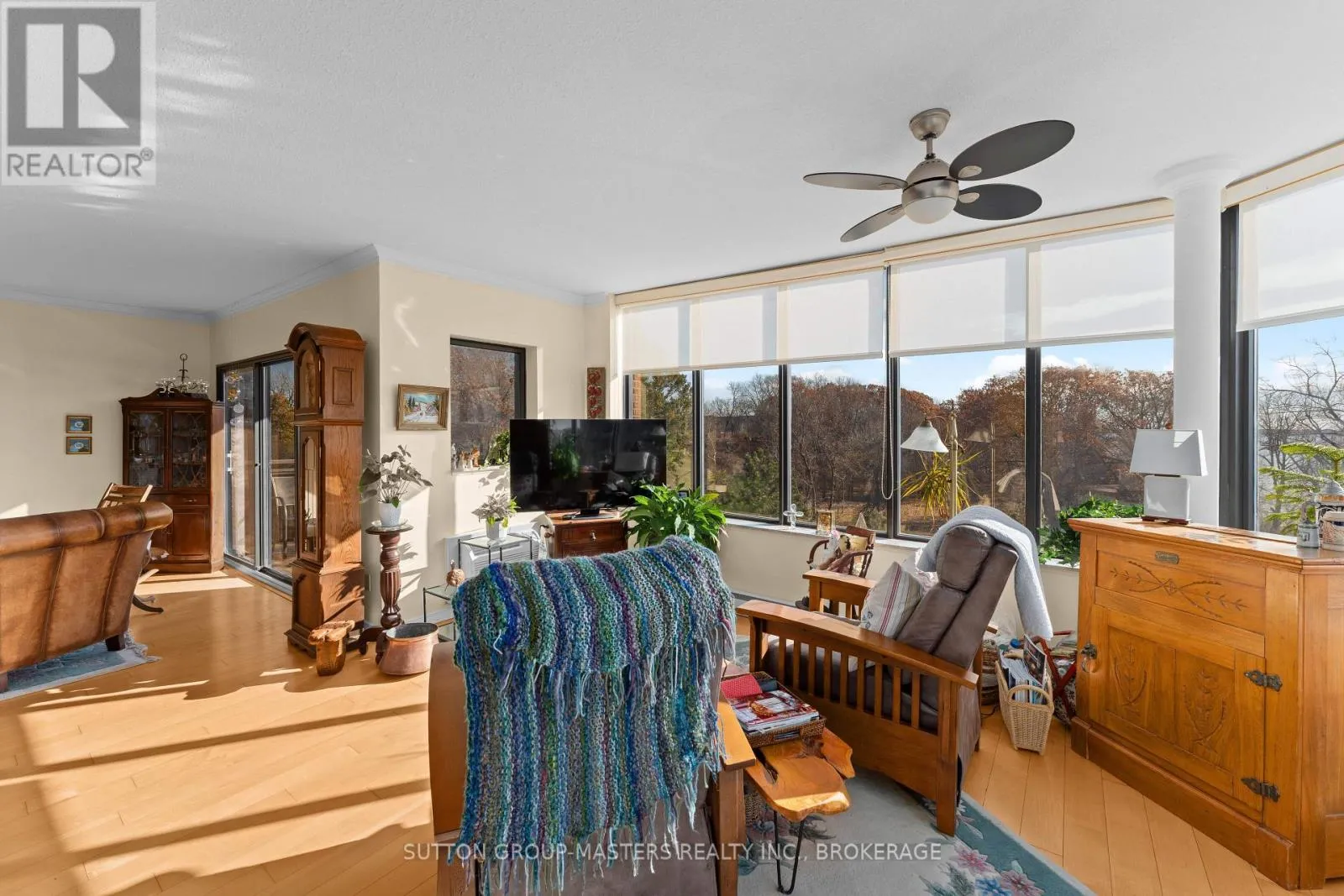 Cross Streets: King St & Portsmouth. ** Directions: Portsmouth to King St W. Welcome to Suite 406 at 1000 King Street West - Kingston's most prestigious and sought-after addresses. This South-West facing 2-bedroom, 2-bath Executive Suite offers elevated living with a bright, open-concept layout and two exceptional balconies capturing serene views of the Park and Lake. From the moment you enter, the space feels calm, refined and thoughtfully designed. The beautifully appointed Kitchen provides both style and function, ideal for the home chef and the entertainer alike. The luxurious primary suite features an impressive walk-through closet leading to a spa-inspired ensuite complete with a European-style walk-in shower, delivering a boutique hotel experience at home. Generous, well-planned storage throughout and in-unit laundry enhances the comfort and practicality of the suite. Perfectly positioned steps from the Cataraqui Golf & Country Club and historic Portsmouth Village, this location offers quick access to Downtown Kingston, Hospitals, Waterfront Trails, Shops, Restaurants and Transit ensuring everyday convenience at your doorstep. The building sets the standard for Executive Living with an extensive list of amenities, including underground parking with a car wash bay, ample visitor parking, a newly updated indoor pool (set for completion Feb '26), Jacuzzi, Sauna, fully equipped Fitness Centre, Tennis / Pickleball Court, Games Room, Library, Greenhouse, beautifully maintained gardens, an updated guest suite and a welcoming common room ideal for gatherings. With a warm and engaged resident community, this property offers the perfect blend of luxury, lifestyle and natural beauty. Here's your opportunity to own an Executive Suite in Kingston's most Prestigious Buildings. (id:27476)