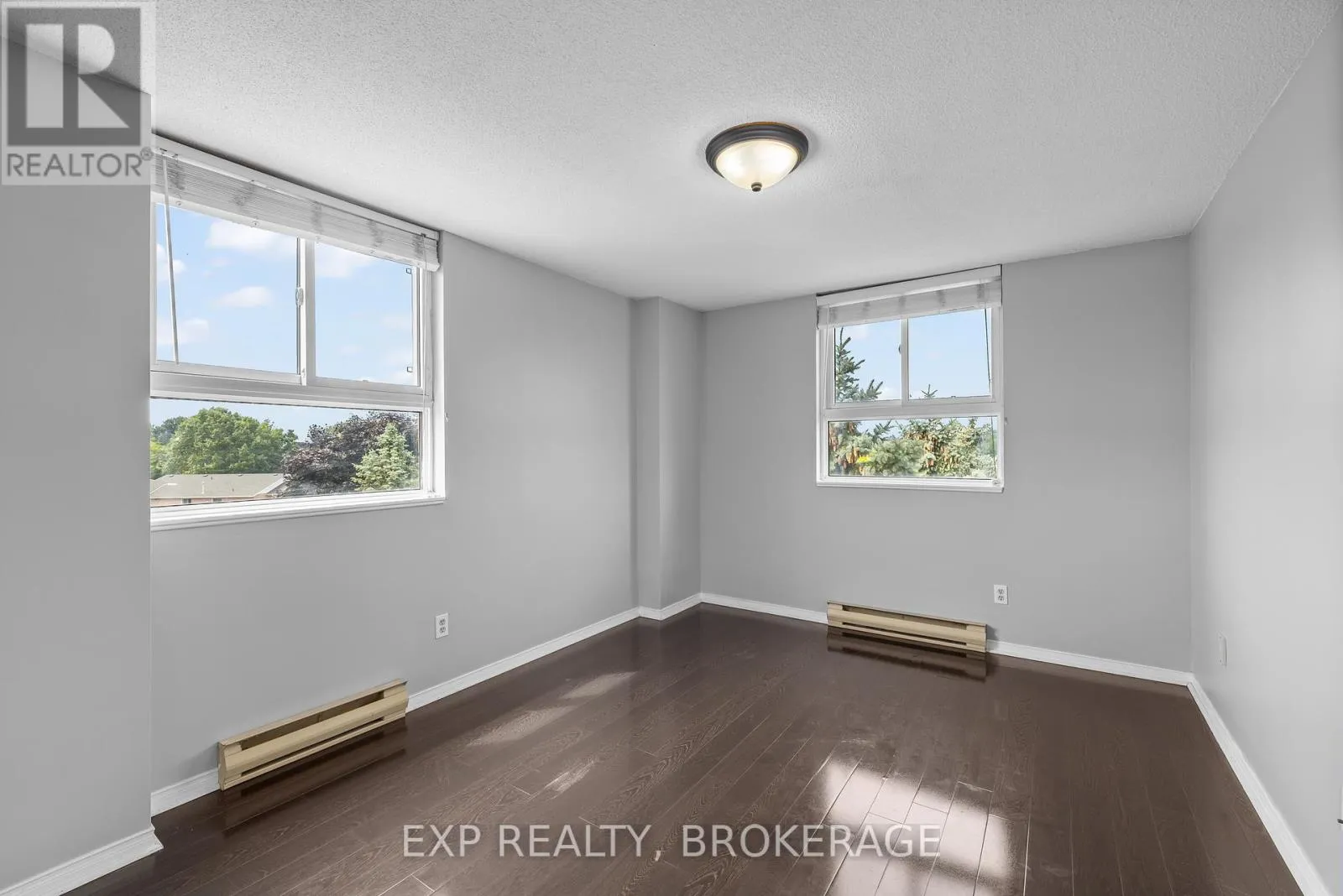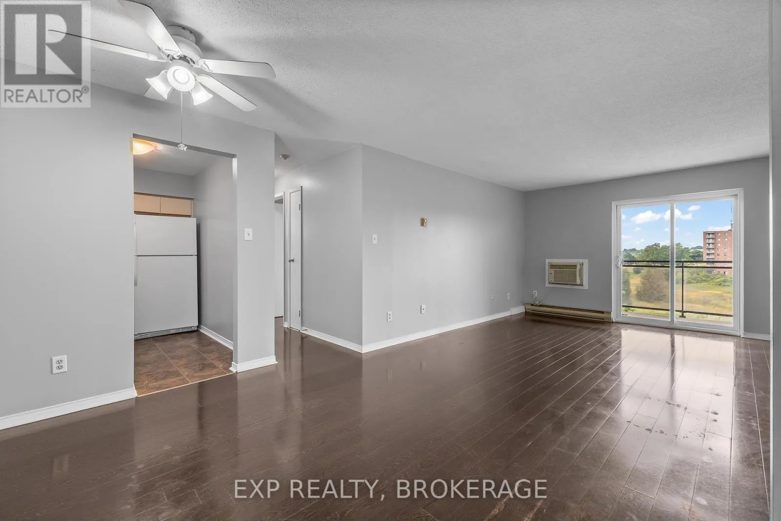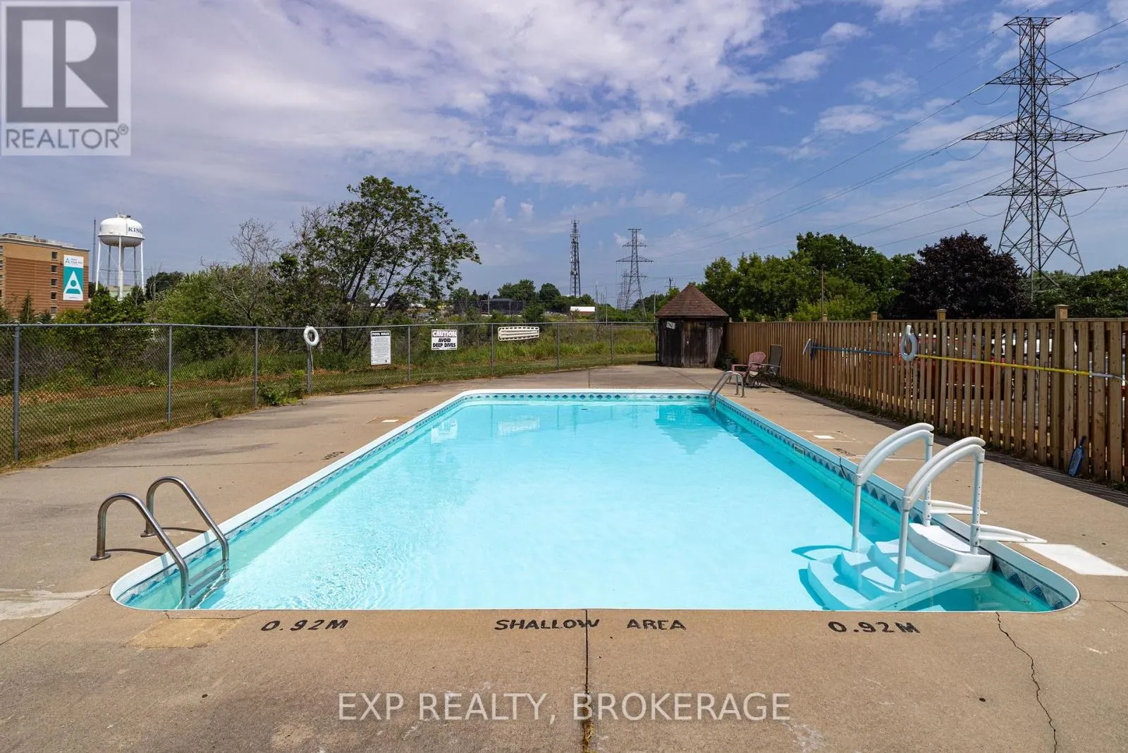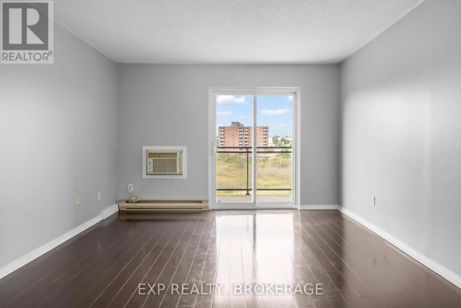 Cross Streets: Centennial Dr. ** Directions: Princess St to Centennial Dr to Davis Dr. Spacious and move-in ready, this 2-bedroom, 1-bath condo is located in a secure, well-maintained building in the heart of Kingston's west end. The carpet-free layout features durable laminate flooring throughout, a functional open-concept design, and generous windows that fill the space with natural light. Enjoy your morning coffee on the private balcony with views over the pool and landscaped courtyard. Both bedrooms are comfortably sized, including a large primary with double closet. The open living and dining area flows easily off the kitchen, perfect for entertaining or quiet nights in. This corner unit includes one reserved outdoor parking spot, with visitor parking available for guests. Residents enjoy access to a seasonal outdoor pool, party room, elevators, and a clean, main-level laundry room. The building is professionally managed with secure entry and a friendly community feel. Walkable to all major west-end amenities including shopping, groceries, restaurants, and services at Cataraqui Centre. Multiple Kingston Transit stops are nearby for quick access to Queen's University, downtown Kingston, or the waterfront. Whether you're downsizing, investing, or buying your first home, 401-745 Davis Drive delivers excellent value and location in one of Kingston's most accessible neighbourhoods (id:27476)